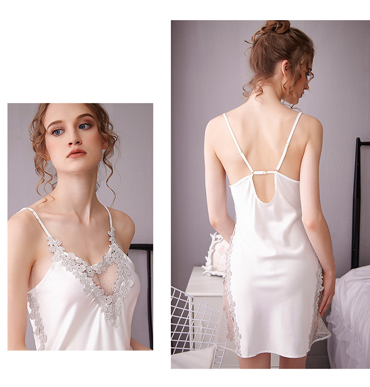 LCBN251225100263 歐美夏緞面仿真絲蕾絲家居服性感吊帶情趣性感睡衣