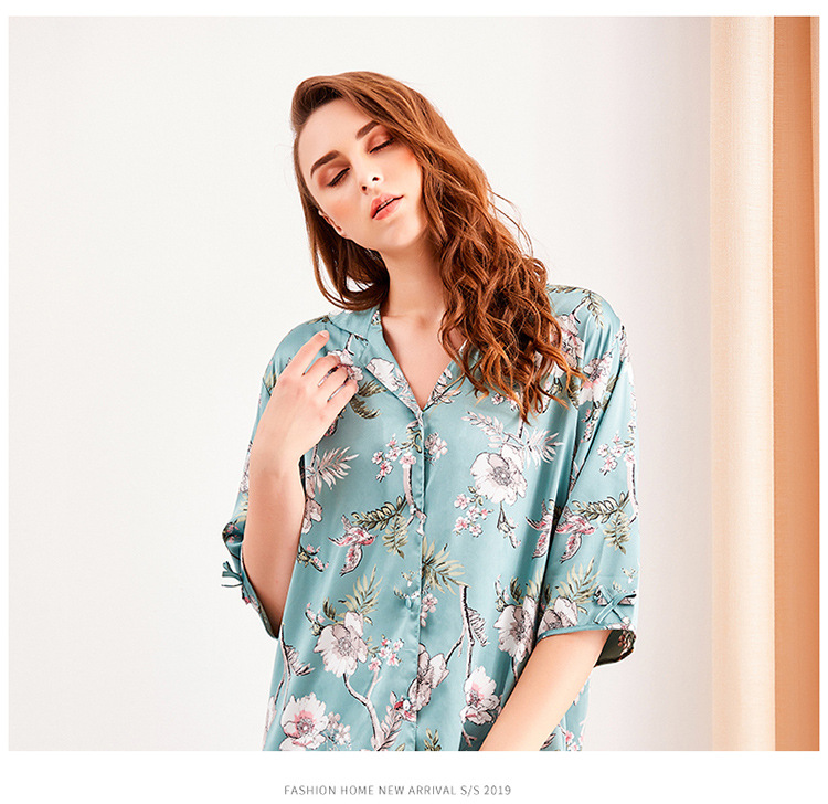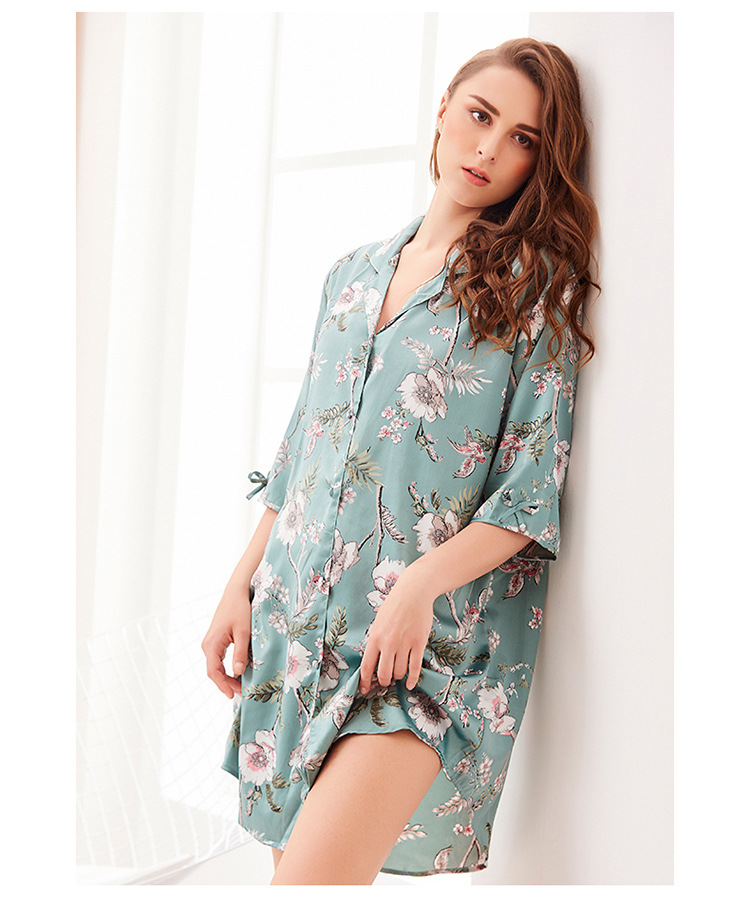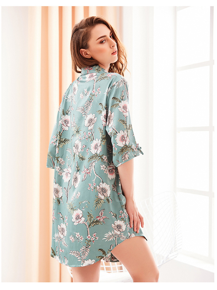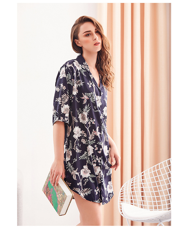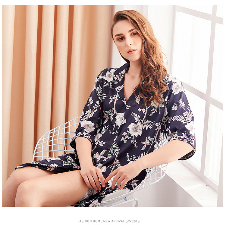 LCBN251225100265 新款開衫中長款睡衣女冰絲寬松性感睡袍可外穿家居服睡裙