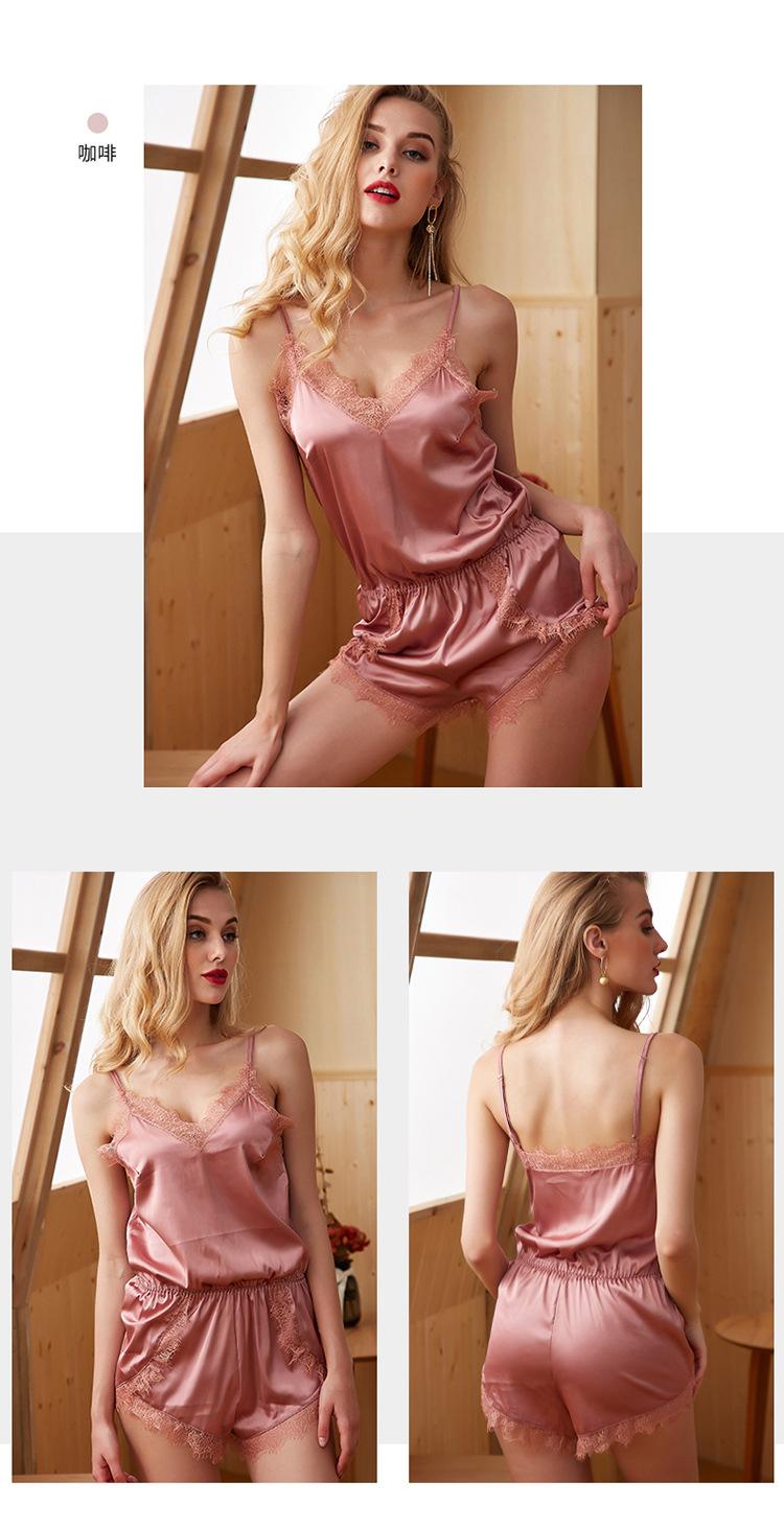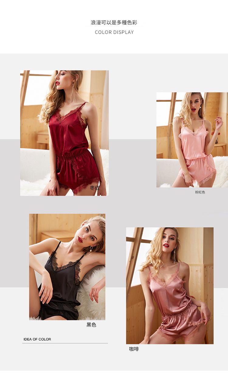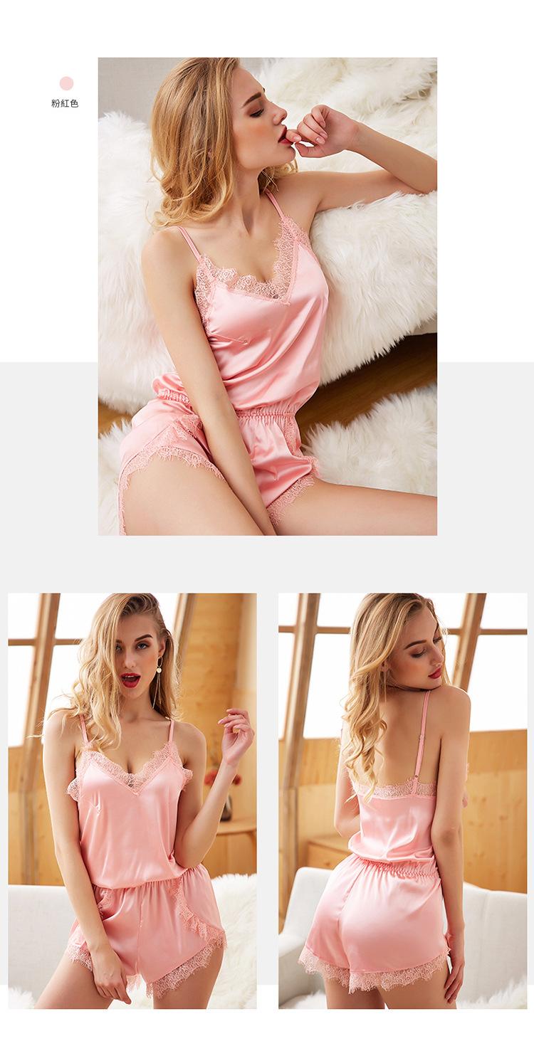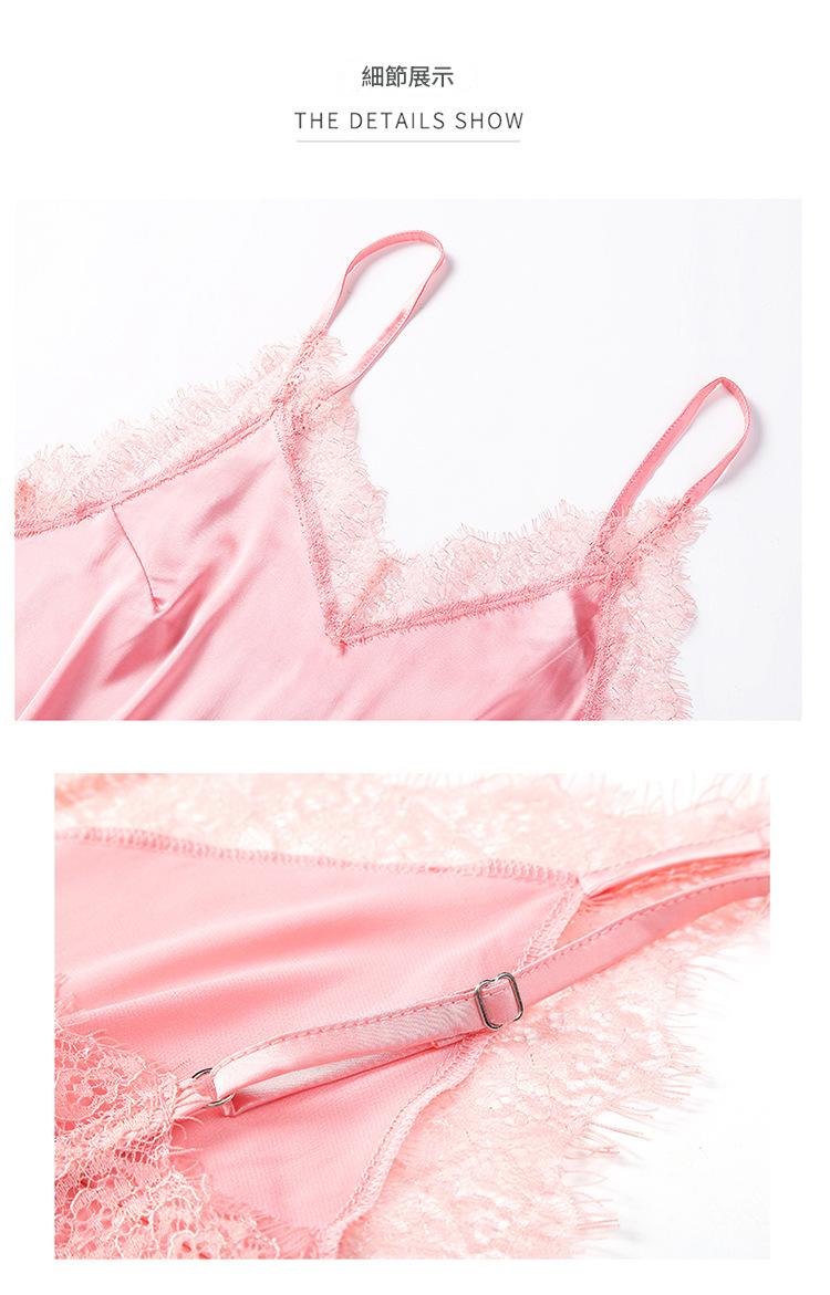 LCBN251225100268 睡衣冰絲連身褲睡衣蕾絲仿真絲性感女士家居服春夏