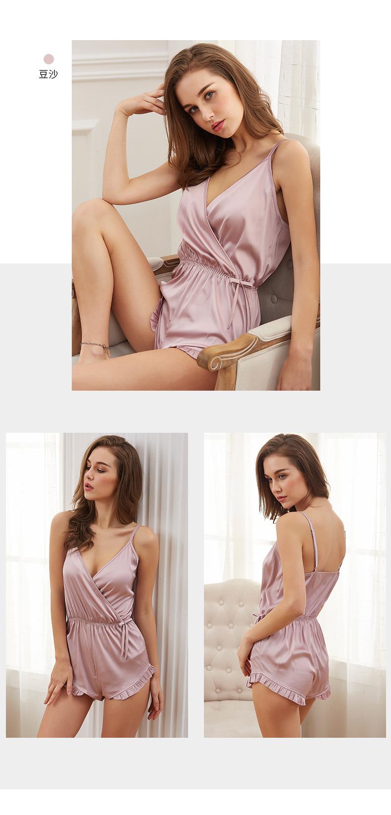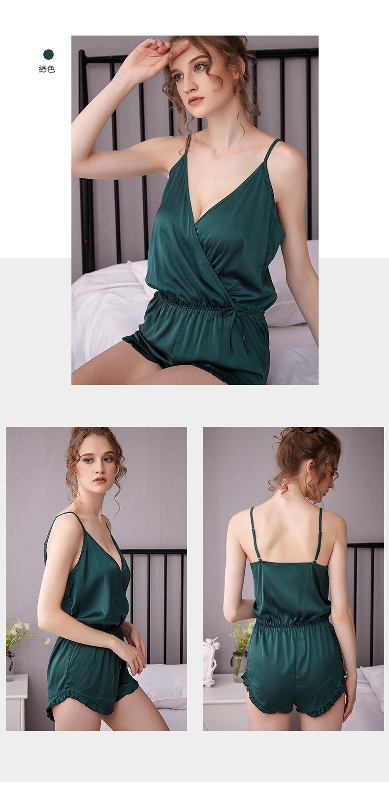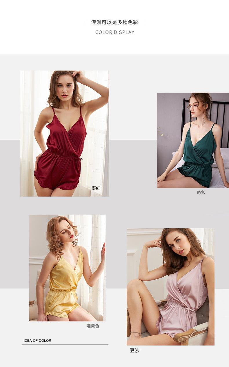 LCBN251225100269 吊帶睡裙大碼女睡裙歐美春夏仿真絲女士家居服連身褲