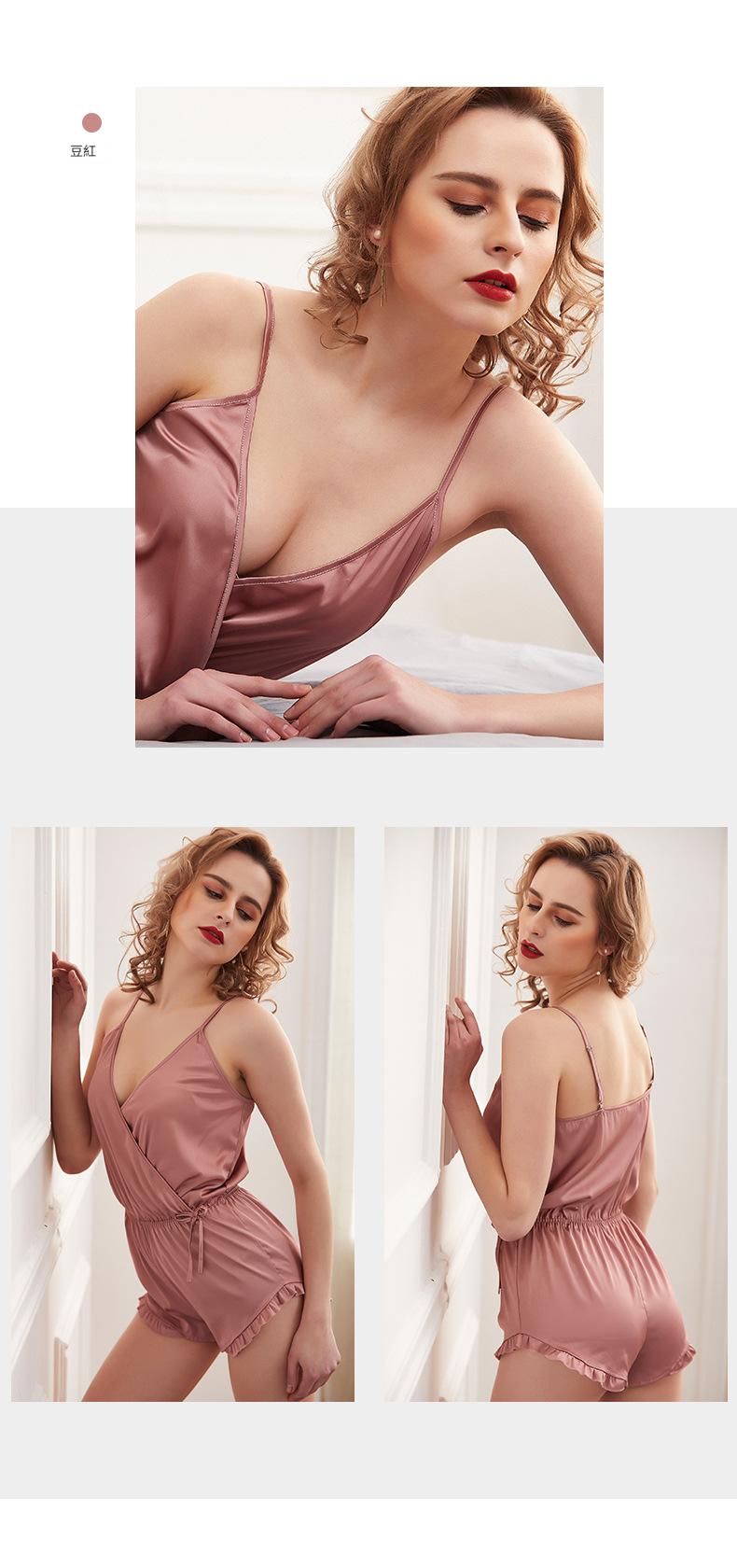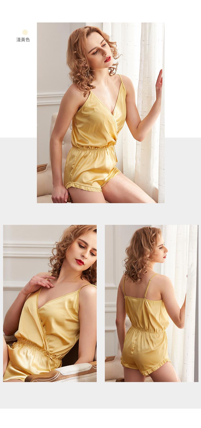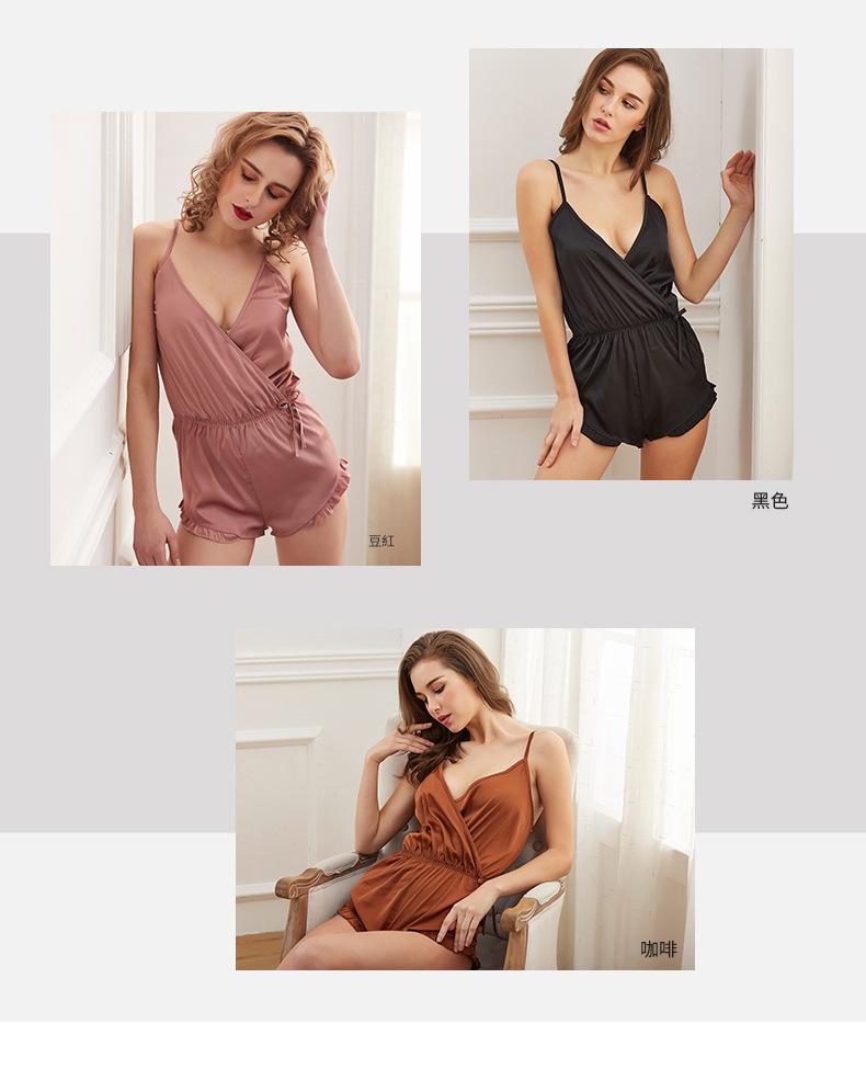LCBN251225100269 吊帶睡裙大碼女睡裙歐美春夏仿真絲女士家居服連身褲