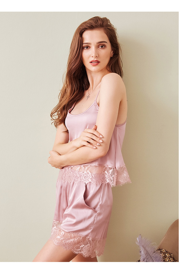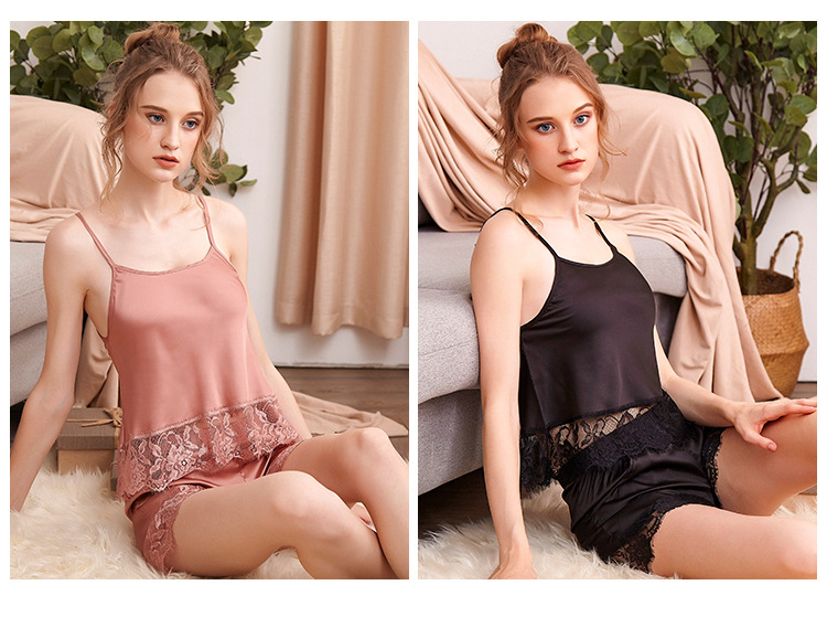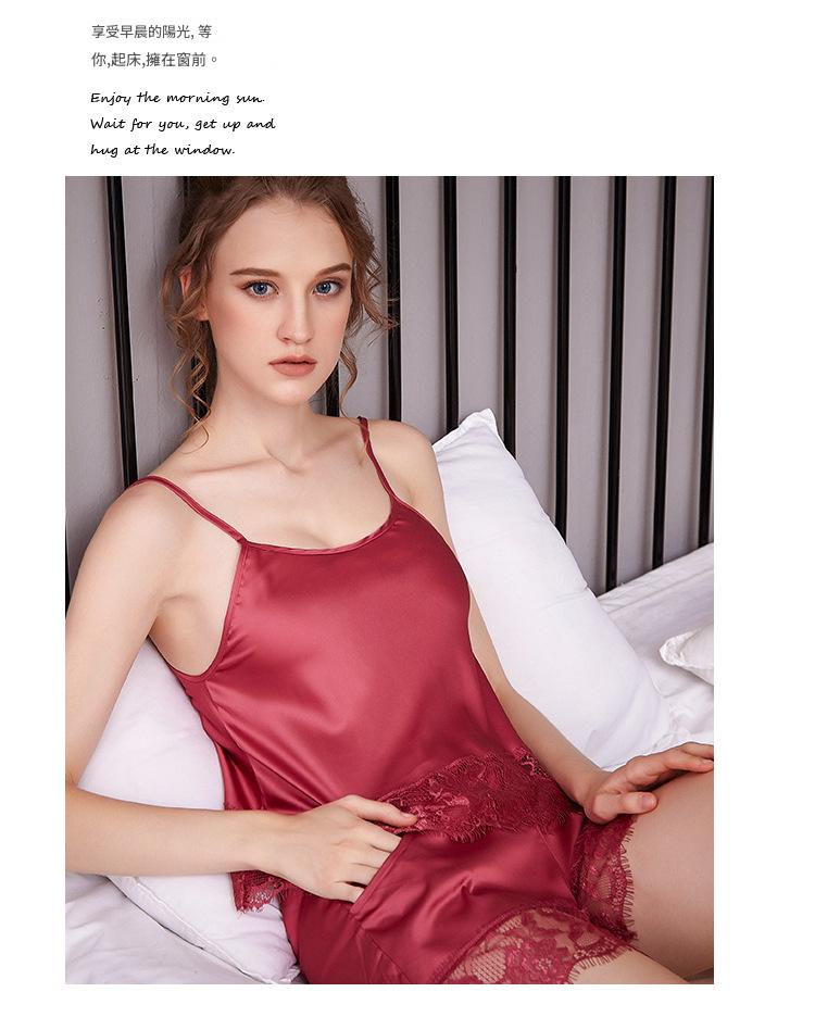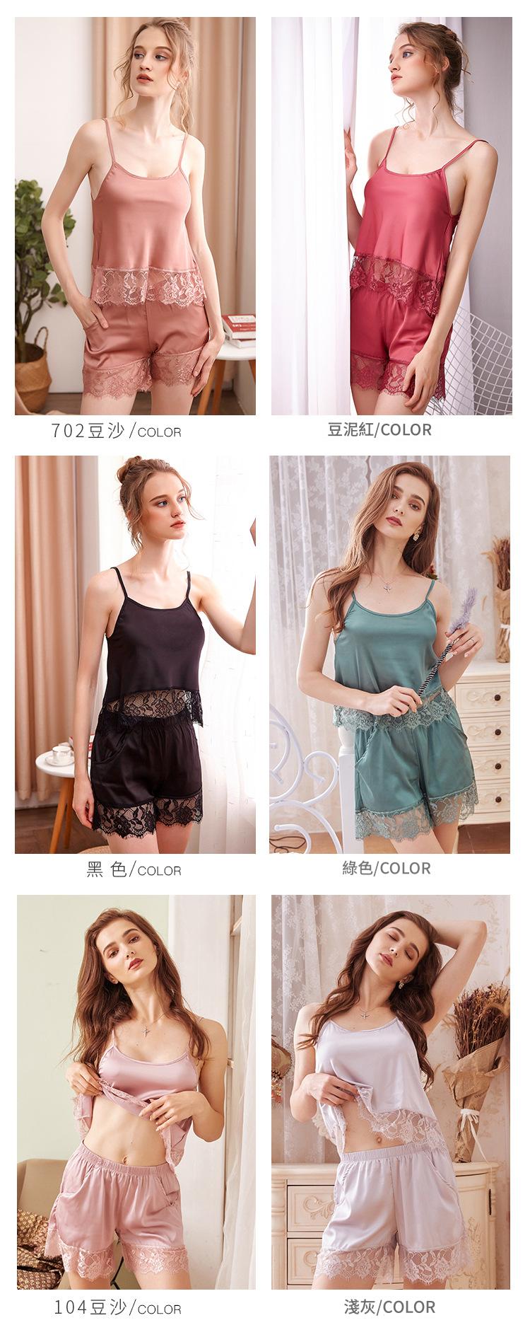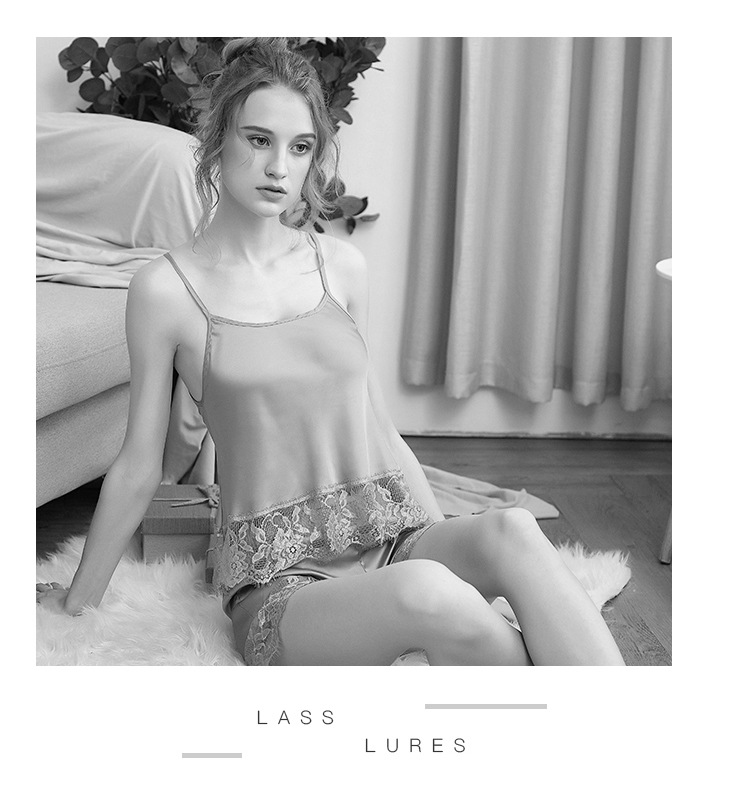 LCBN251225100275 夏短裝蕾絲冰絲睡衣露臍吊帶睡裙女裝性感兩件套裝女士家居服內衣