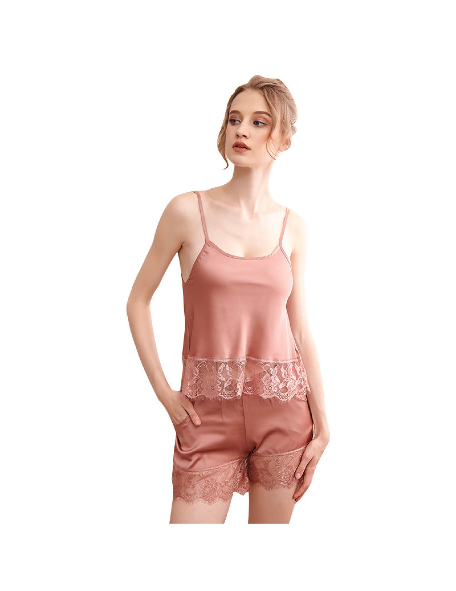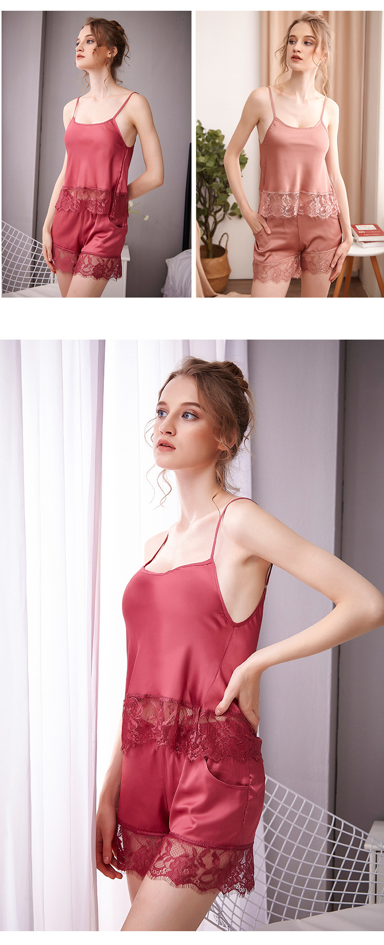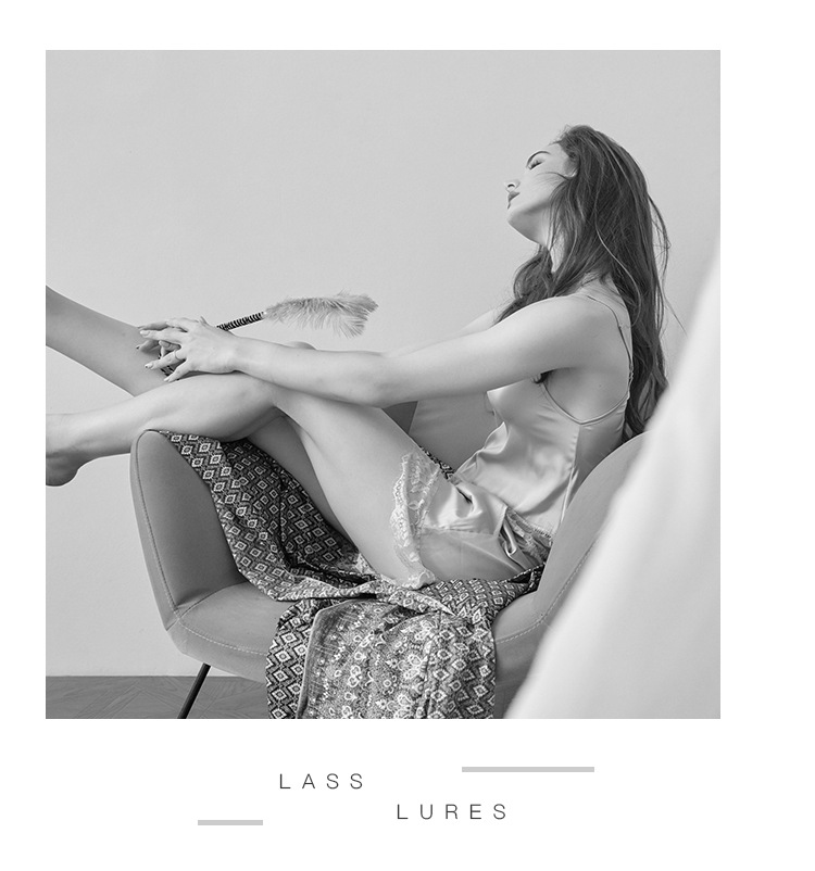 LCBN251225100275 夏短裝蕾絲冰絲睡衣露臍吊帶睡裙女裝性感兩件套裝女士家居服內衣
