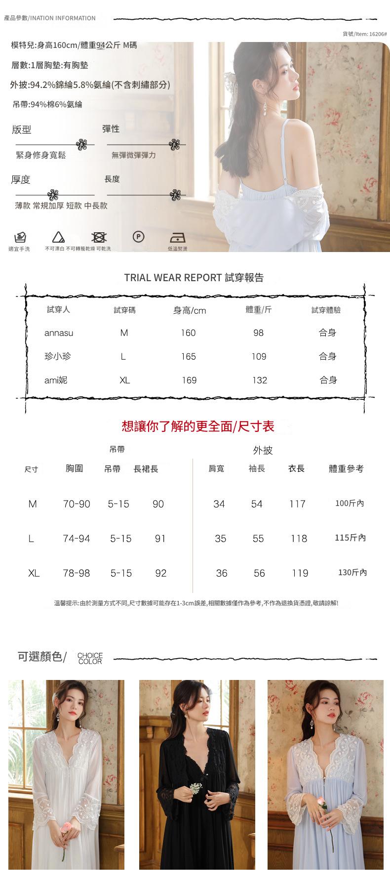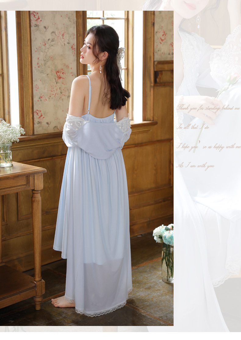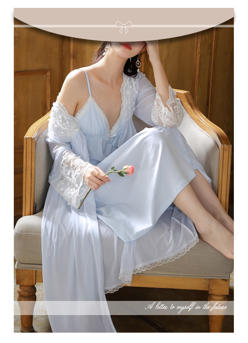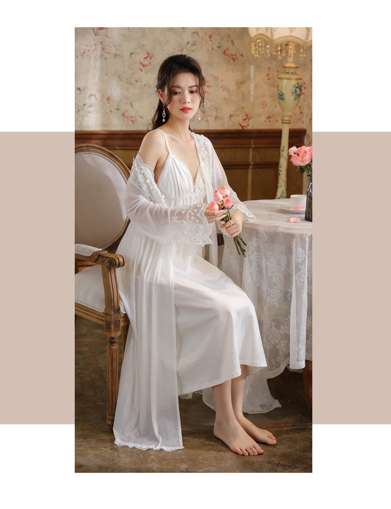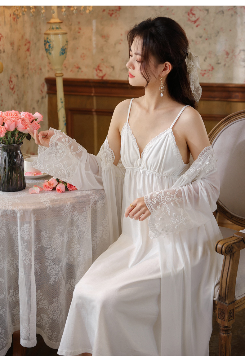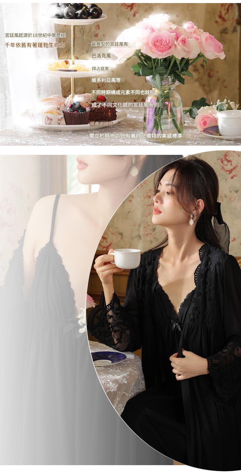 PRDN121100018 長袖睡袍女春胸墊吊帶裙棉宮廷風睡衣網紗晨袍性感外穿家居服套裝
