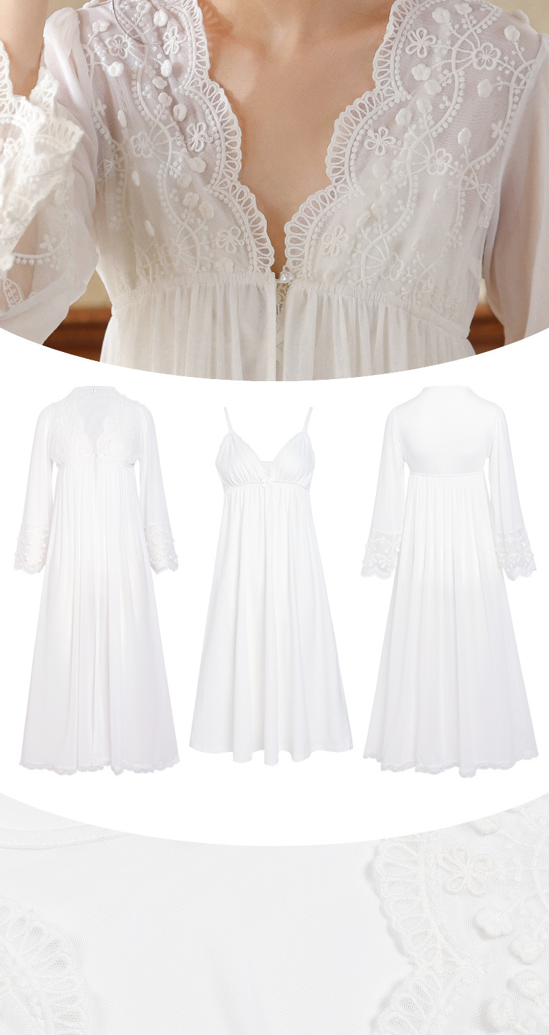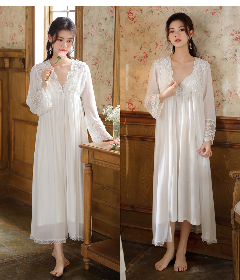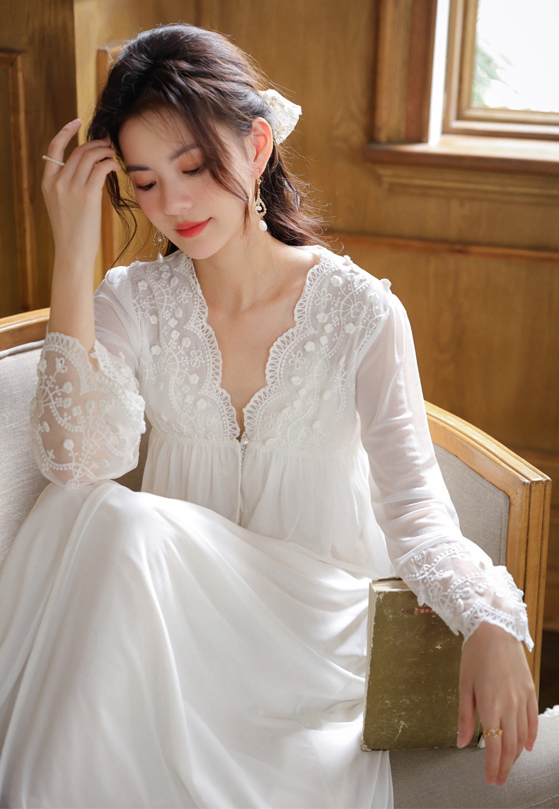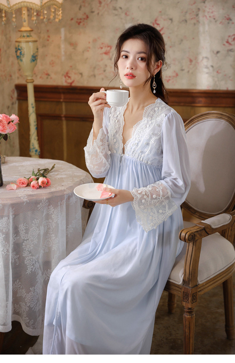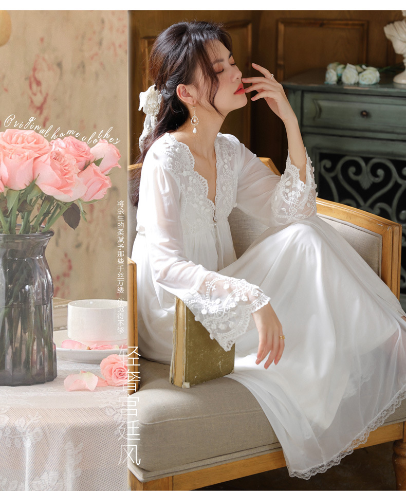 PRDN121100018 長袖睡袍女春胸墊吊帶裙棉宮廷風睡衣網紗晨袍性感外穿家居服套裝