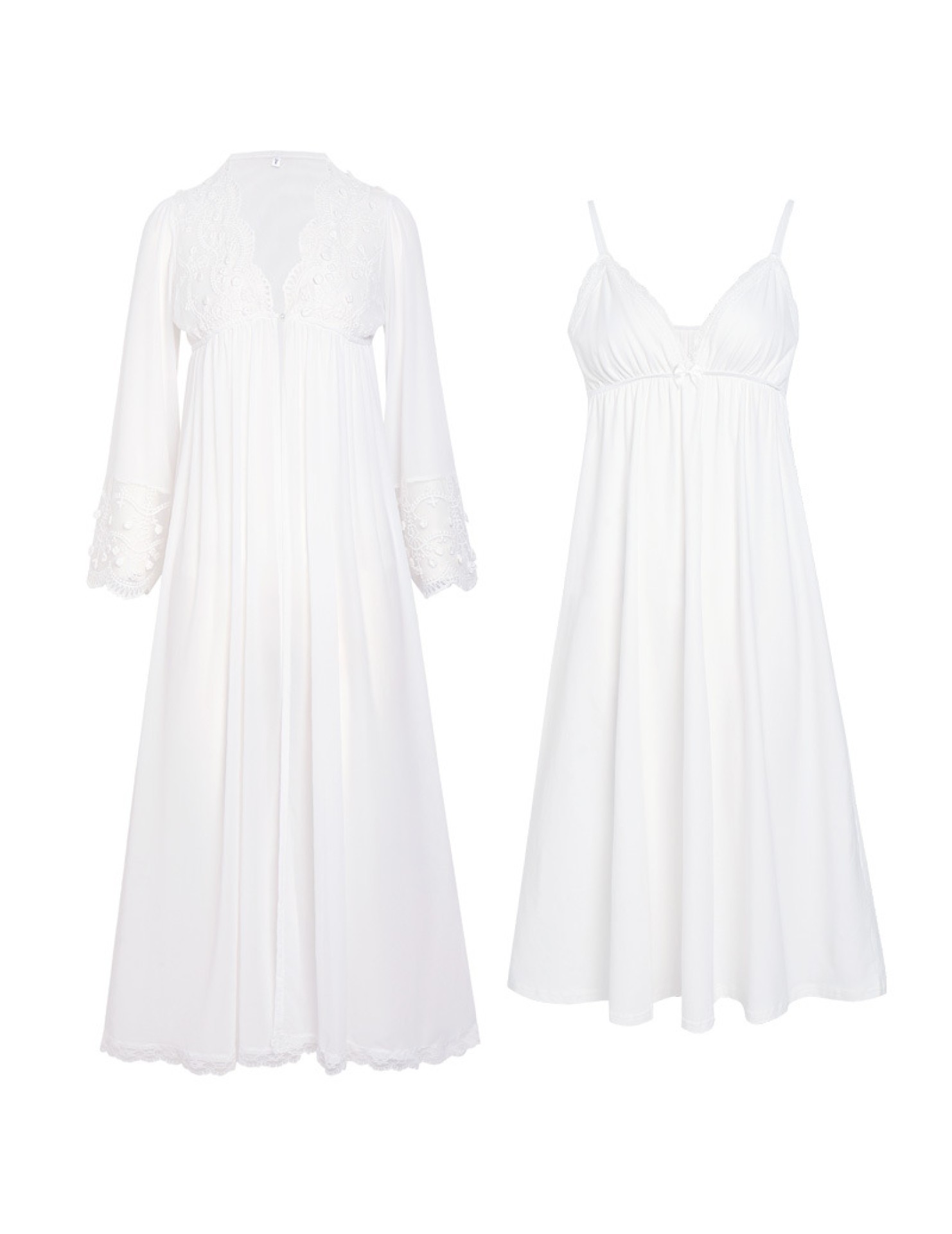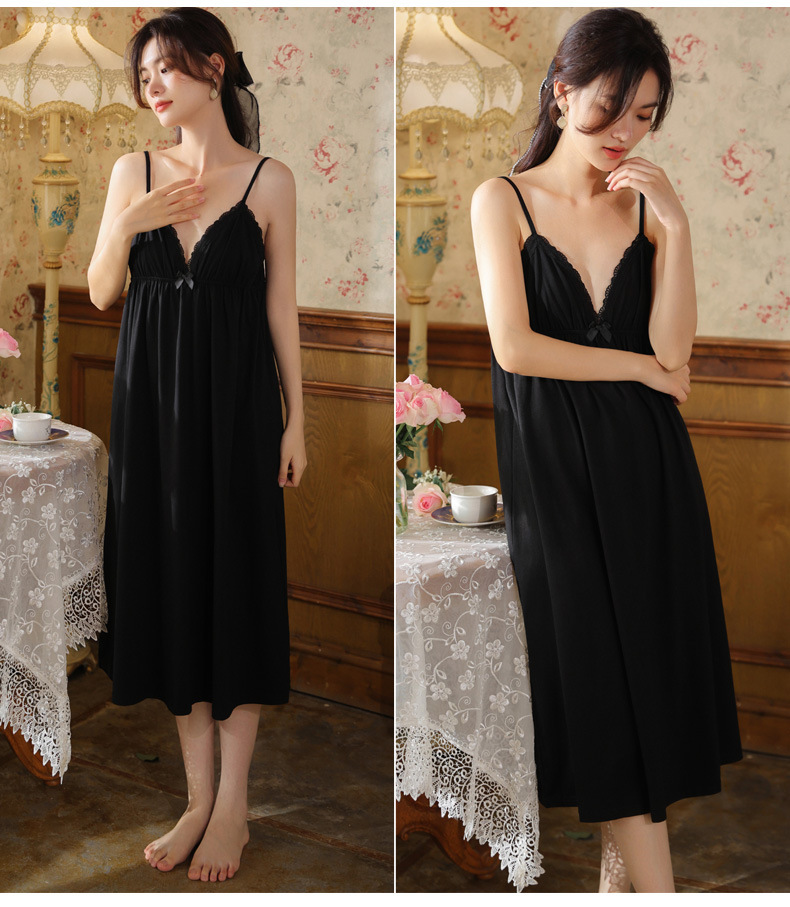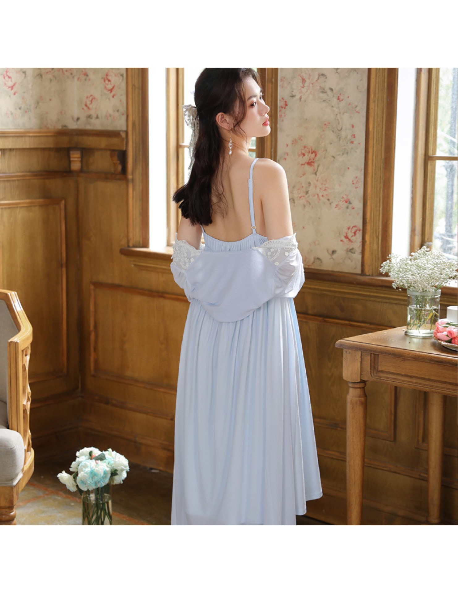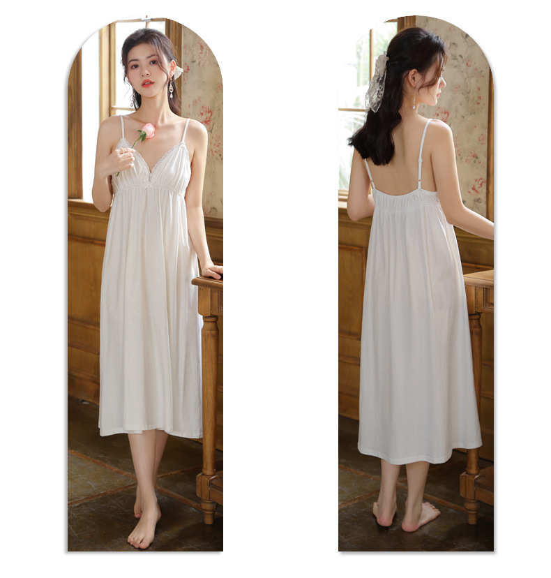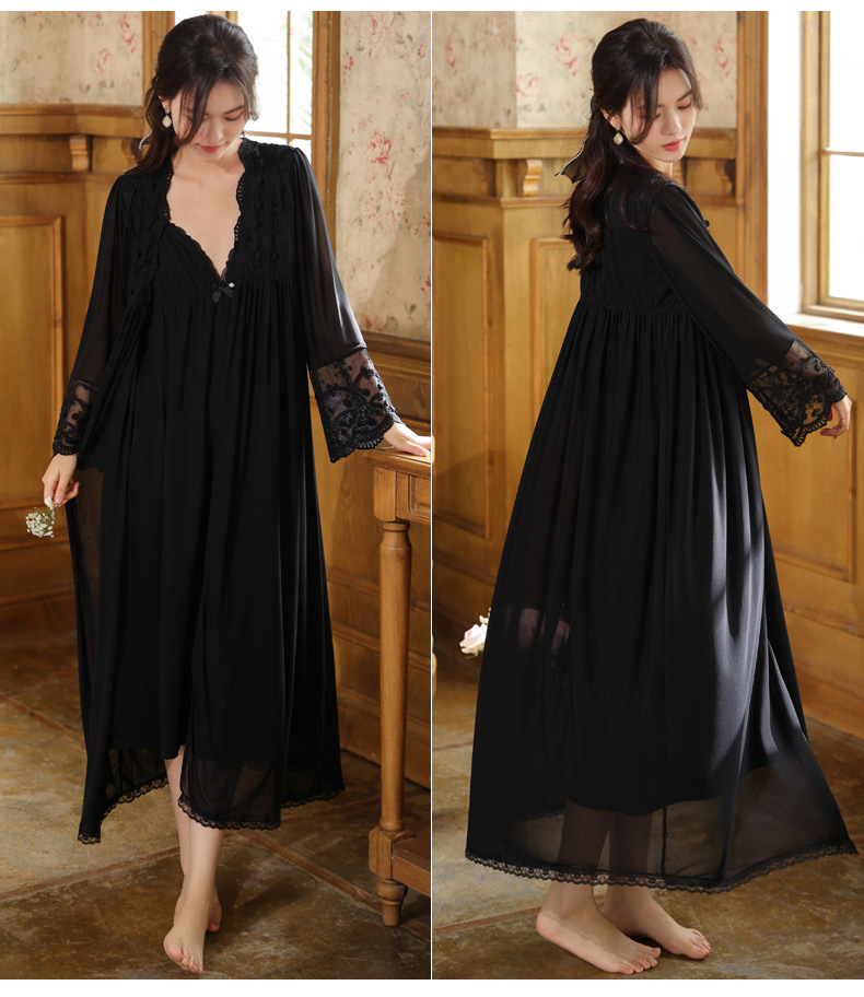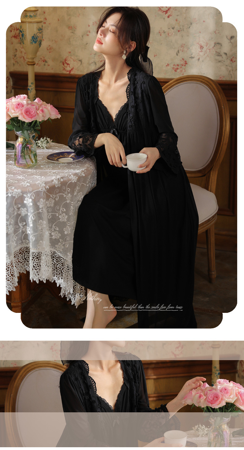PRDN121100018 長袖睡袍女春胸墊吊帶裙棉宮廷風睡衣網紗晨袍性感外穿家居服套裝