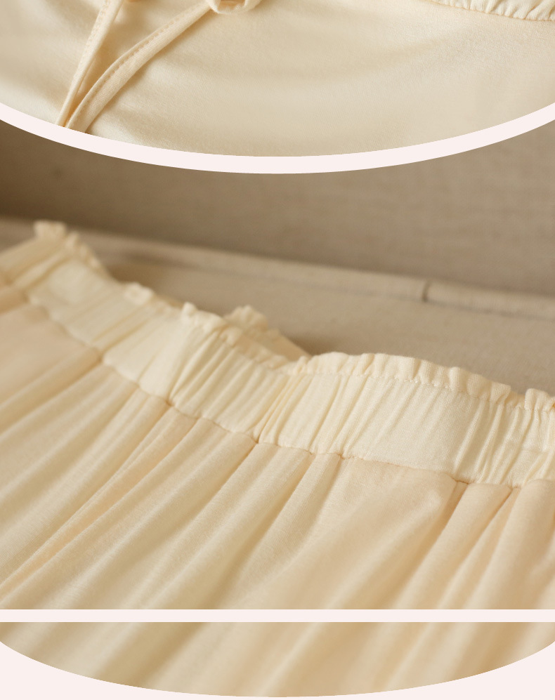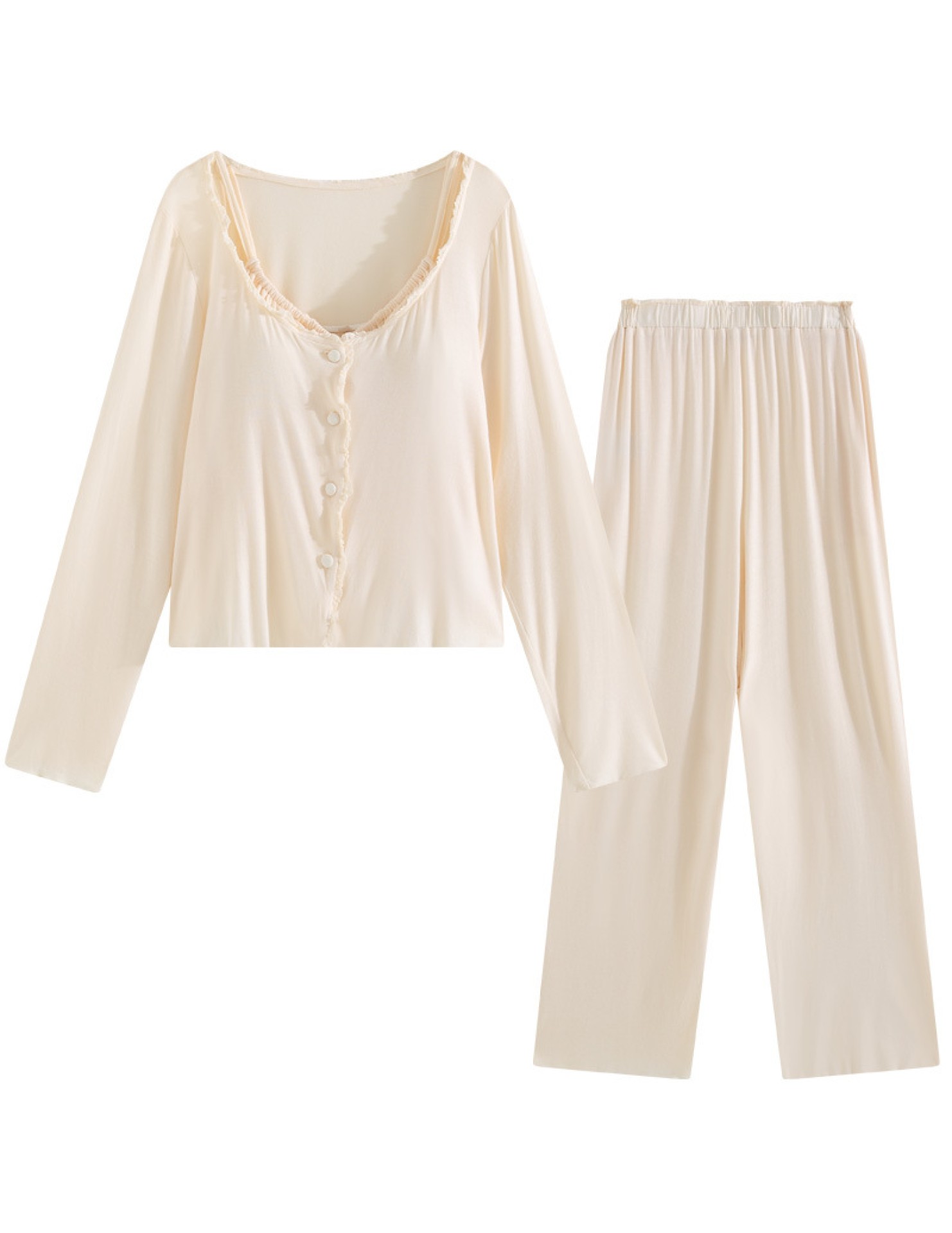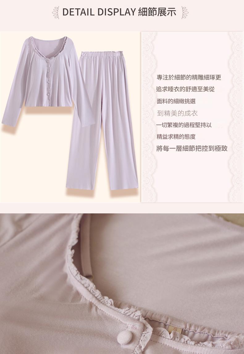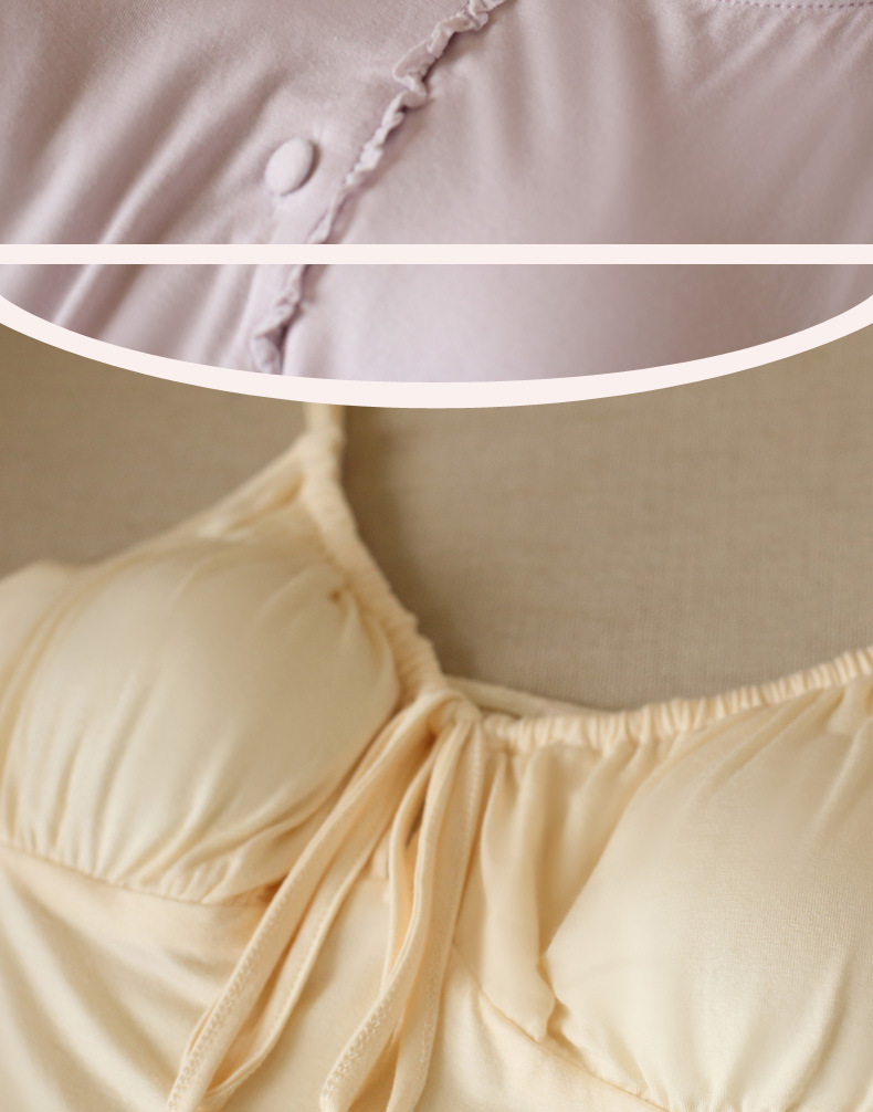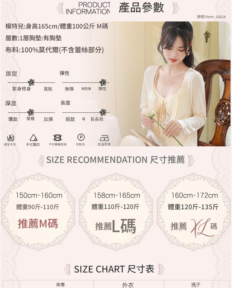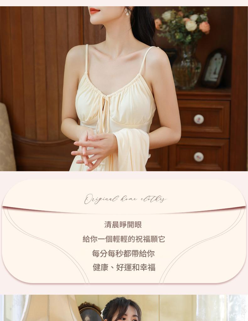 PRDN121100033 長袖睡衣套裝莫代爾宮廷風彈力睡褲帶胸墊吊帶外穿家居服三件套秋
