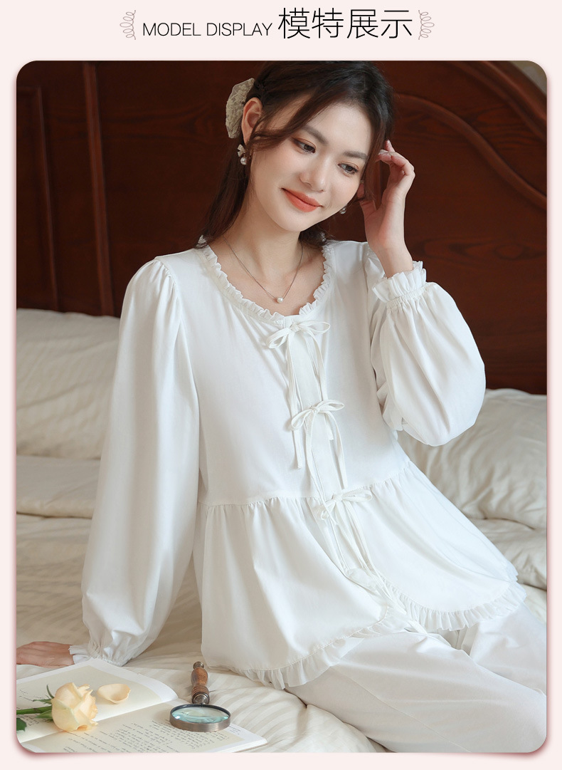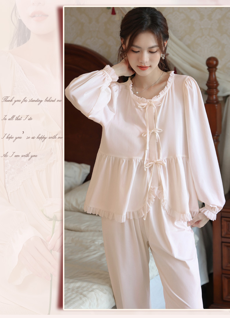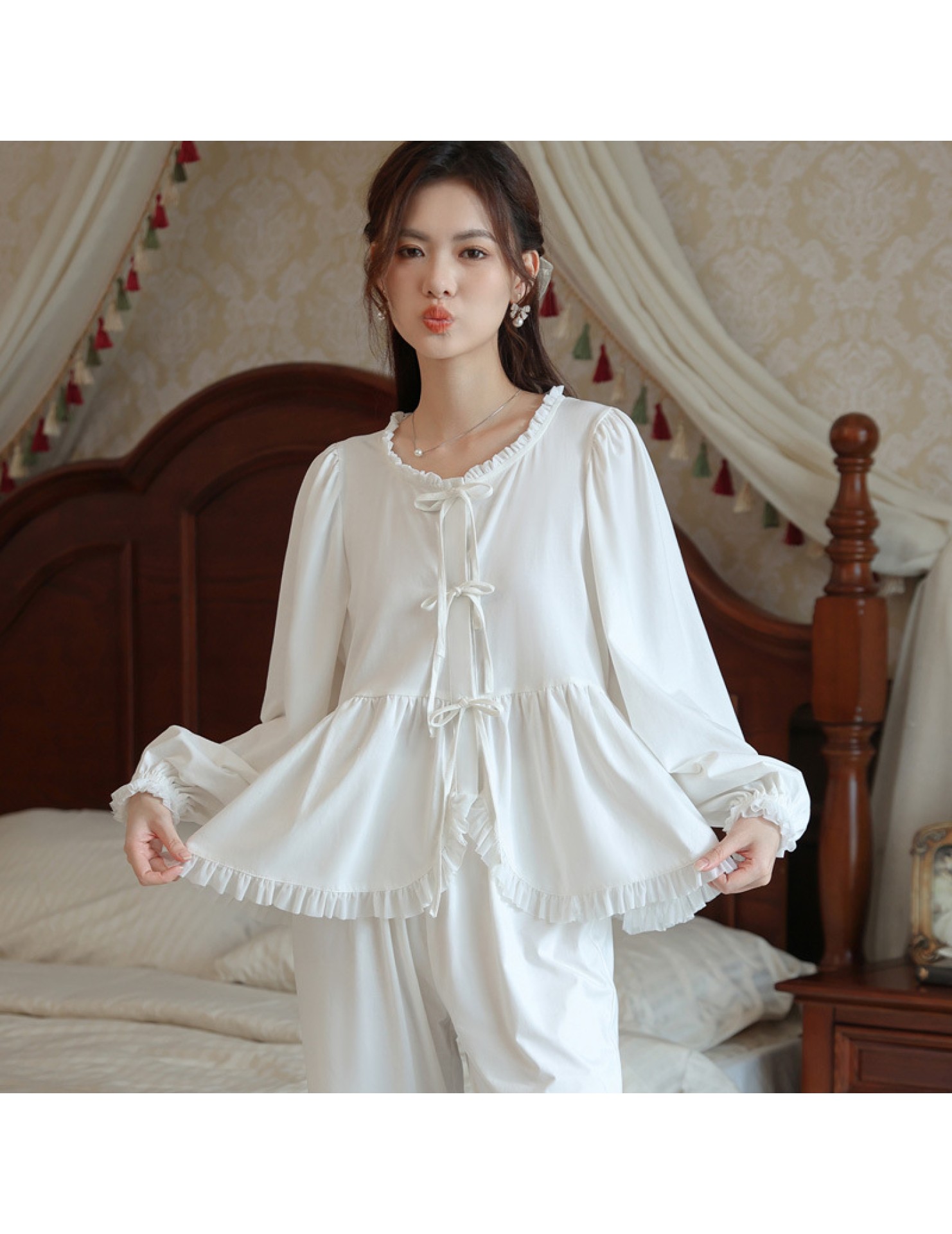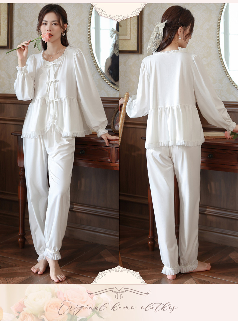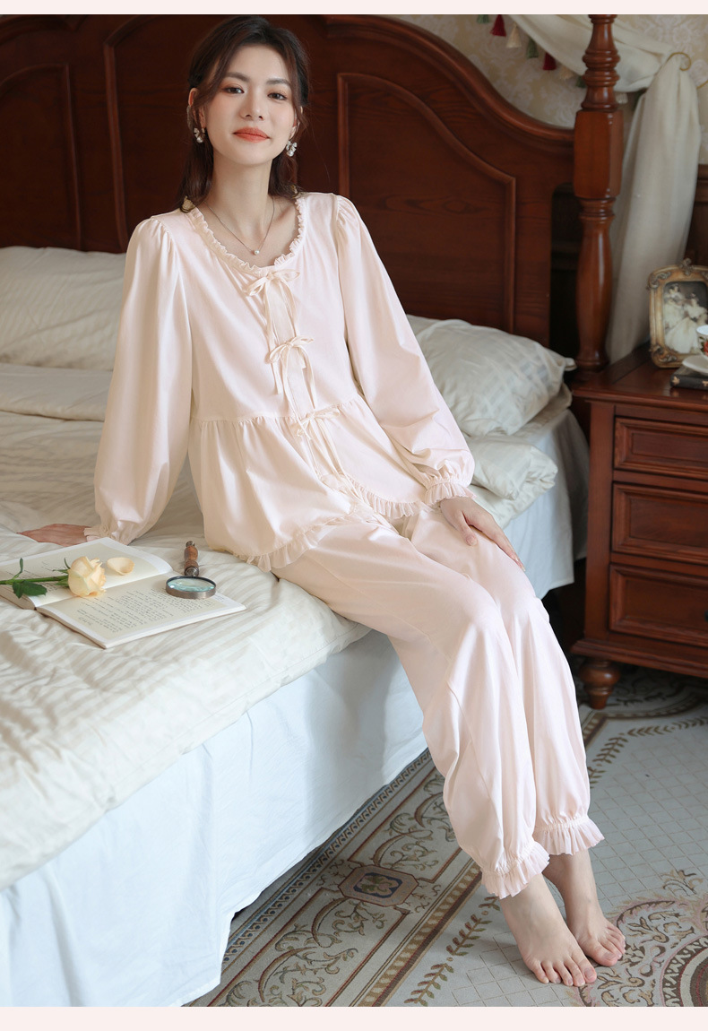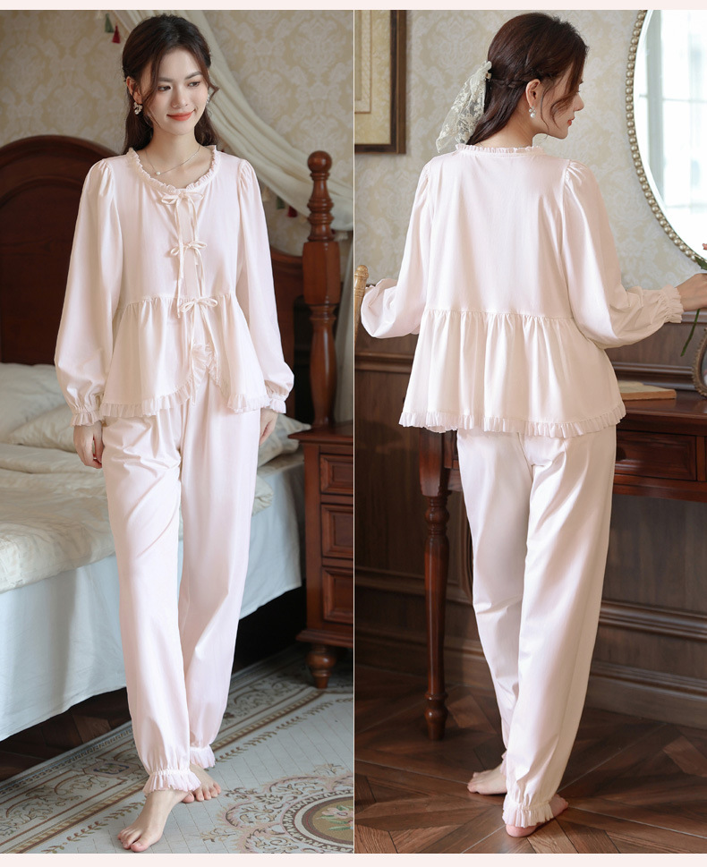 PRDN121100063 長袖睡衣睡褲兩件套棉宮廷風法式寬松開衫可外穿家居服套裝春秋季