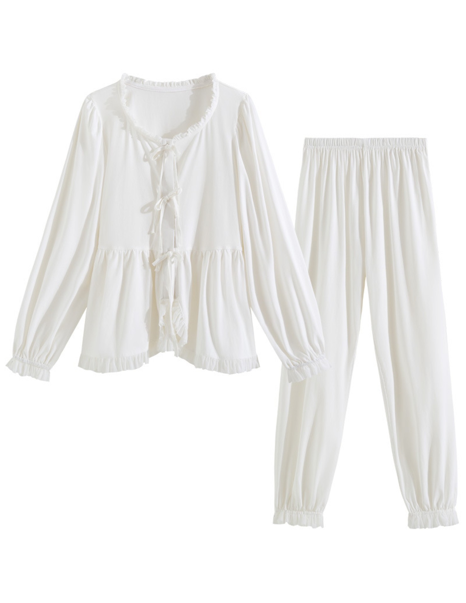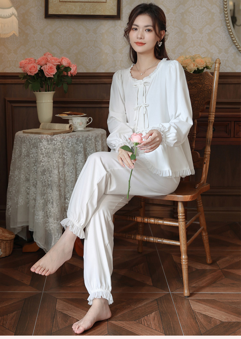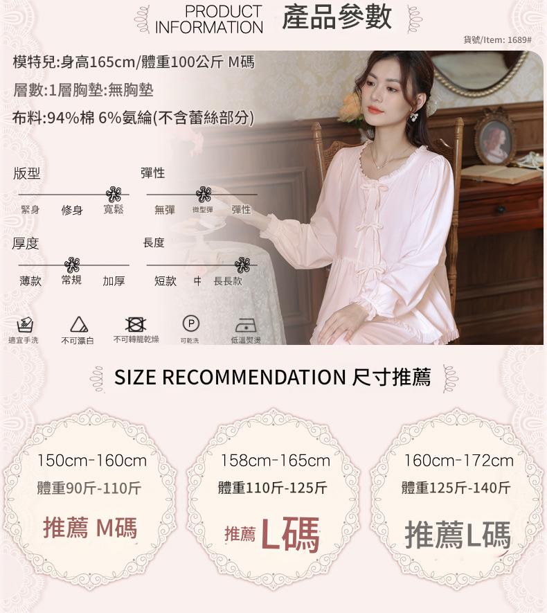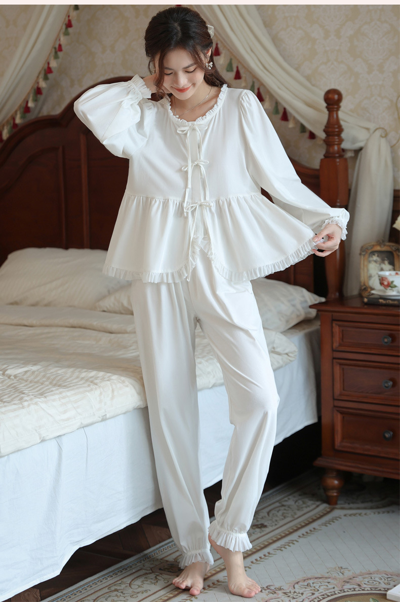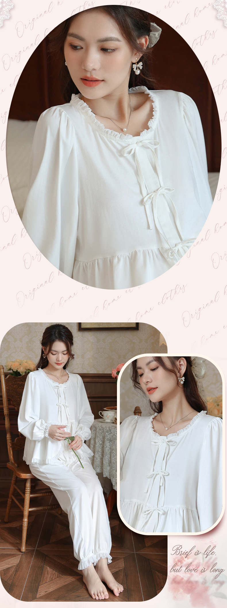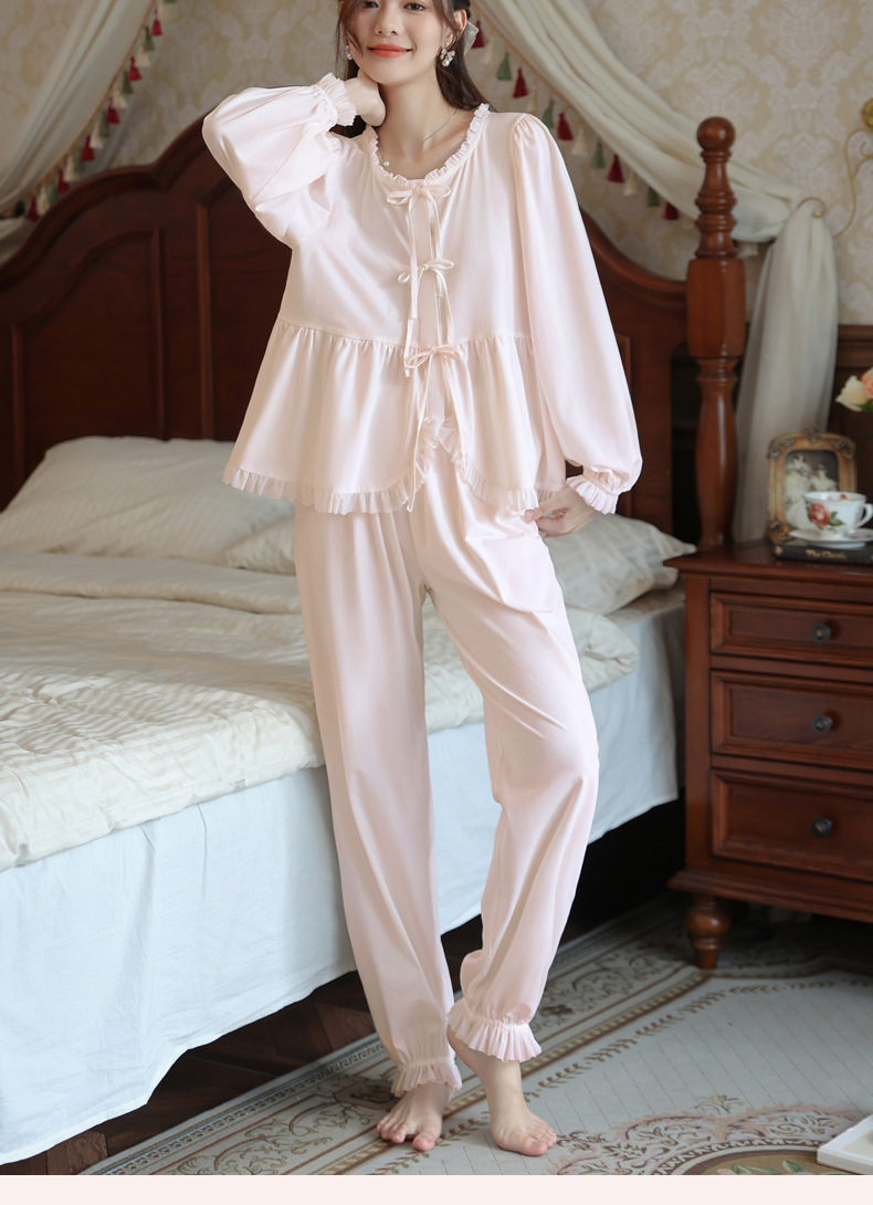 PRDN121100063 長袖睡衣睡褲兩件套棉宮廷風法式寬松開衫可外穿家居服套裝春秋季
