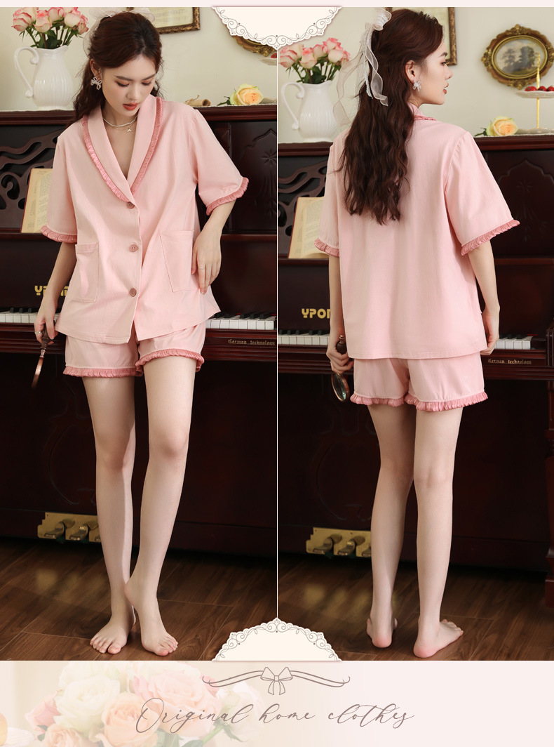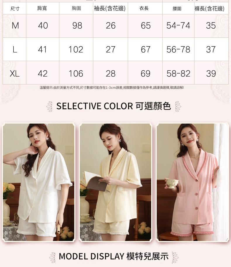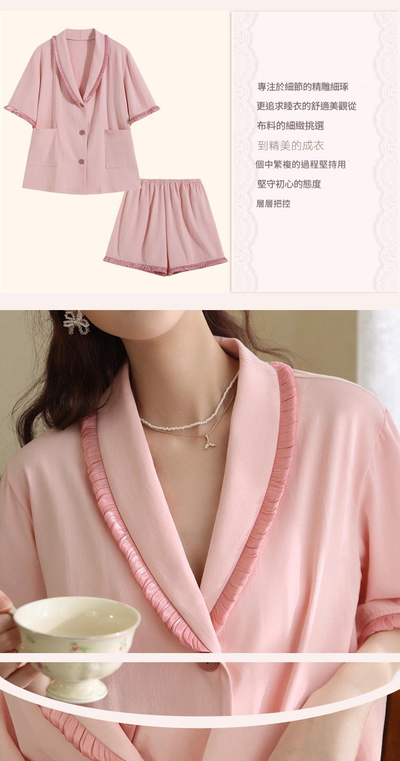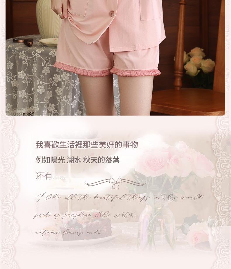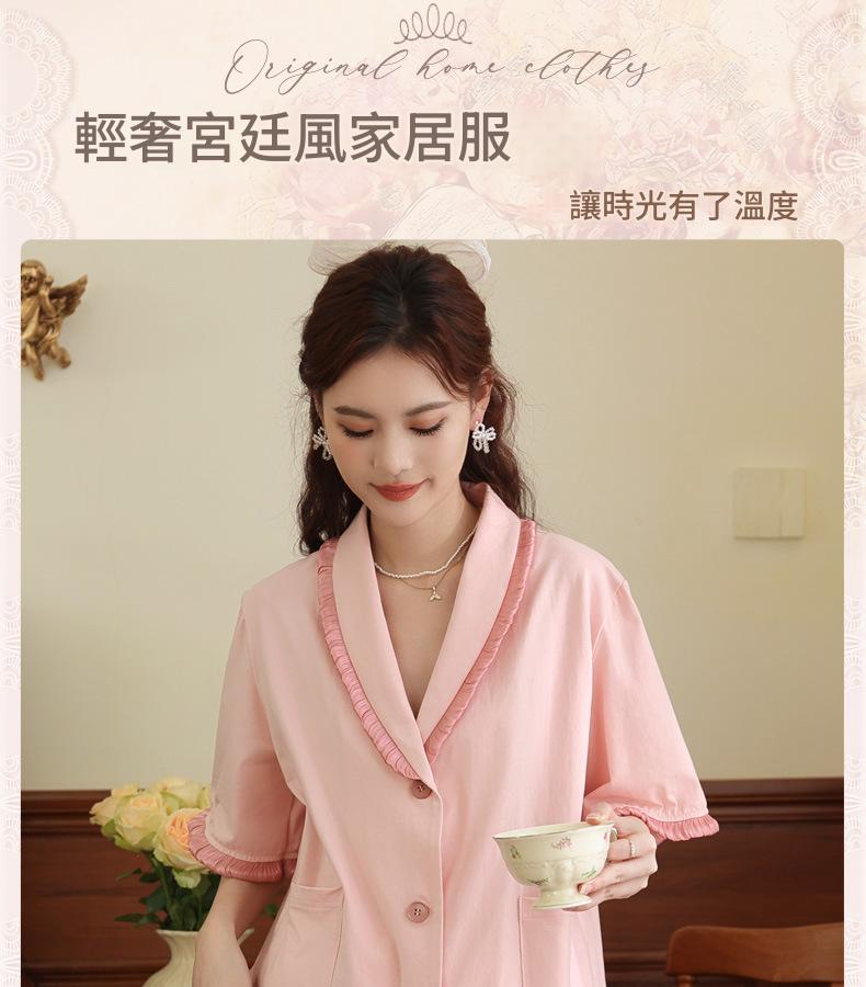 PRDN121100097 短袖睡衣女夏棉睡褲兩件套寬松大碼開衫半袖法式可外穿家居服套裝