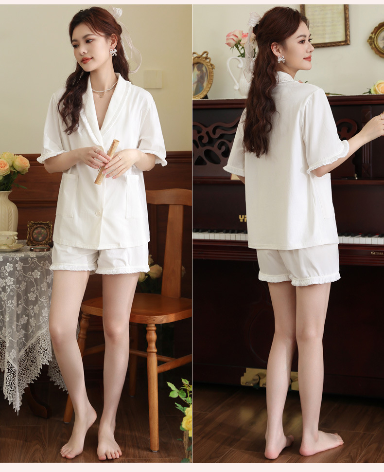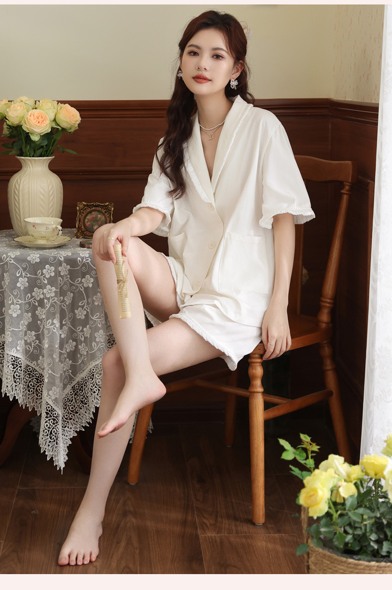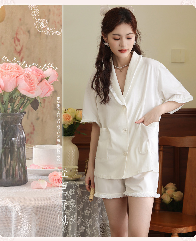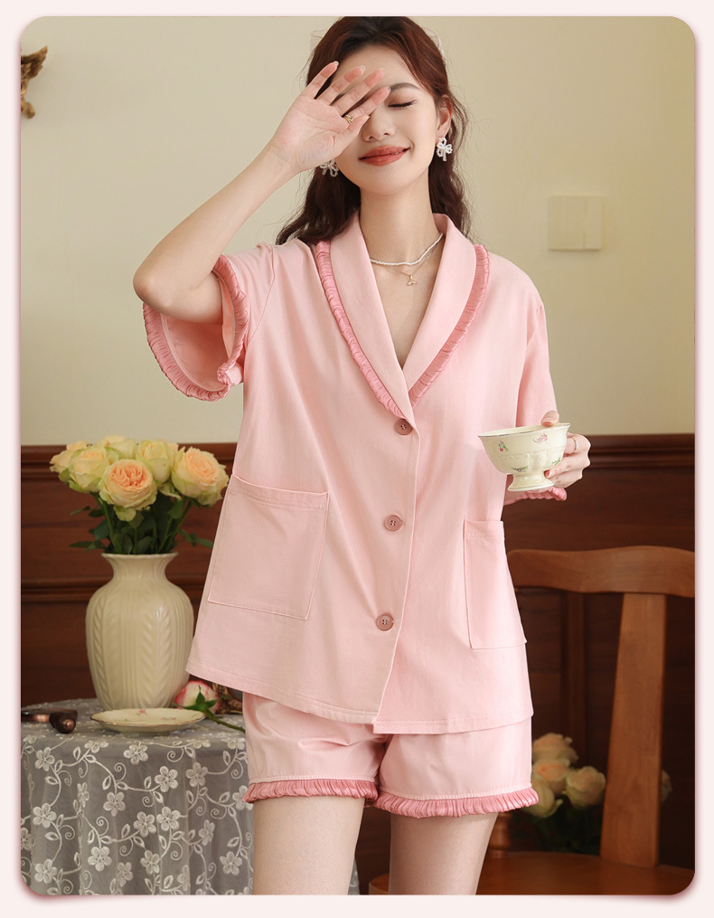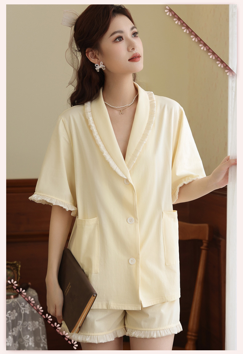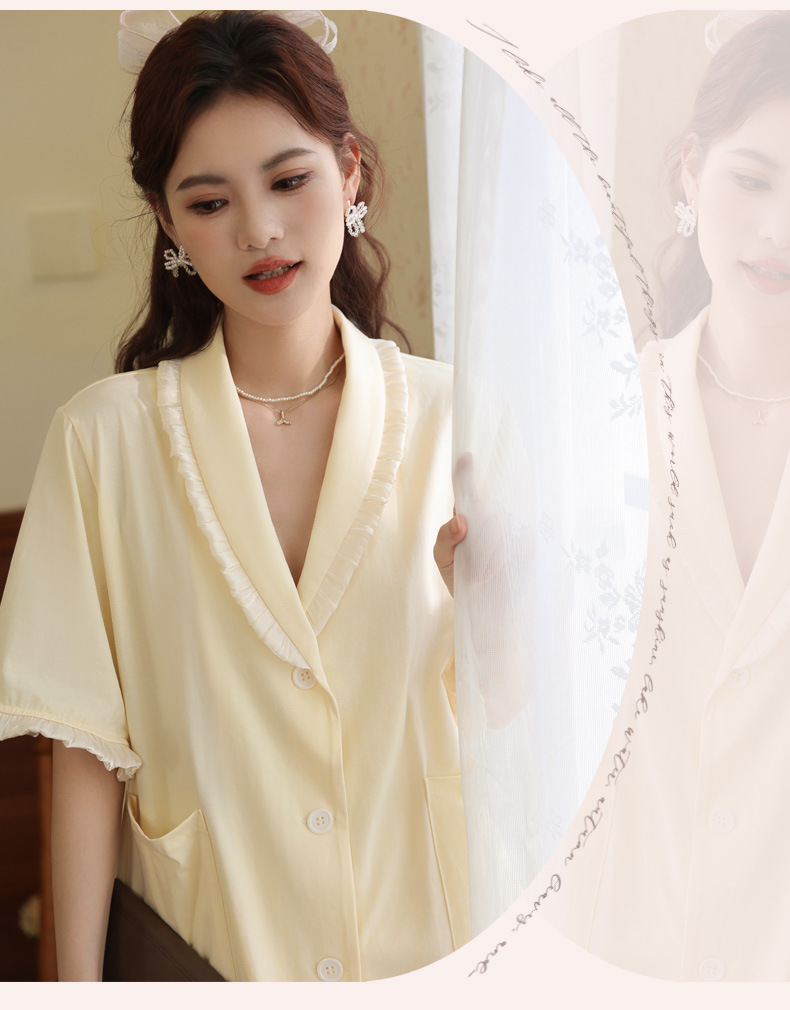 PRDN121100097 短袖睡衣女夏棉睡褲兩件套寬松大碼開衫半袖法式可外穿家居服套裝