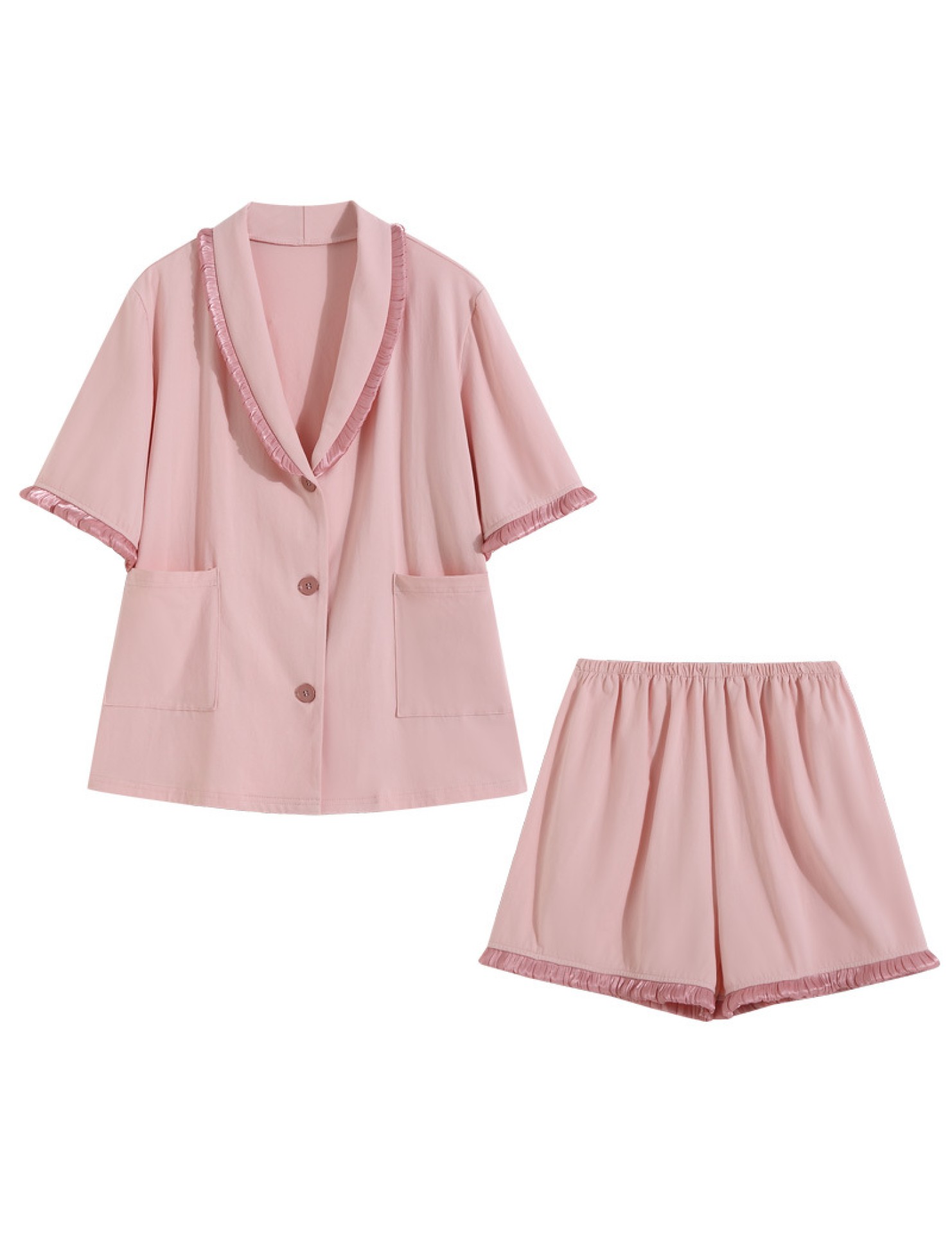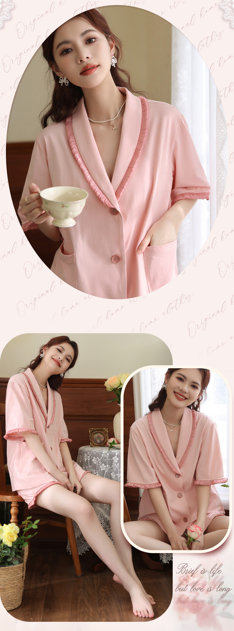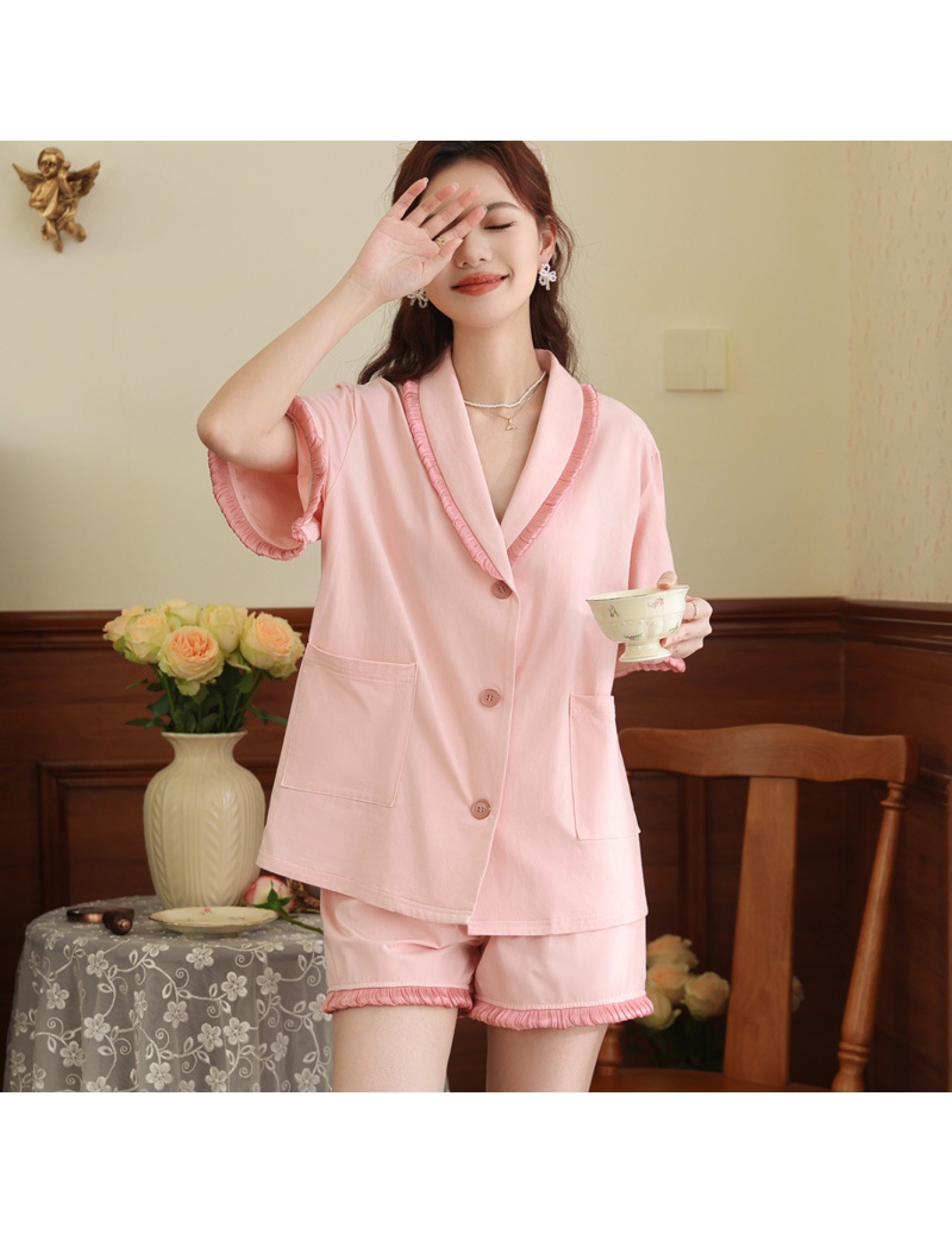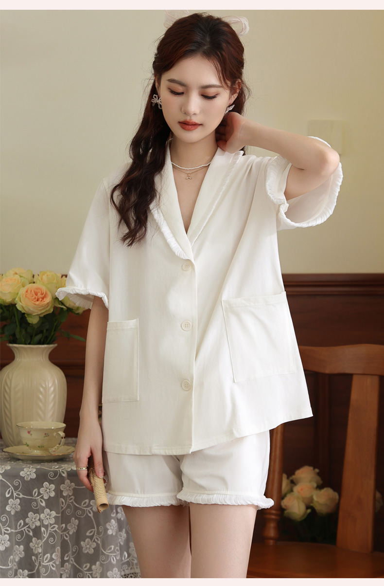 PRDN121100097 短袖睡衣女夏棉睡褲兩件套寬松大碼開衫半袖法式可外穿家居服套裝