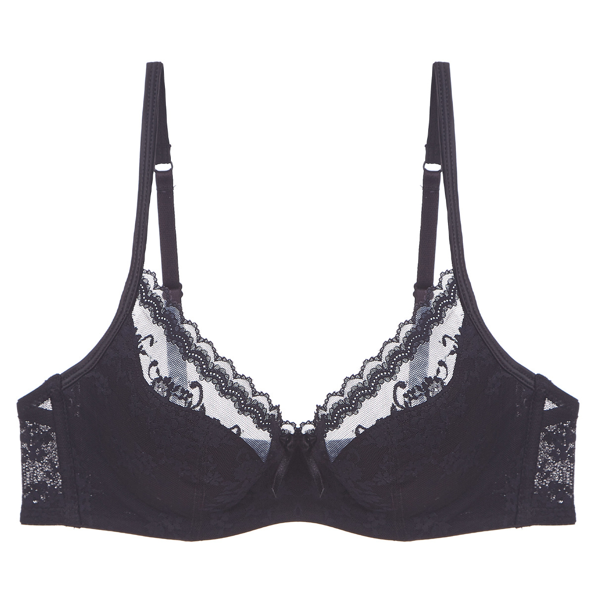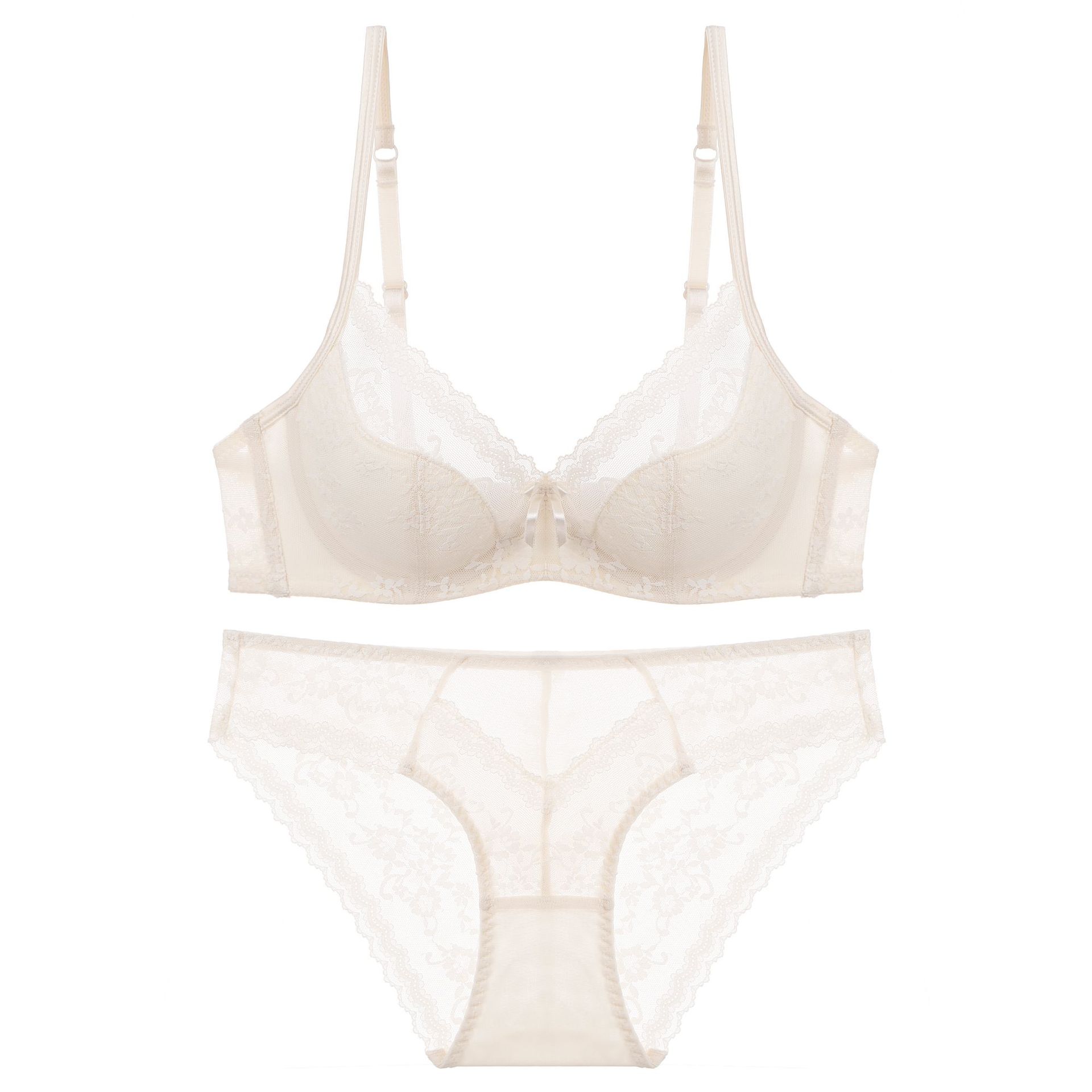 WLMZ113100341 性感蕾絲內衣夏季純欲薄杯軟鋼圈法式內衣大胸顯小大碼文胸罩