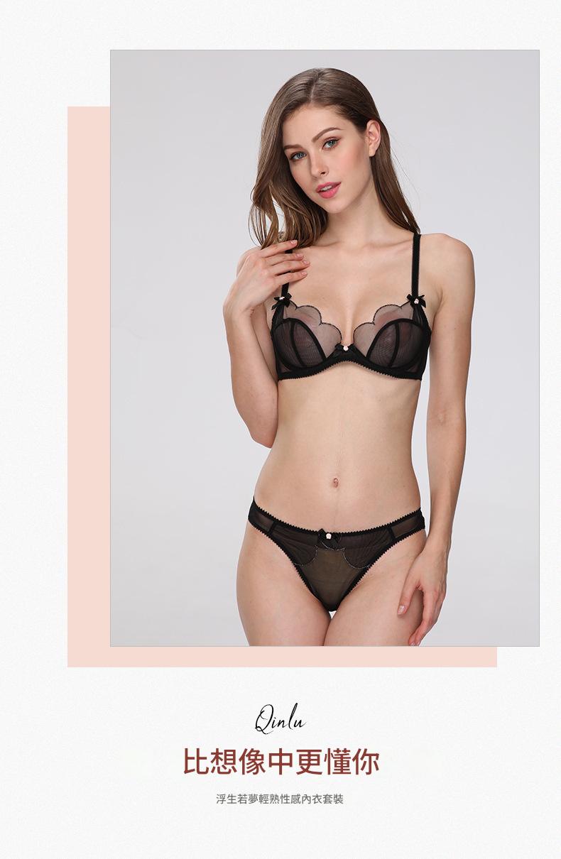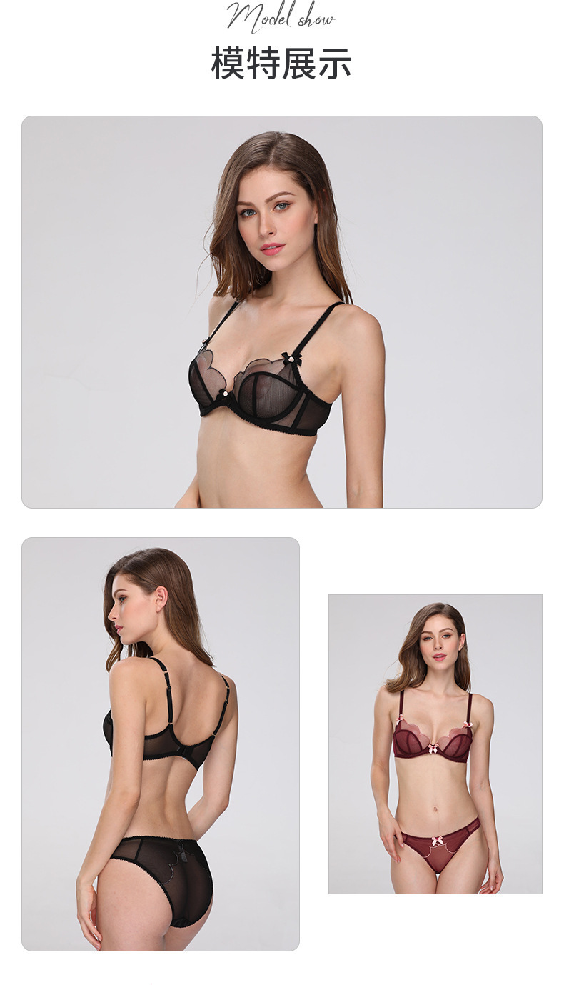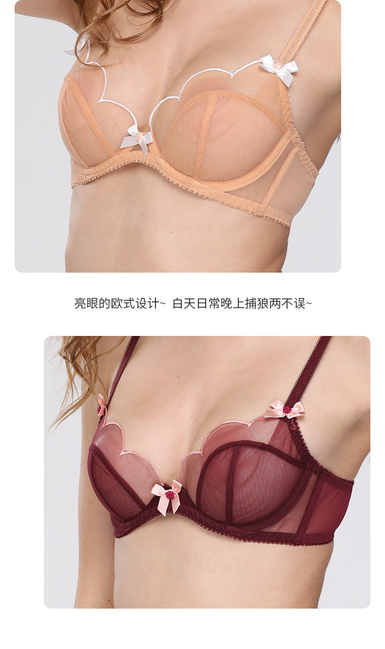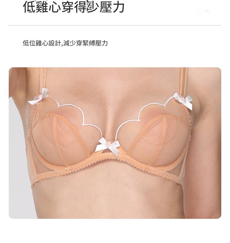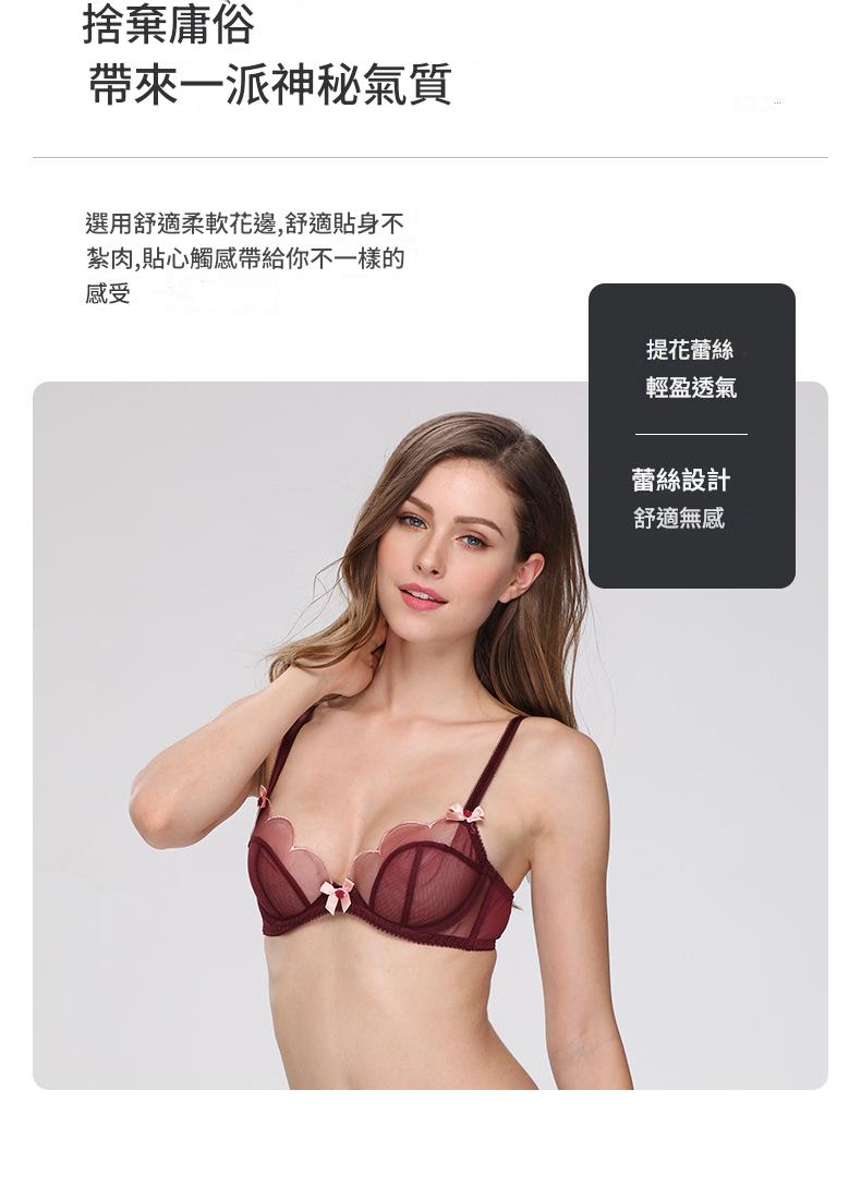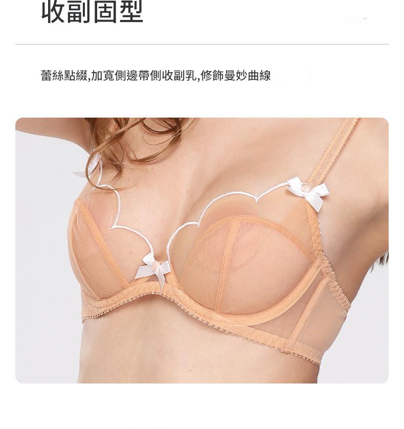 WLMZ113100359 法式內衣性感薄款透視蕾絲內衣夏季大胸顯小防下垂文胸套裝
