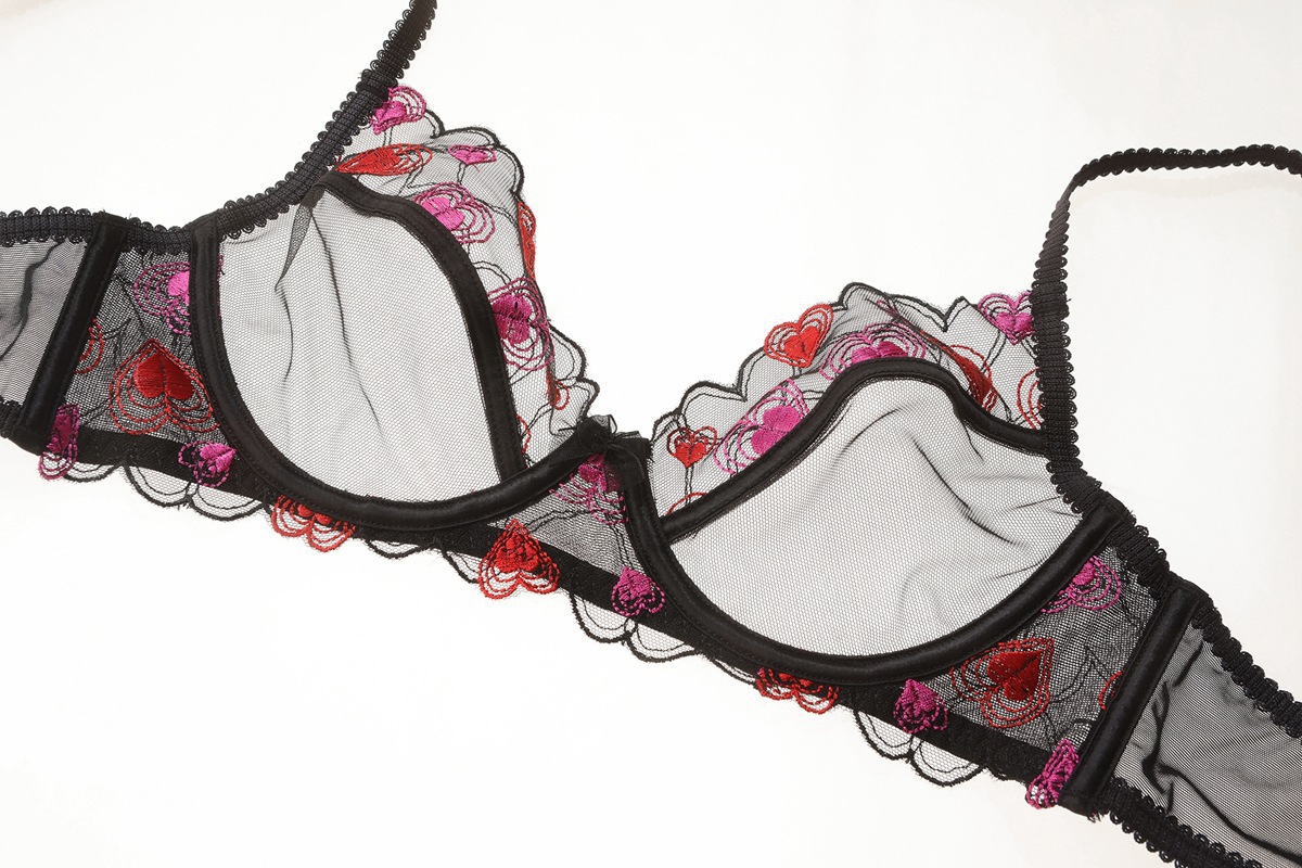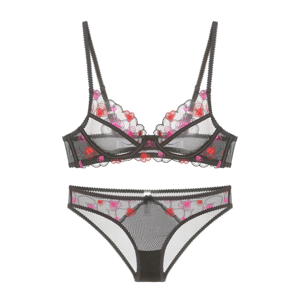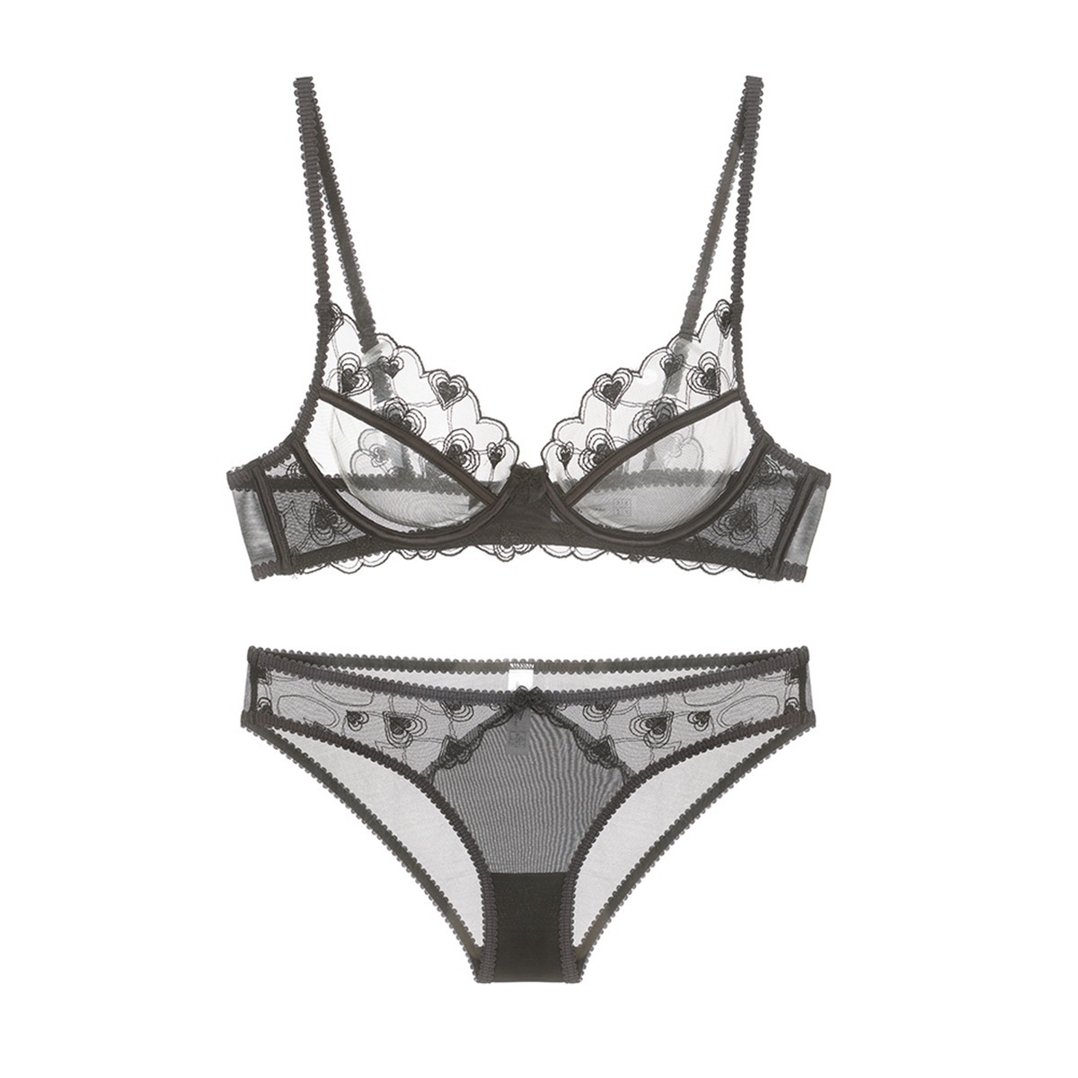 WLMZ113100380 法式性感內衣女超薄網紗刺繡蕾絲內衣大胸顯小防下垂文胸套裝