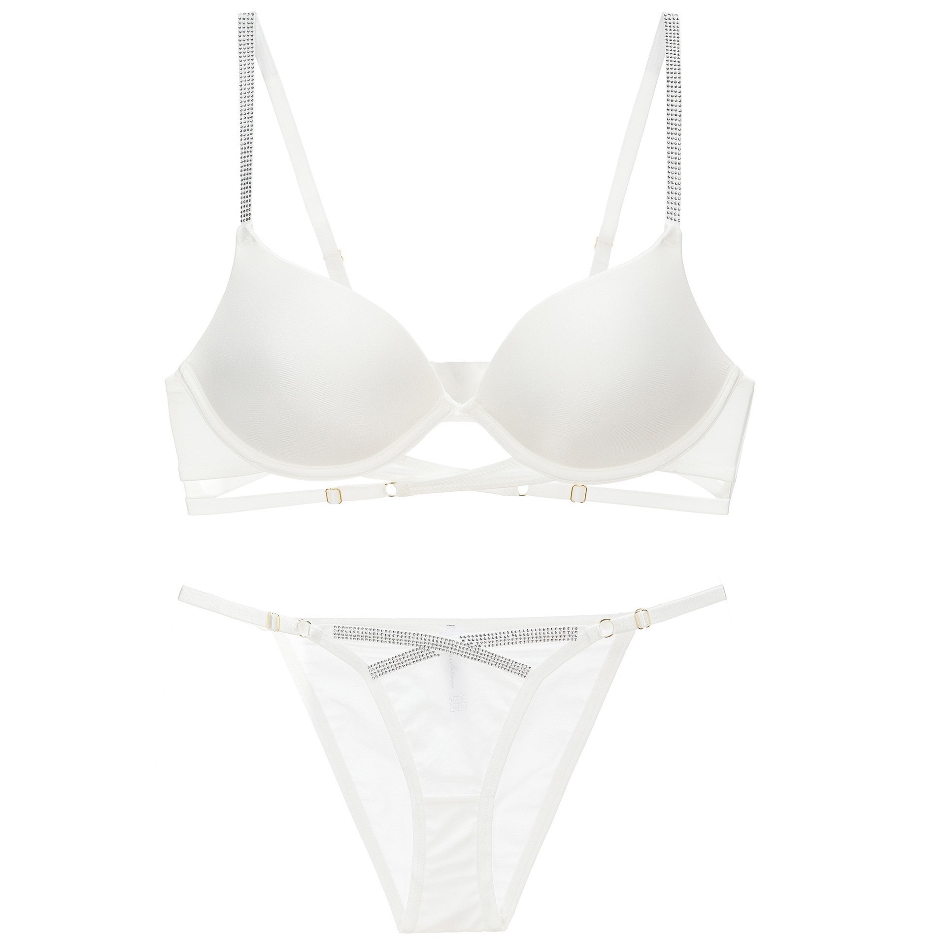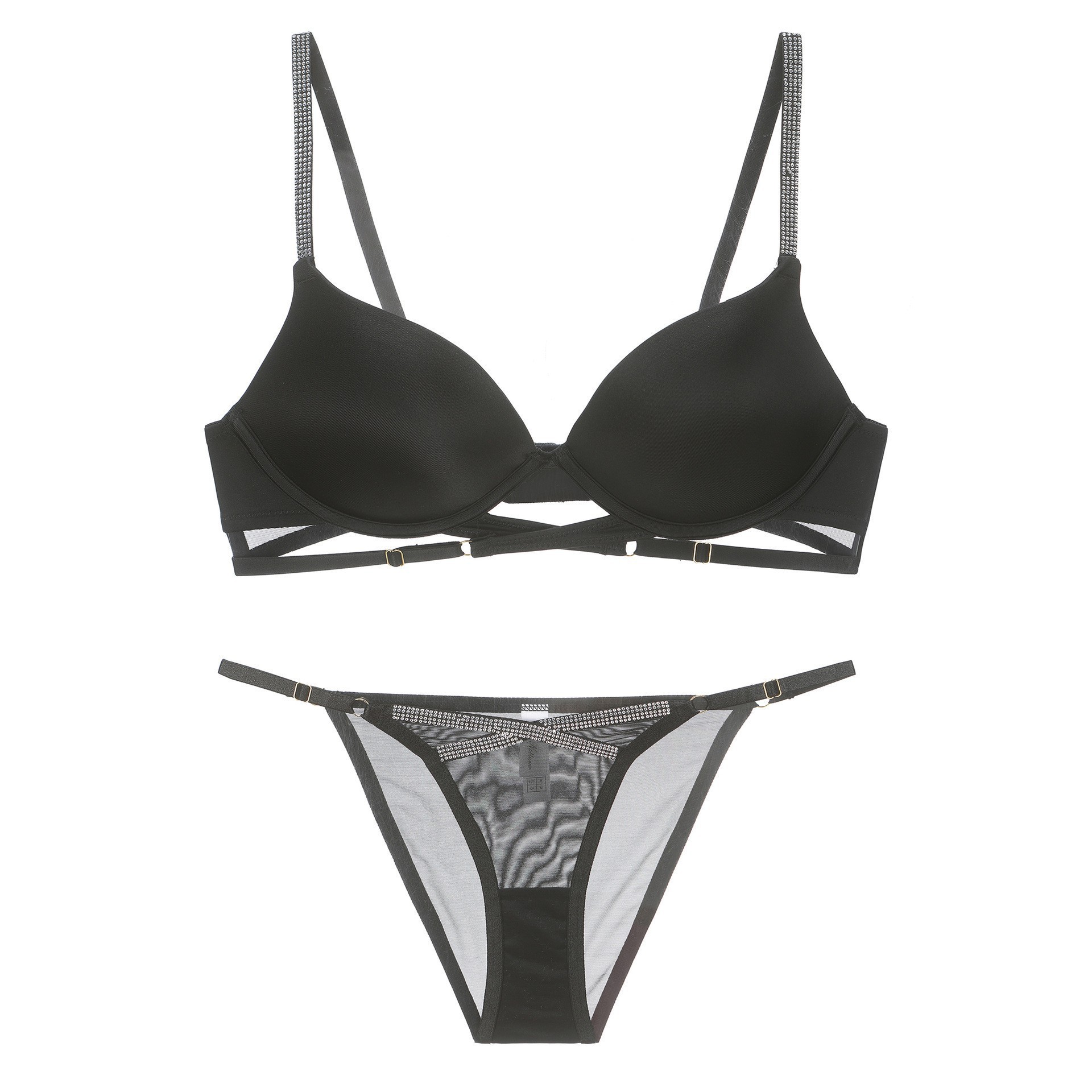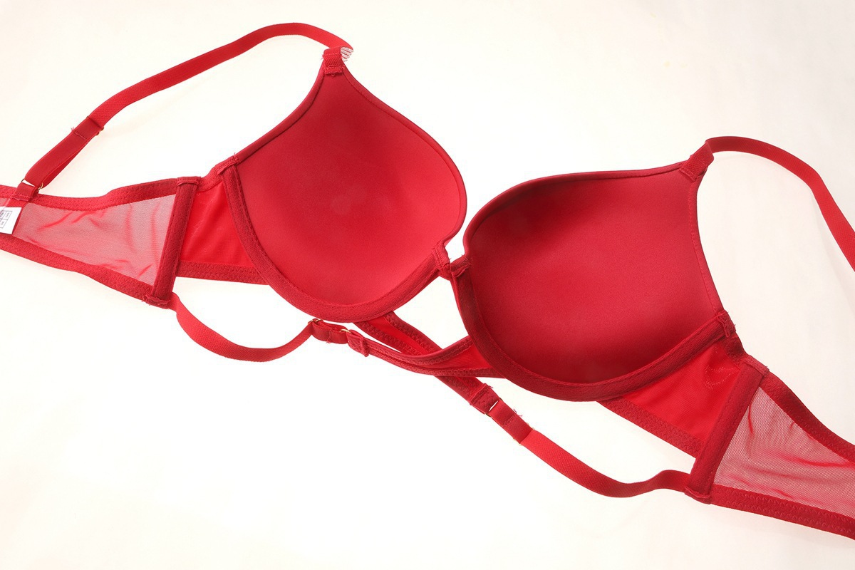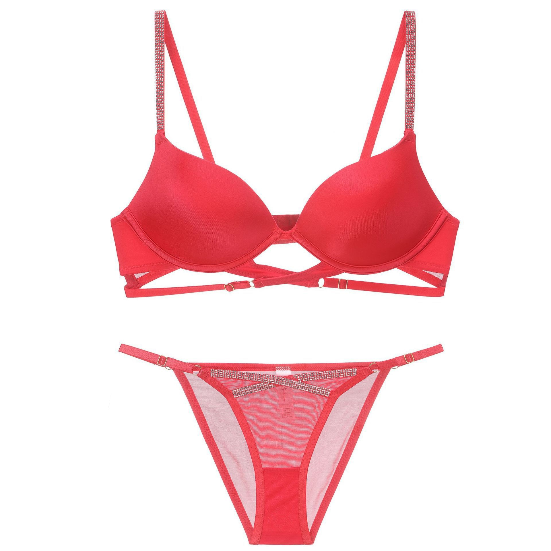 WLMZ113100381 性感內衣光面燙珠交叉綁帶小胸聚攏內衣收副乳大碼文胸罩