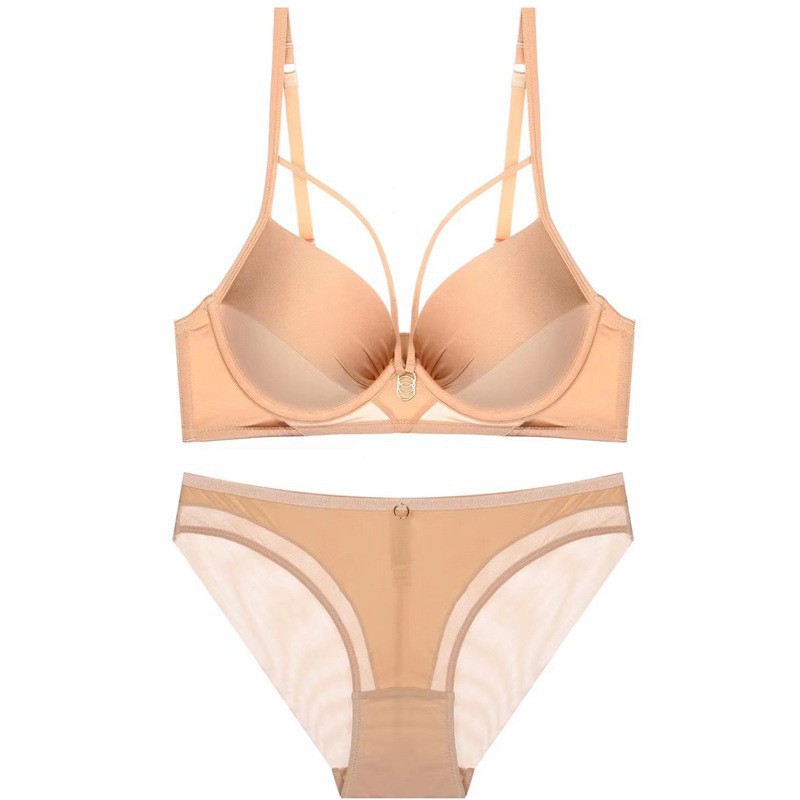 WLMZ113100387 性感內衣撞色綁帶小胸顯大聚攏內衣收副乳防下垂上托文胸套裝