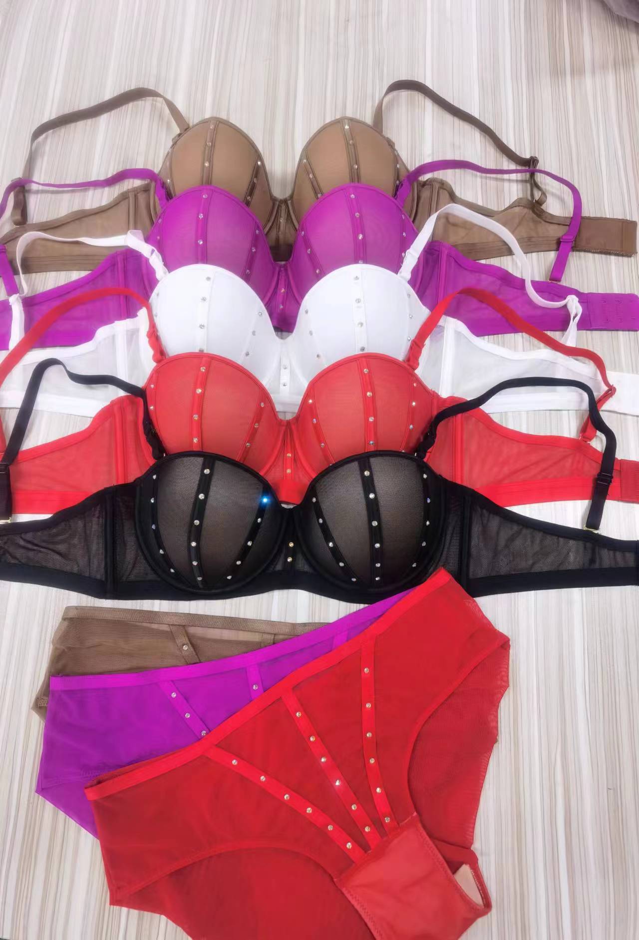 WLMZ113100388 性感內衣時尚燙鉆小胸顯大聚攏文胸收副乳防下垂上托文胸套裝