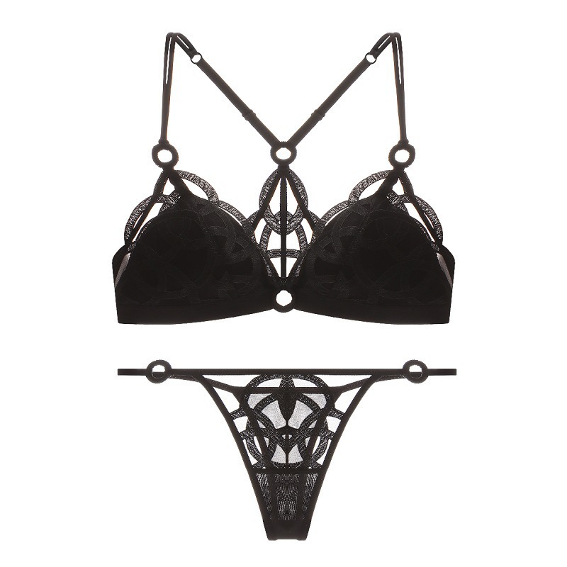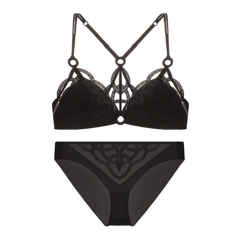 WLMZ113100407 法式性感美背內衣女大胸顯小大碼內衣套裝薄款網紗刺繡無鋼圈文胸
