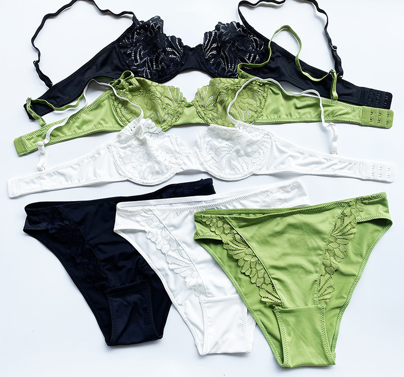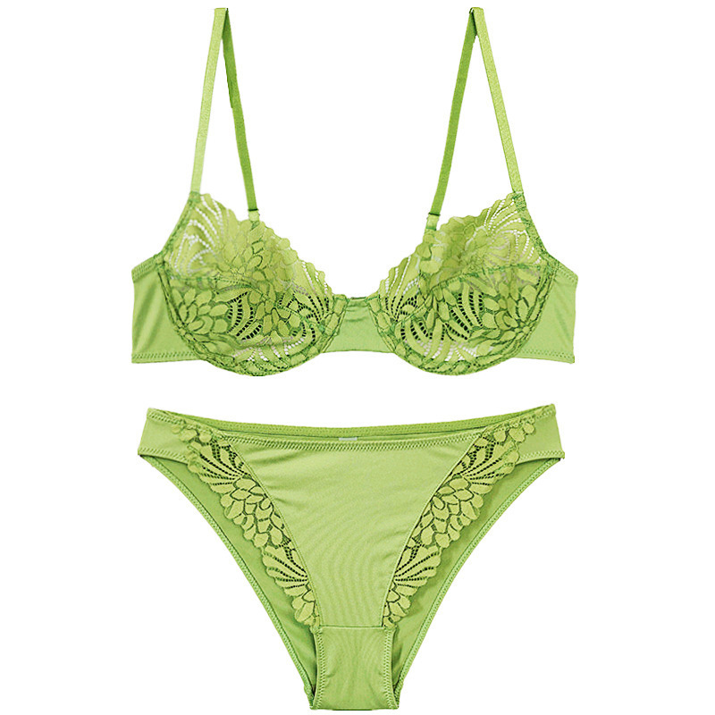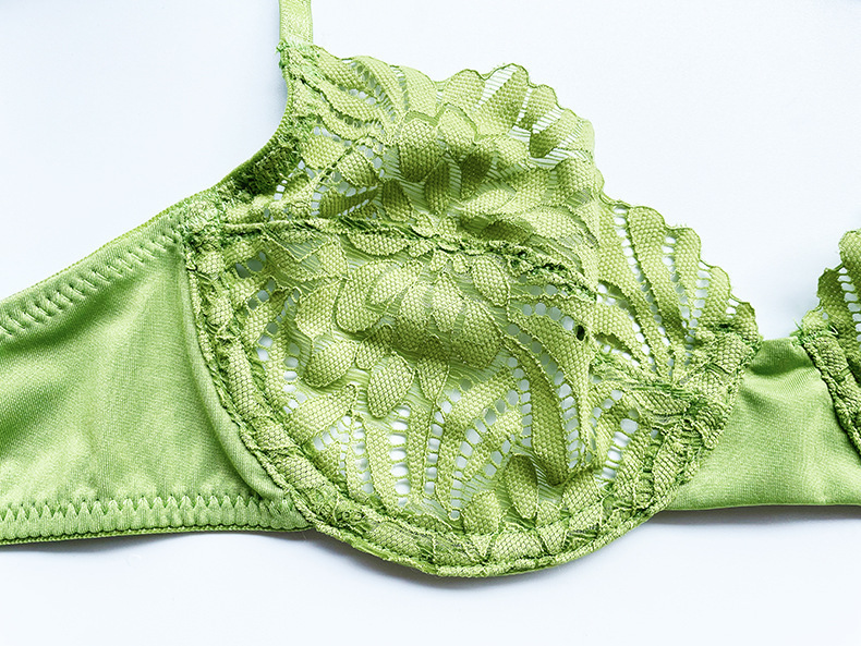 WLMZ113100409 法式內衣女性感情趣超薄無海綿蕾絲文胸大胸顯小防下垂文胸套裝