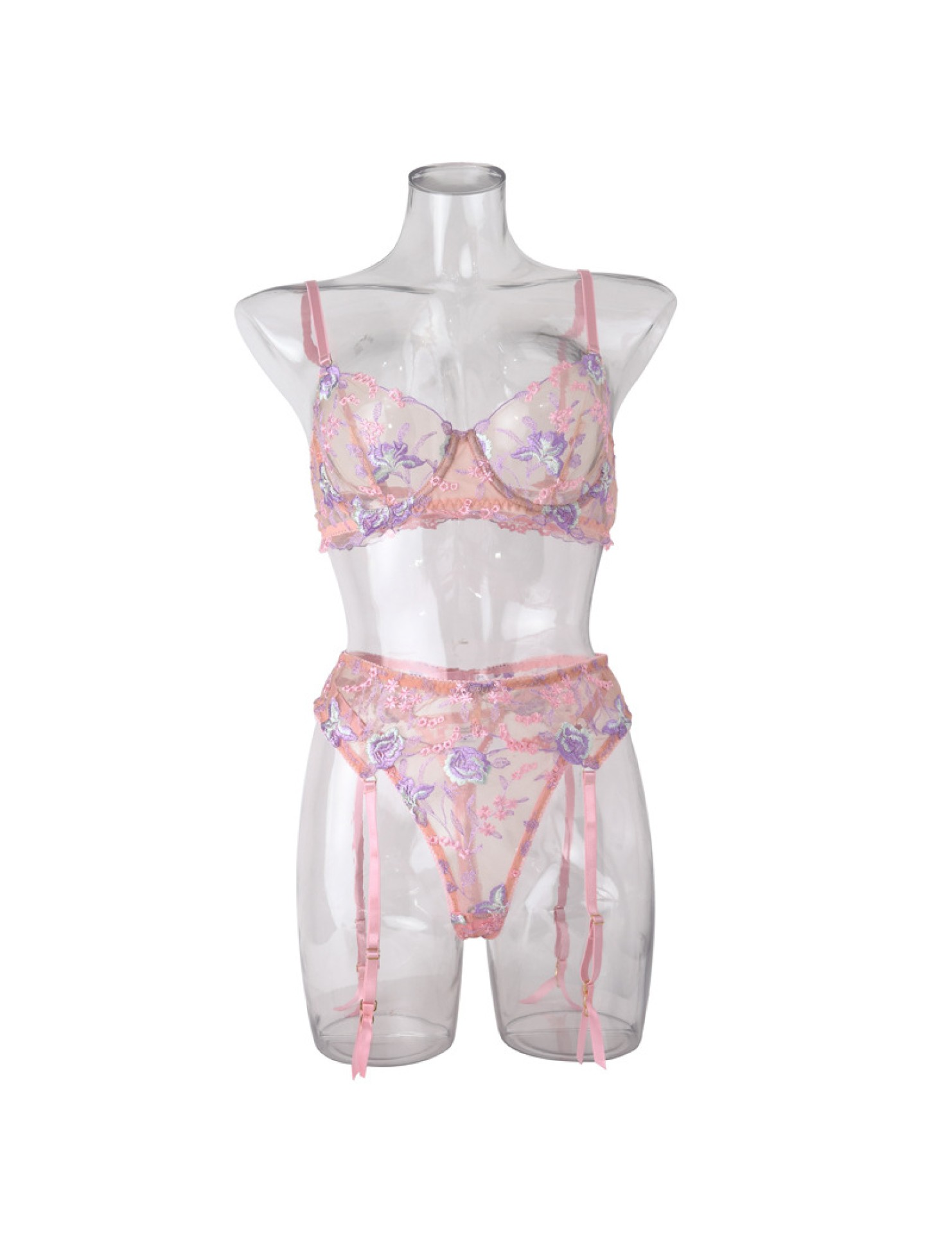LSFA110FTJ1030 春夏性感內衣吊襪刺繡聚攏網紗塑身分體套裝