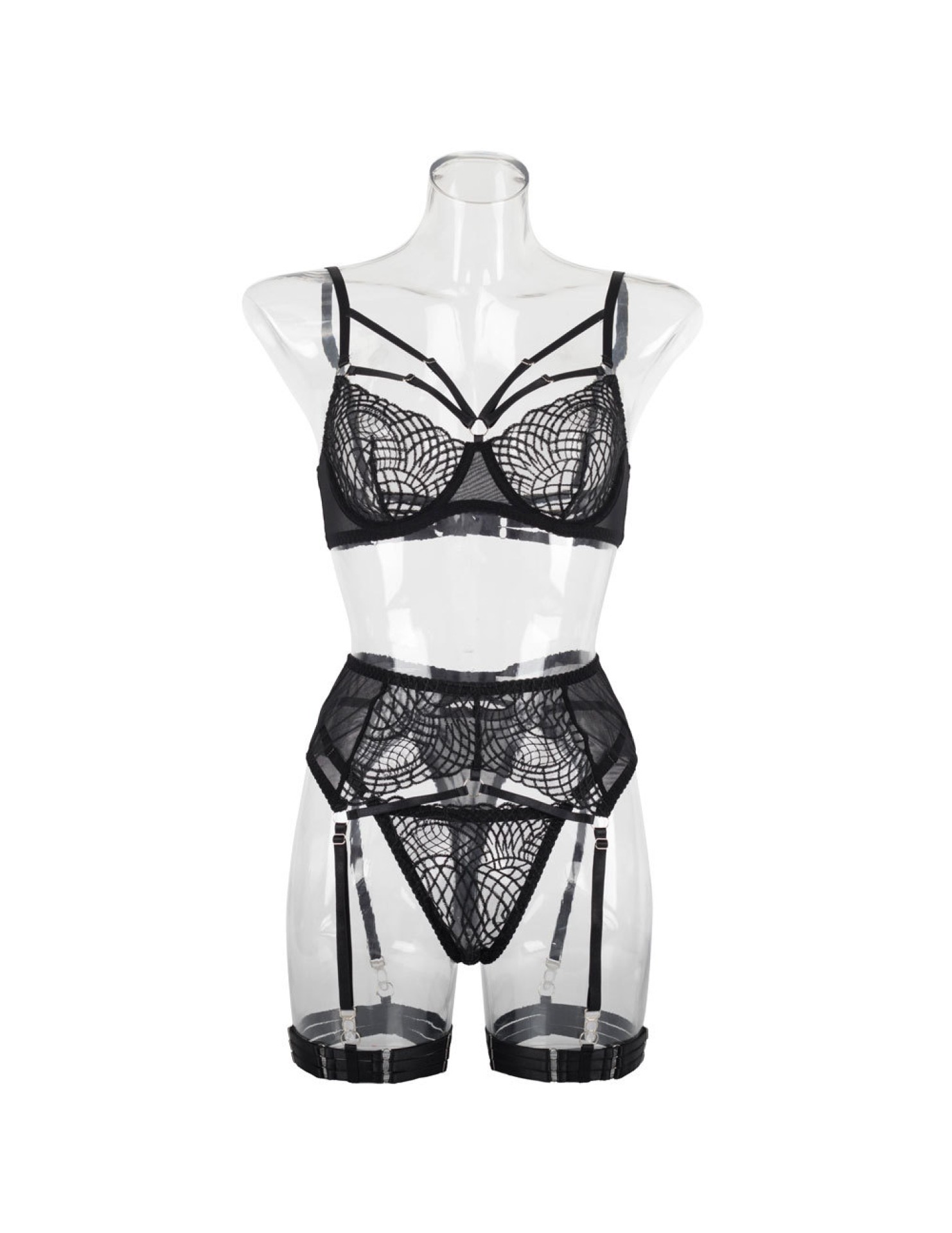 LSFA110FQA1031 性感內衣吊襪刺繡網紗塑身分體套裝