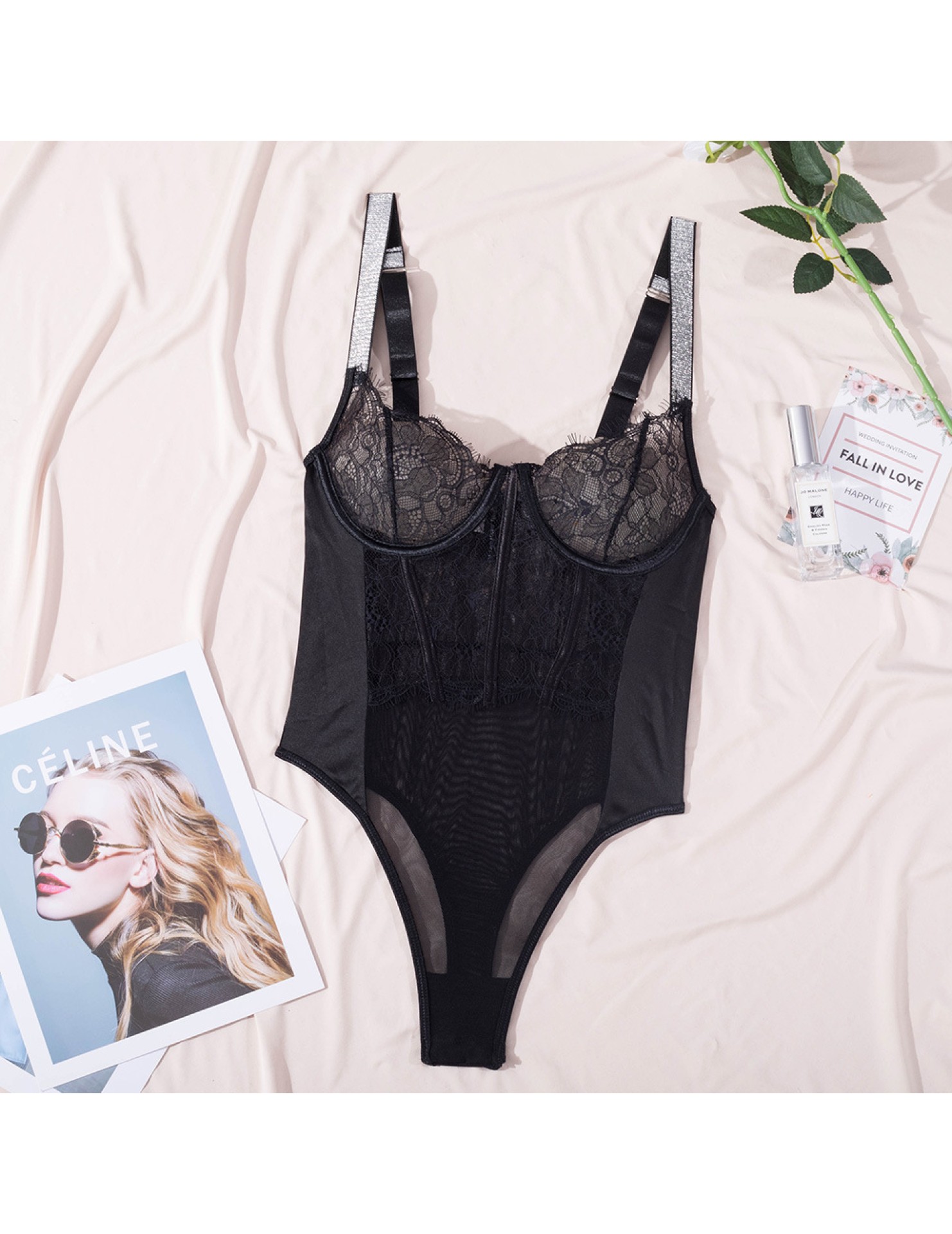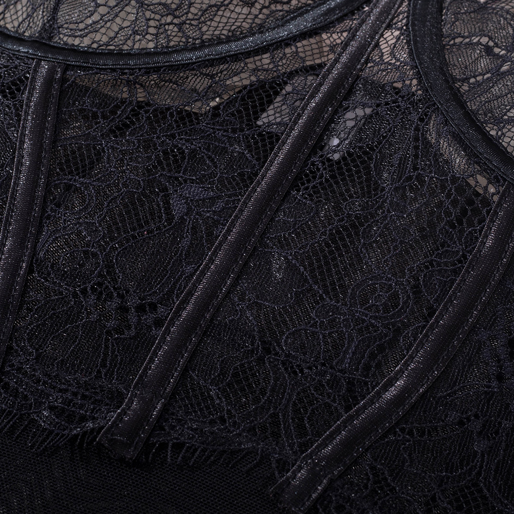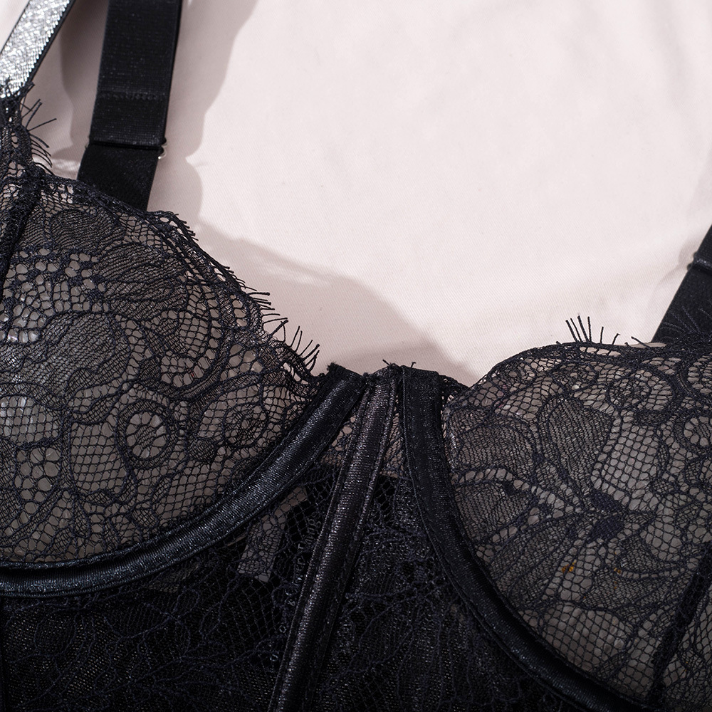 LSFA110FJR1035 新款夏季女裝蕾絲開檔鏤空拼接吊帶鋼圈塑身連體衣