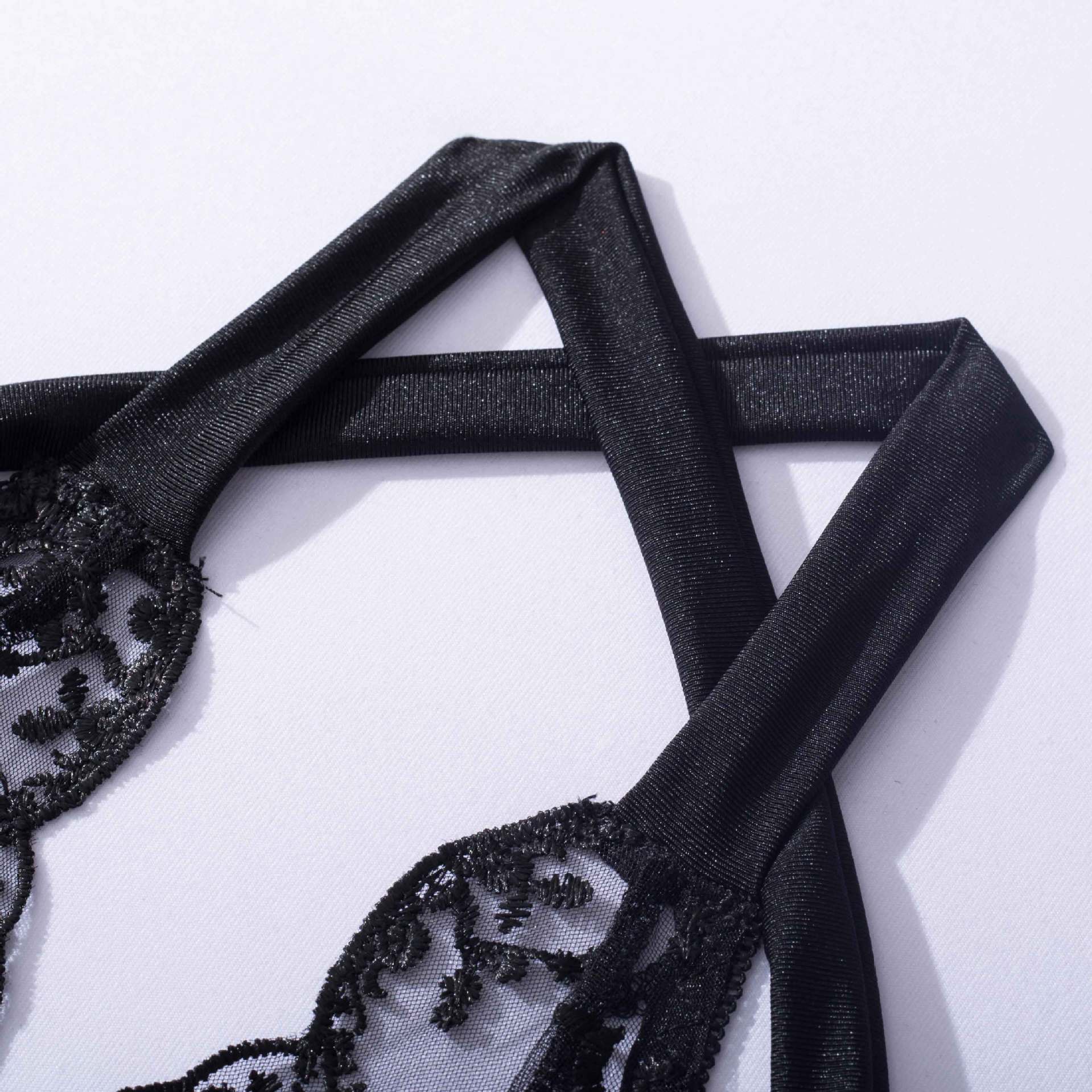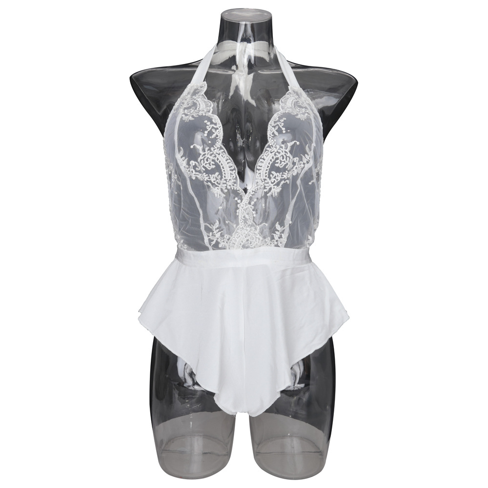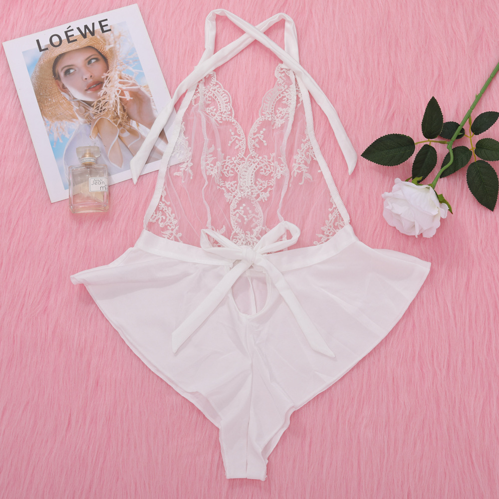 LSFA110GCM1003 性感刺繡夏新款綁帶開檔情趣內衣塑身連體衣女士