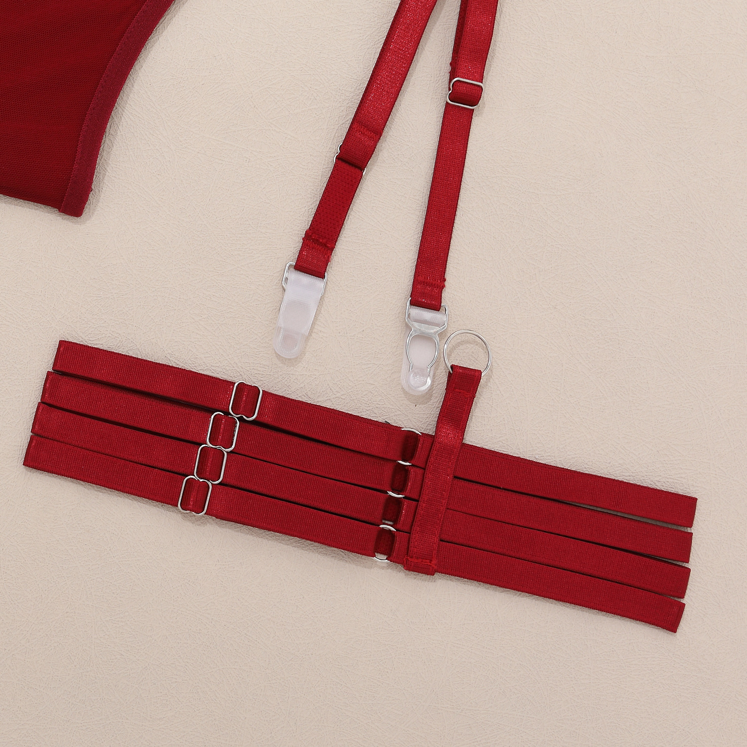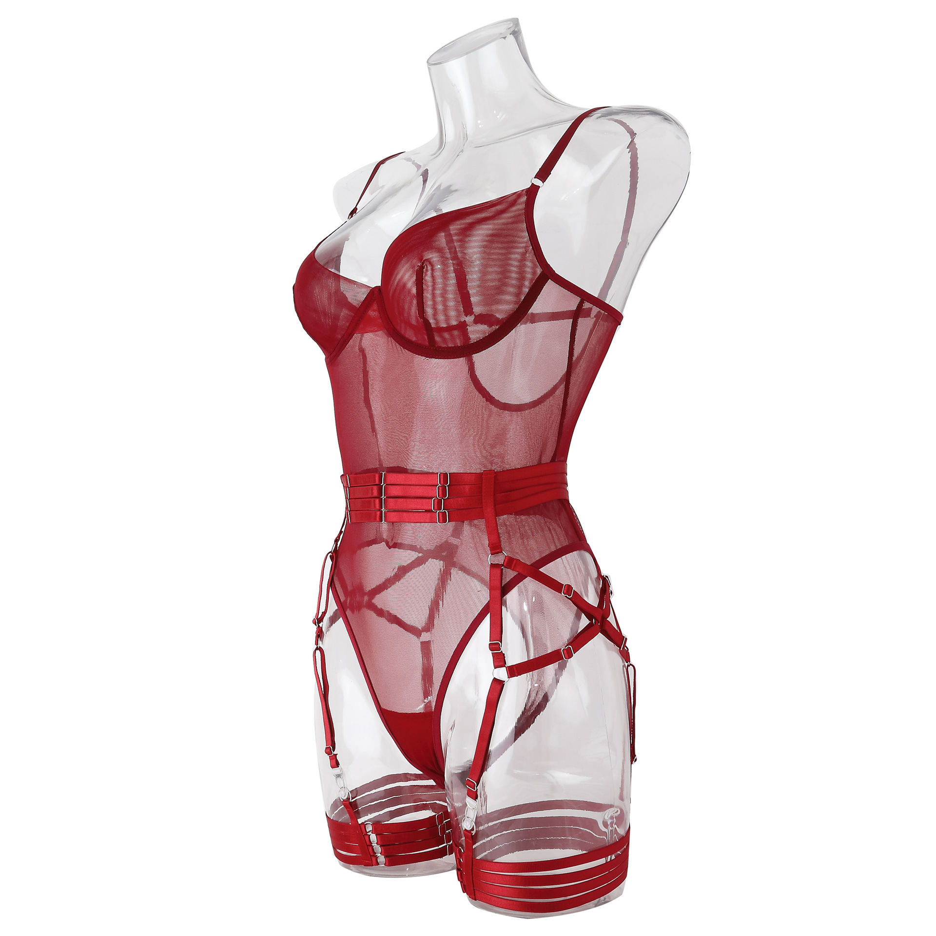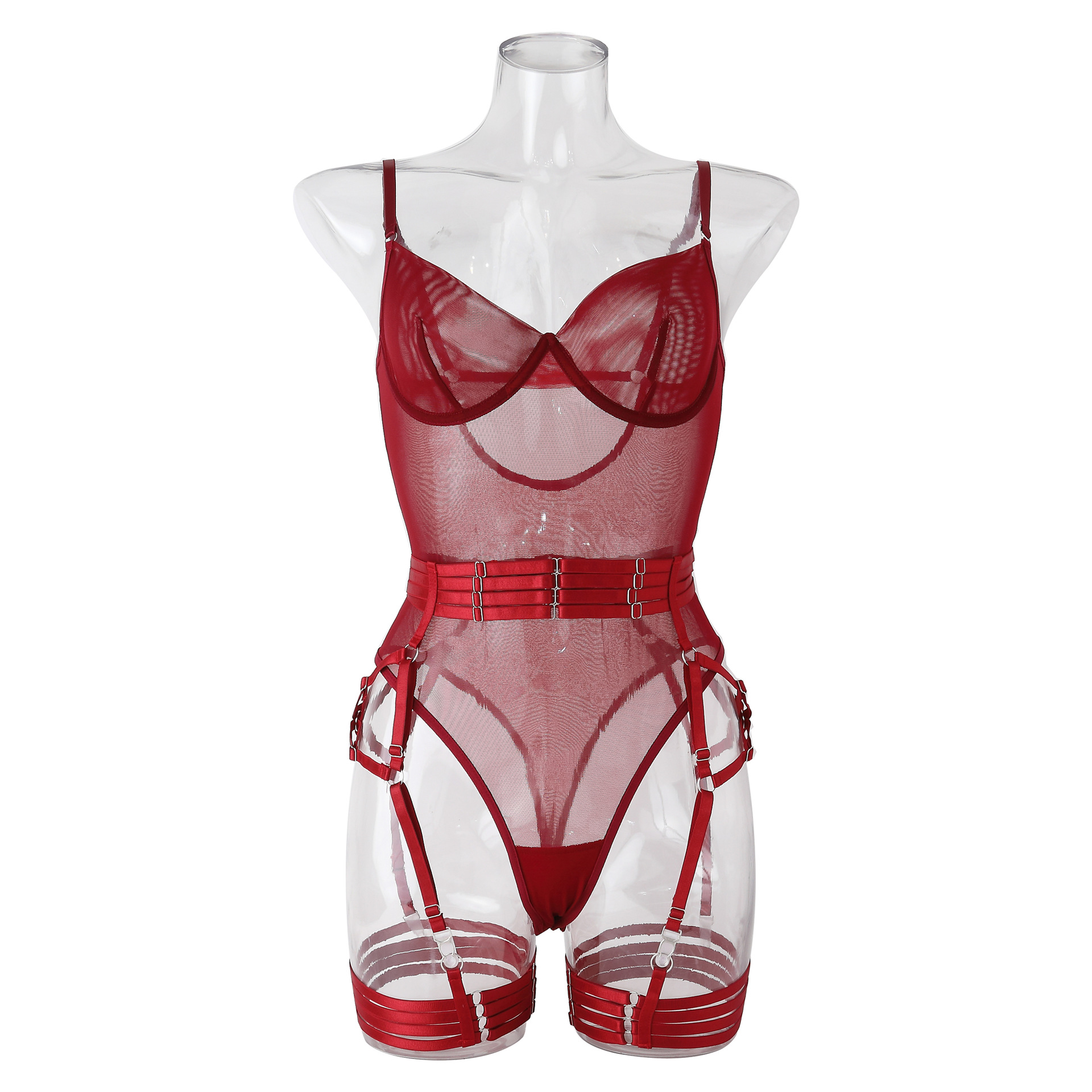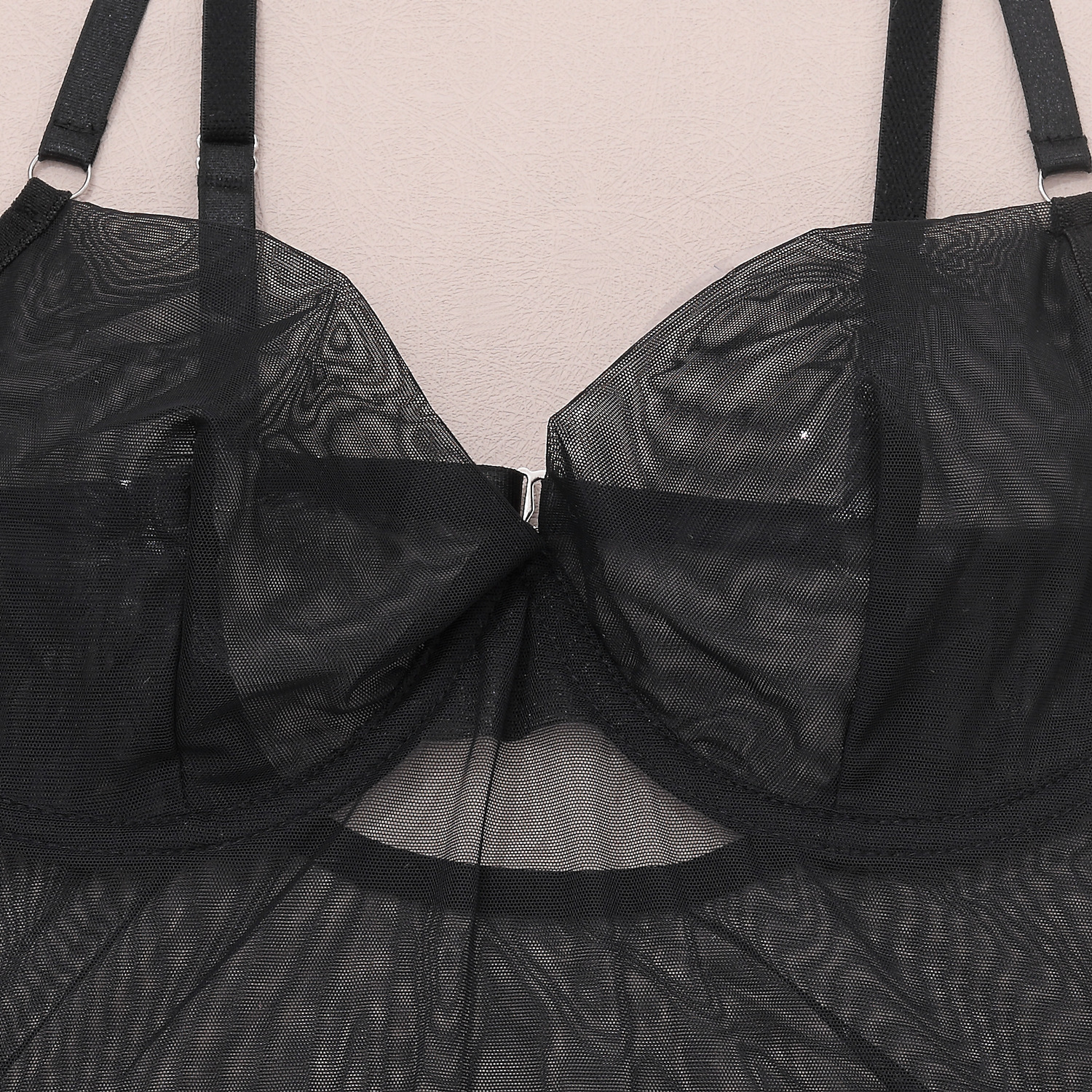 LSFA110GKB1006 新款女情趣網紗含手套腰帶吊襪扣開檔暗扣塑身連體衣