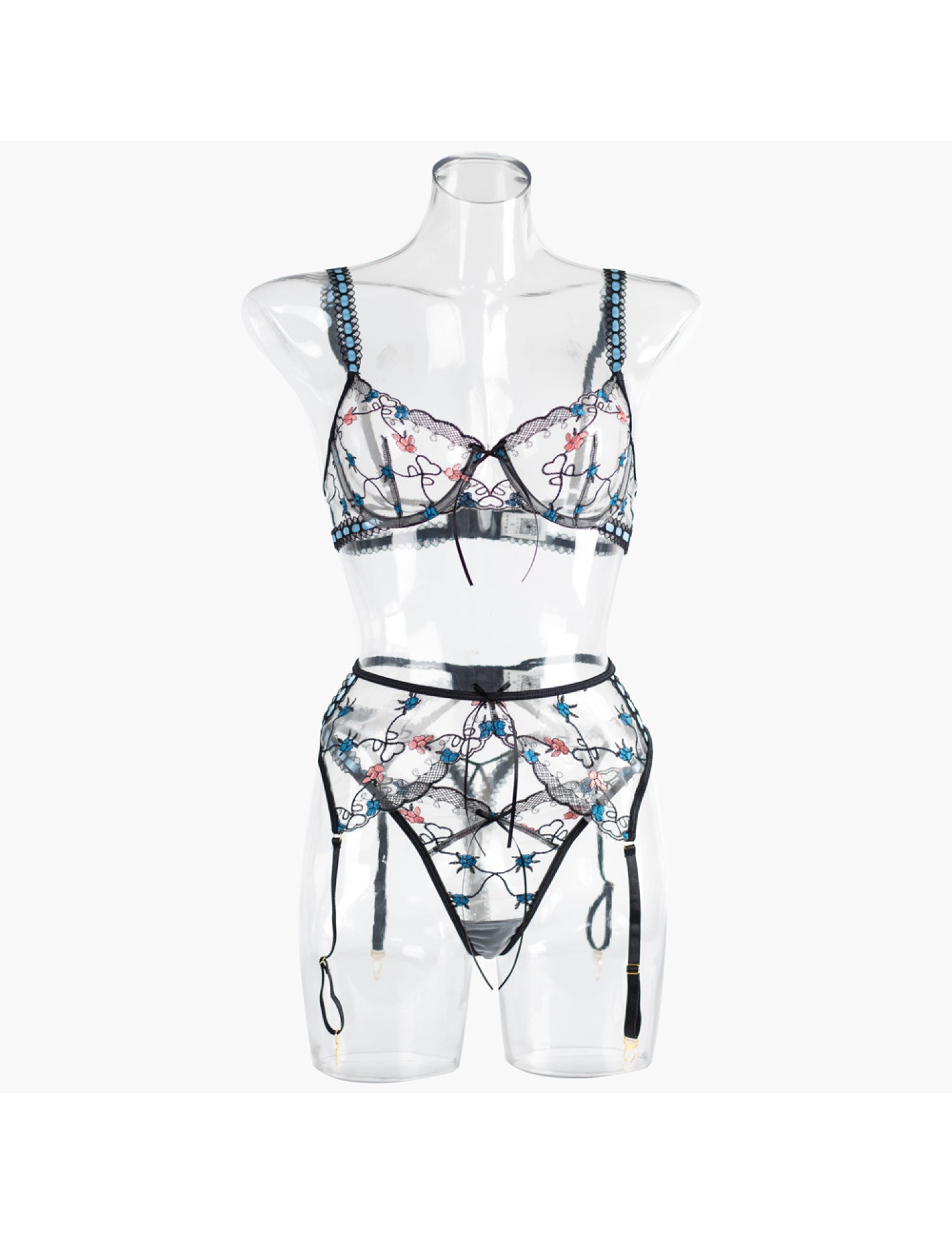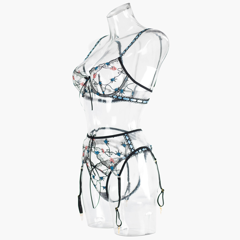 LSFA110GBD1007 刺繡吊襪帶鋼圈三件套女士情趣內衣塑身分體套裝