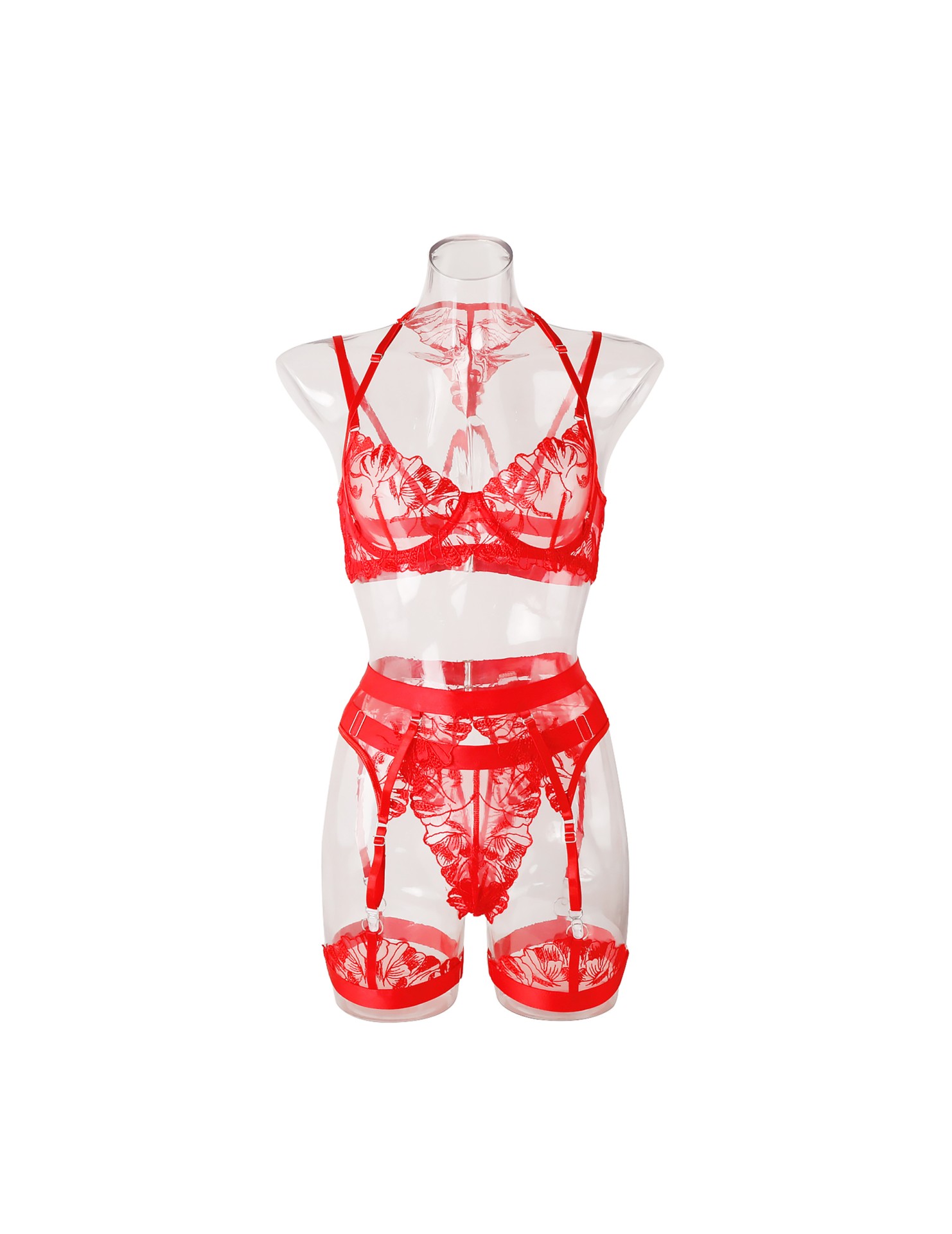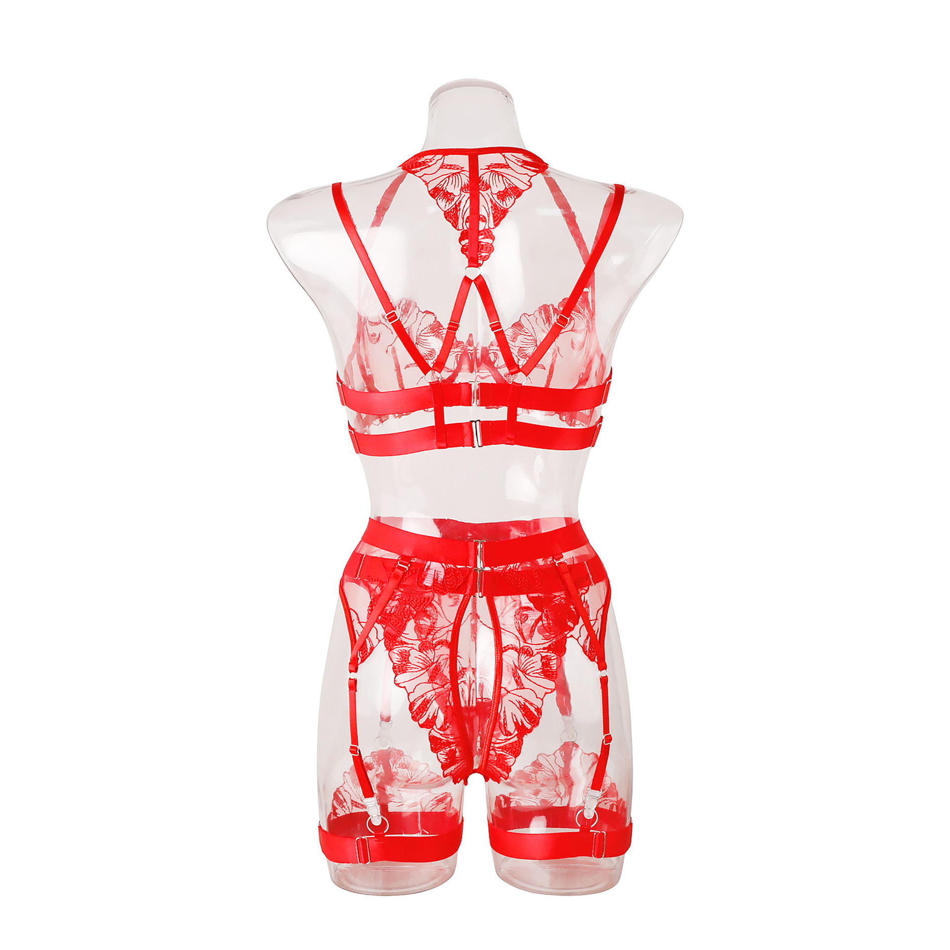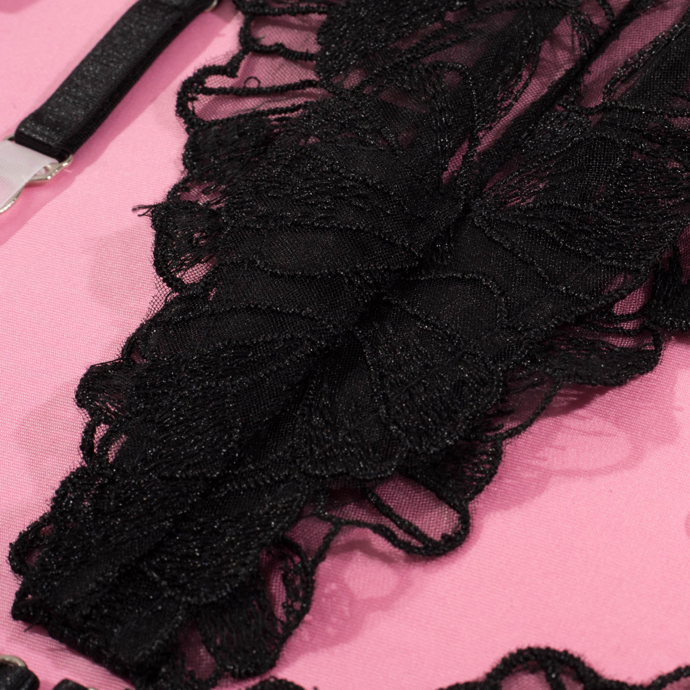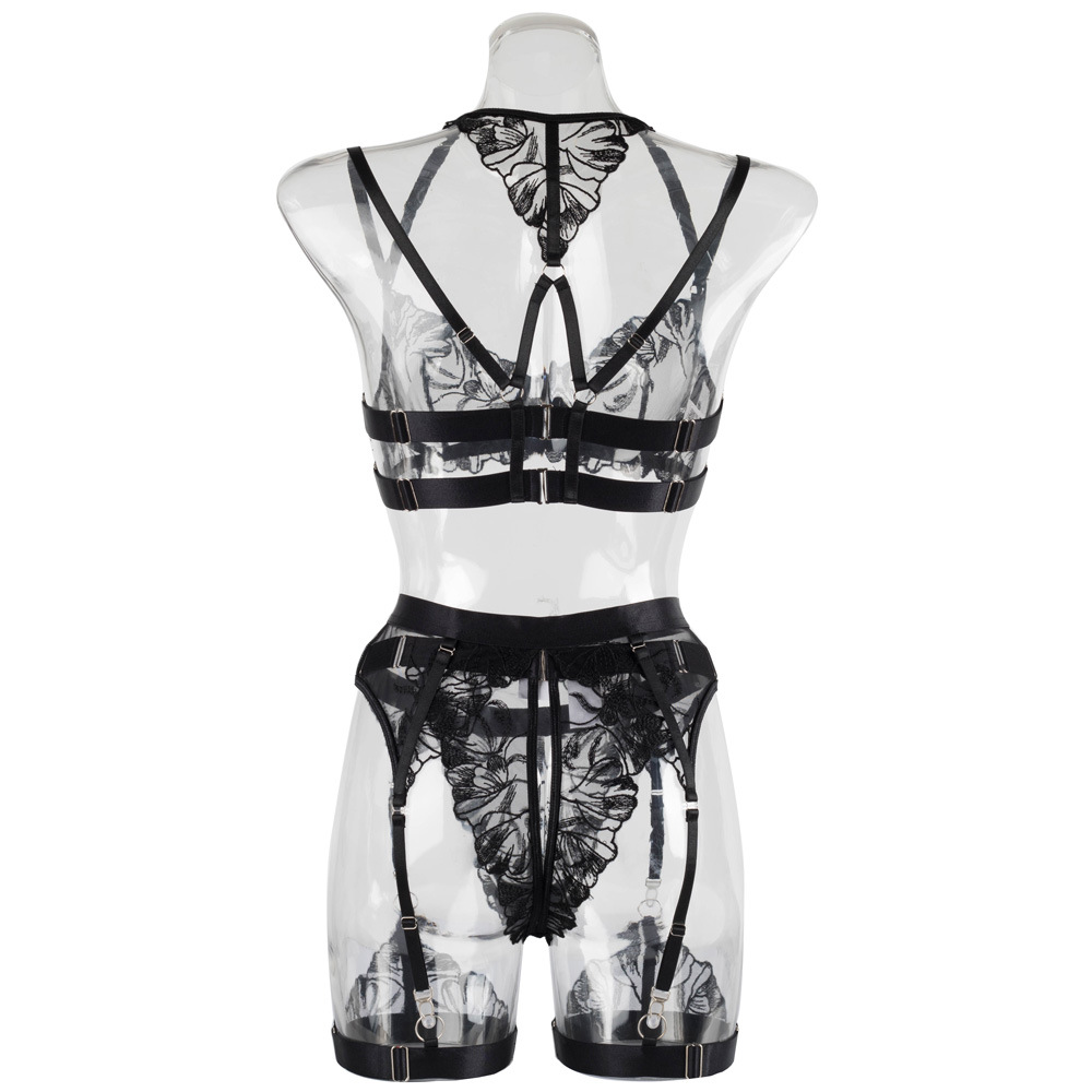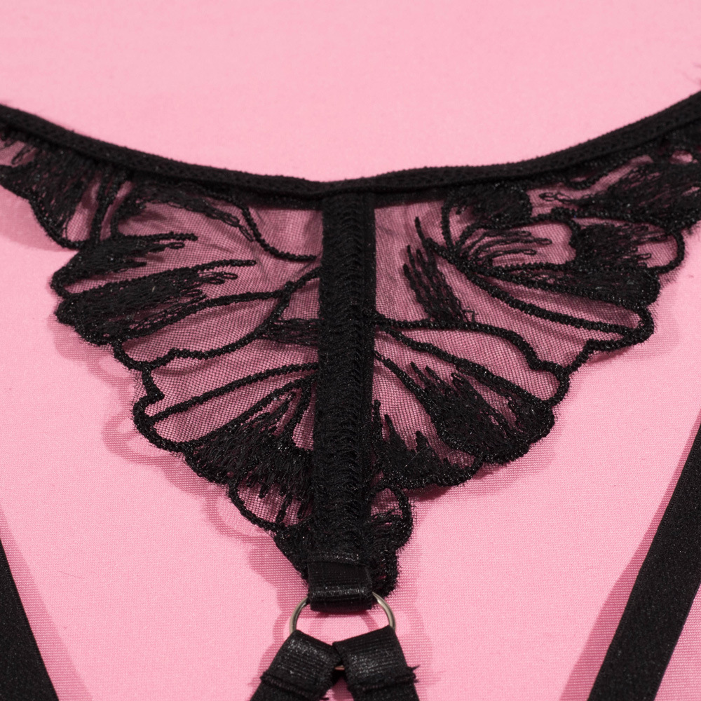 LSFA110GCO1012 黑色刺繡高品質吊襪帶鋼圈情趣內衣塑身分體套裝