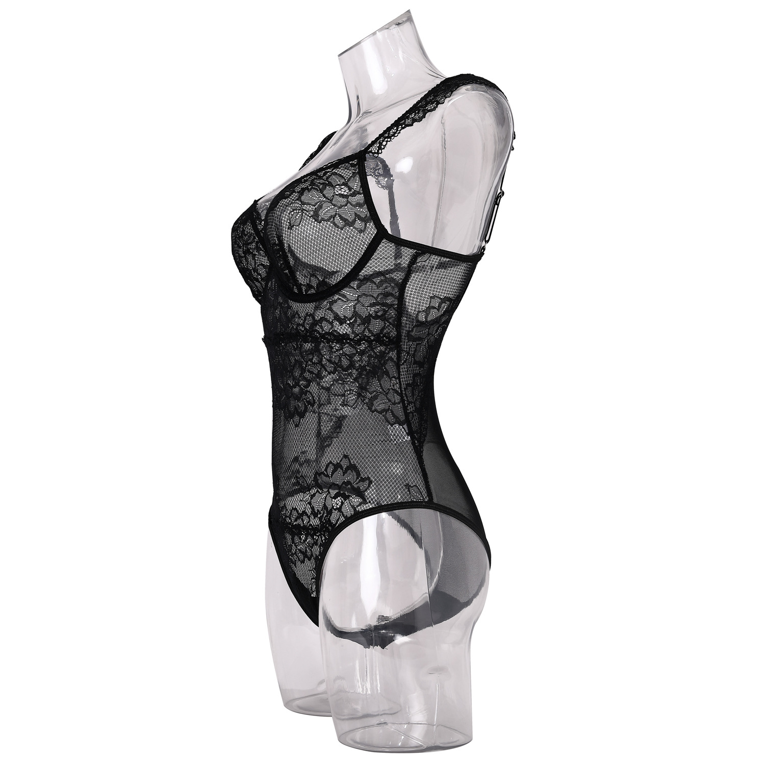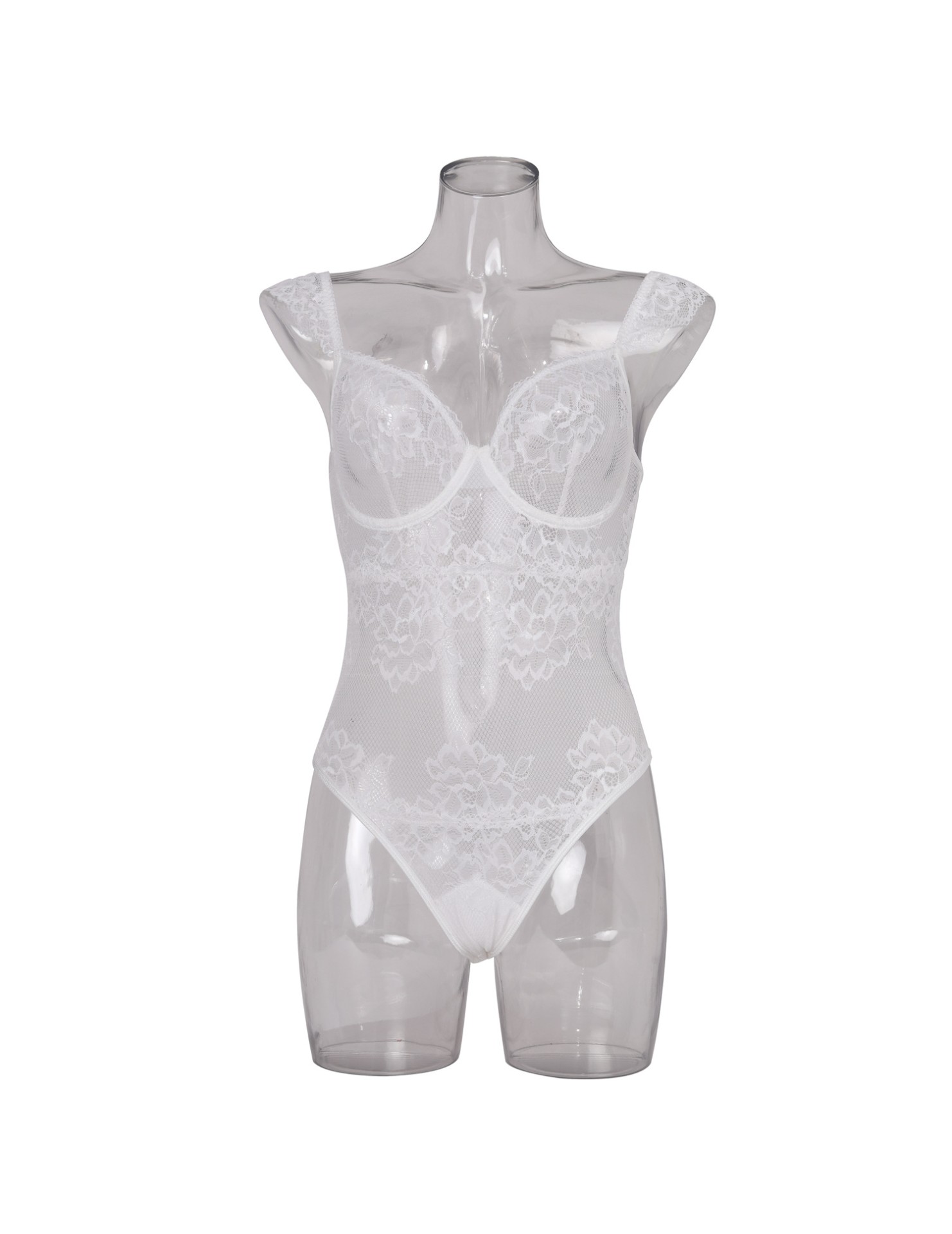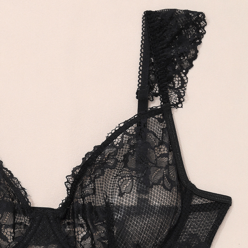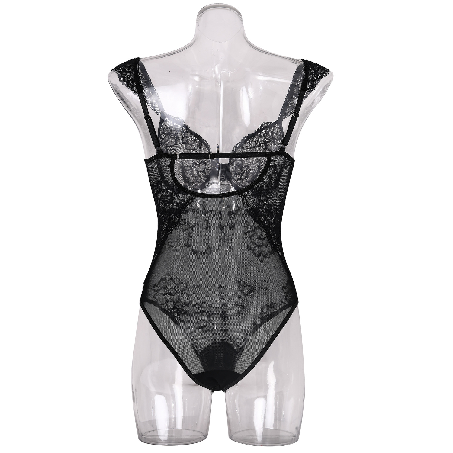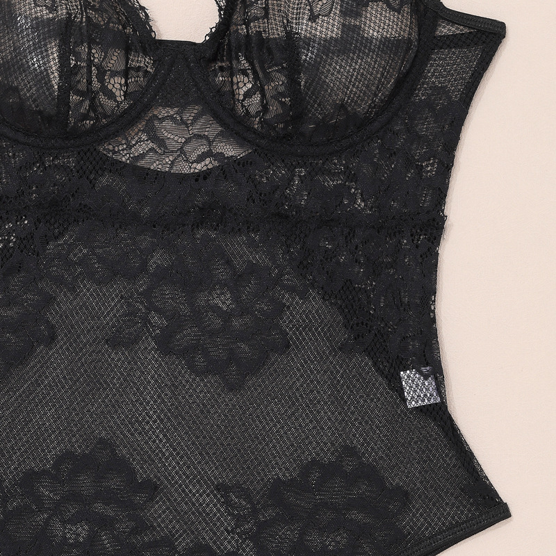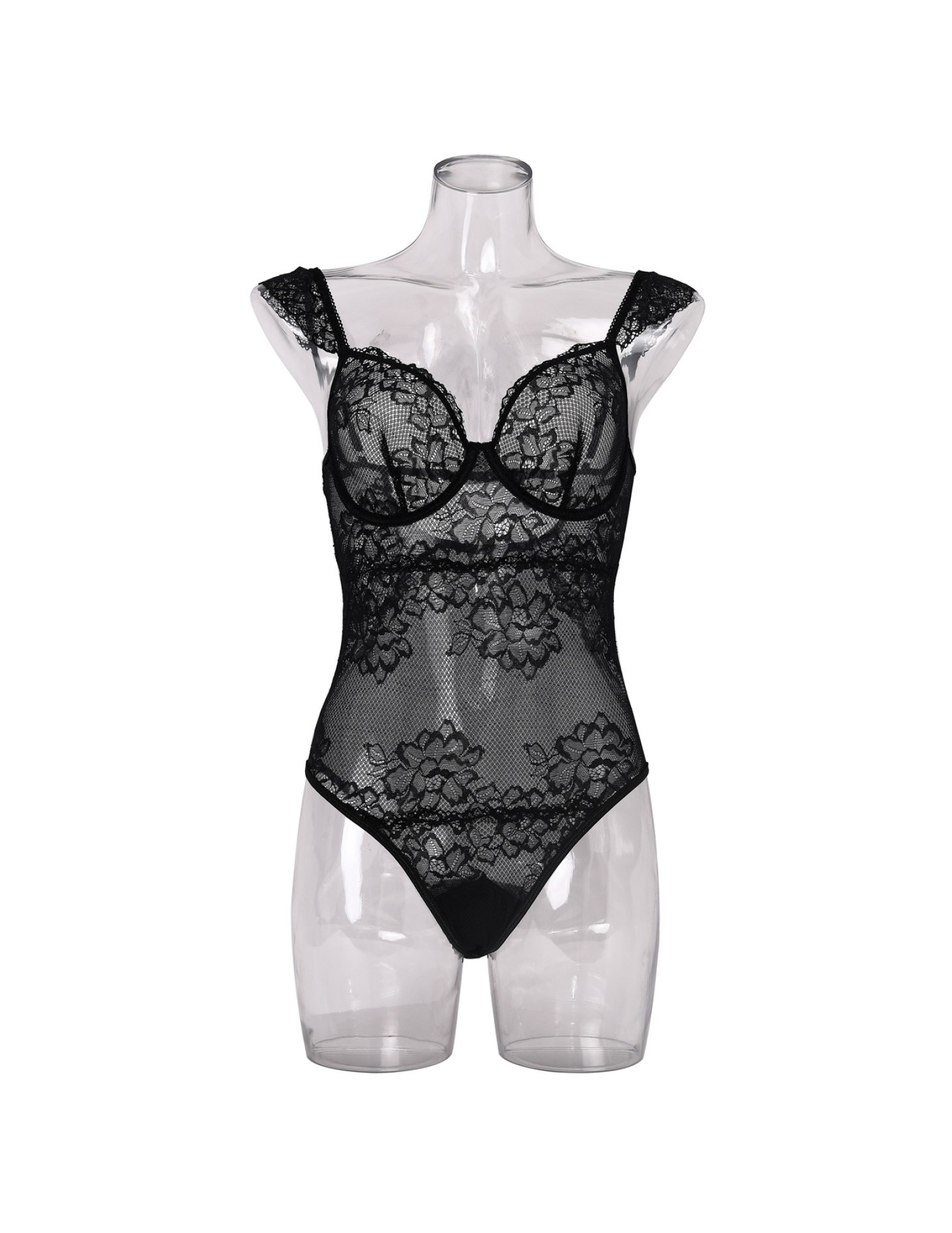 LSFA110GOJ1016 性感蕾絲花邊鋼圈透視聚攏純色顯瘦薄款舒適連體衣情趣內衣