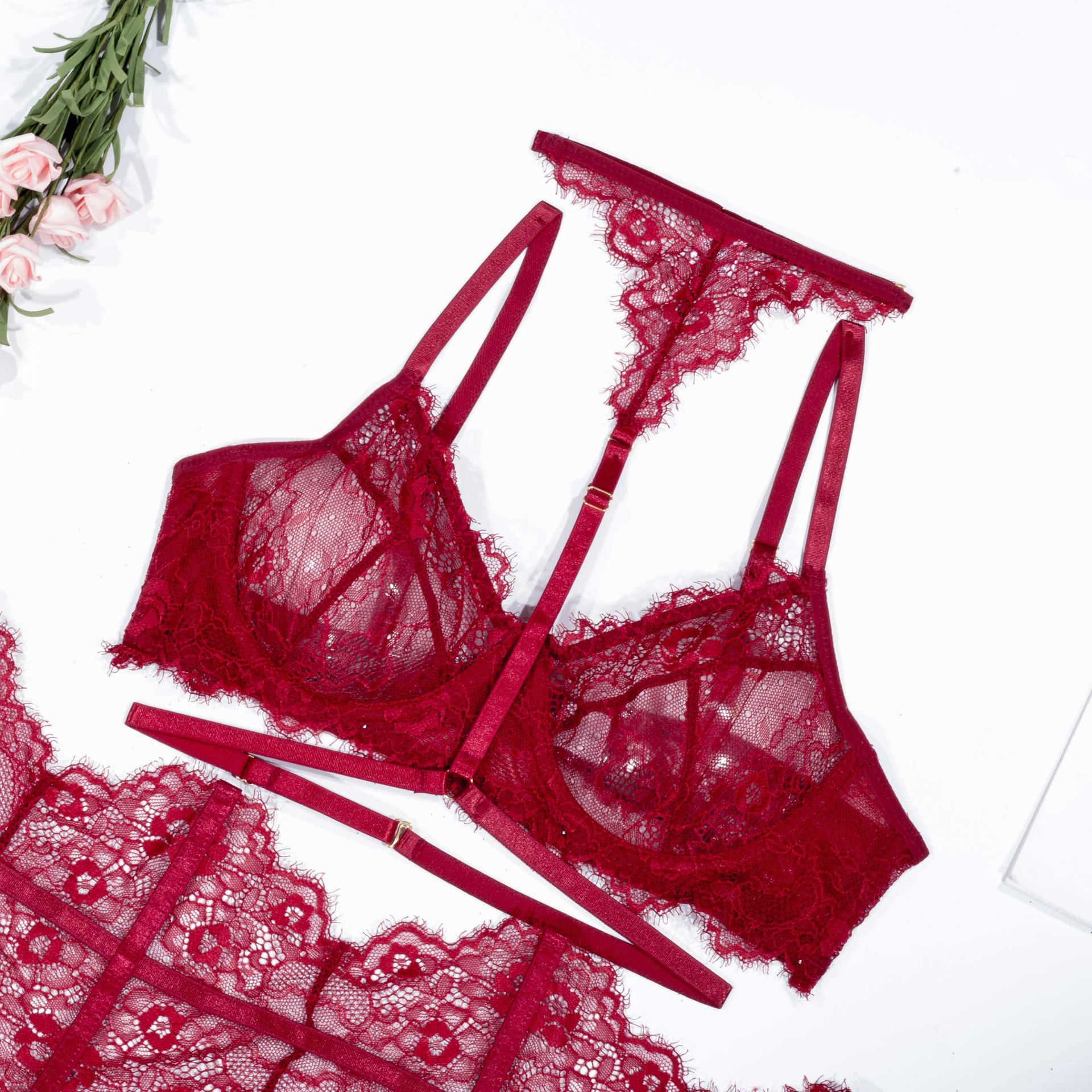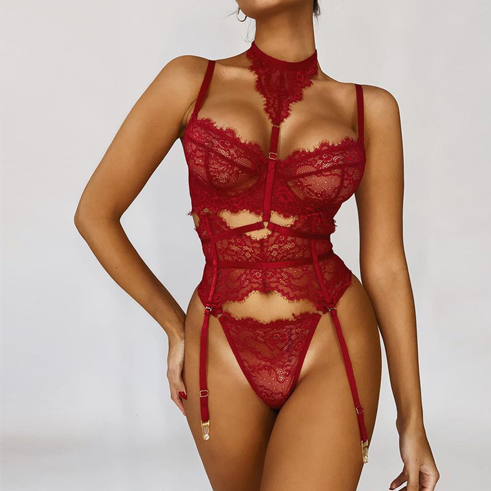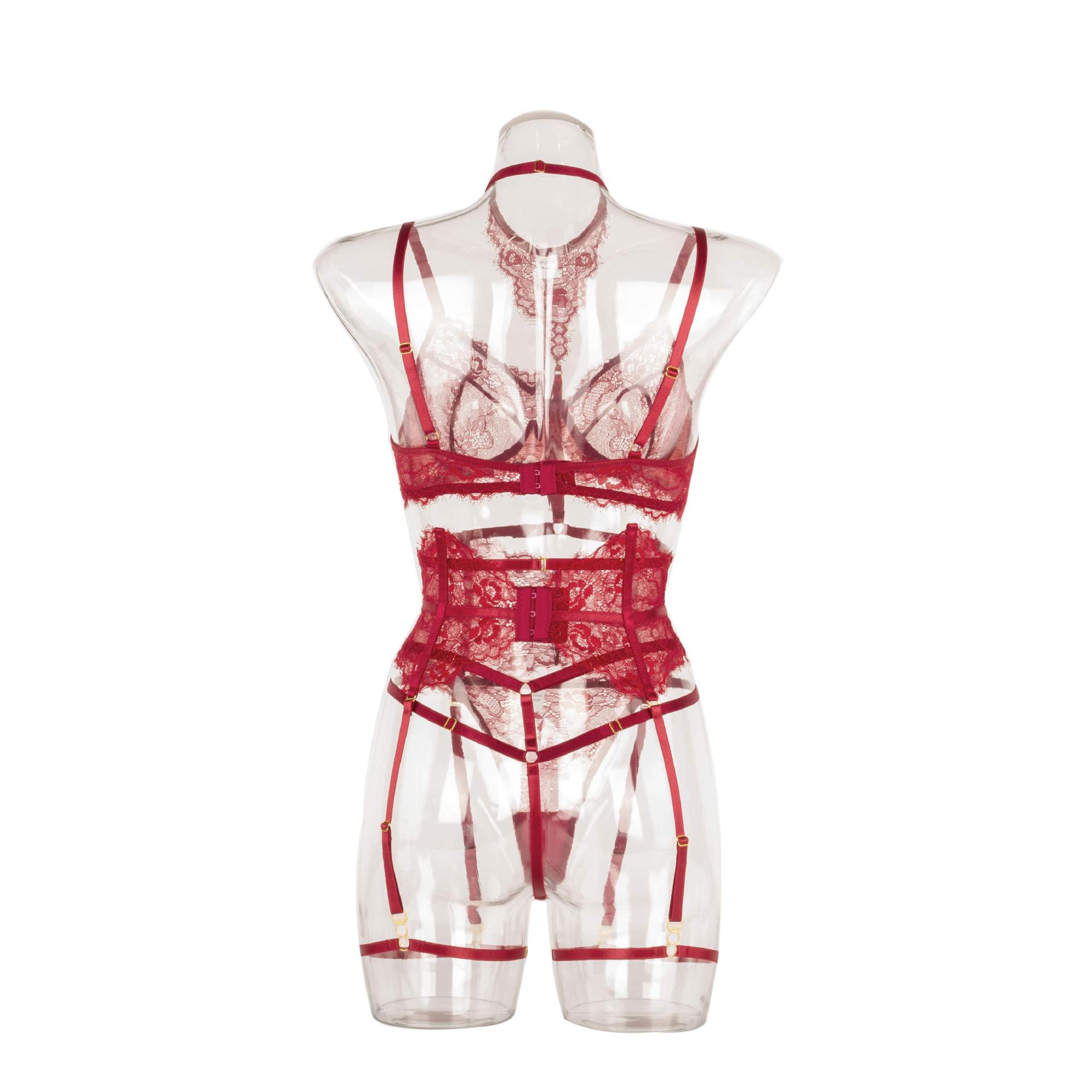 LSFA110GJP1021 性感內衣睫毛蕾絲膠骨吊襪帶8色塑身五件套