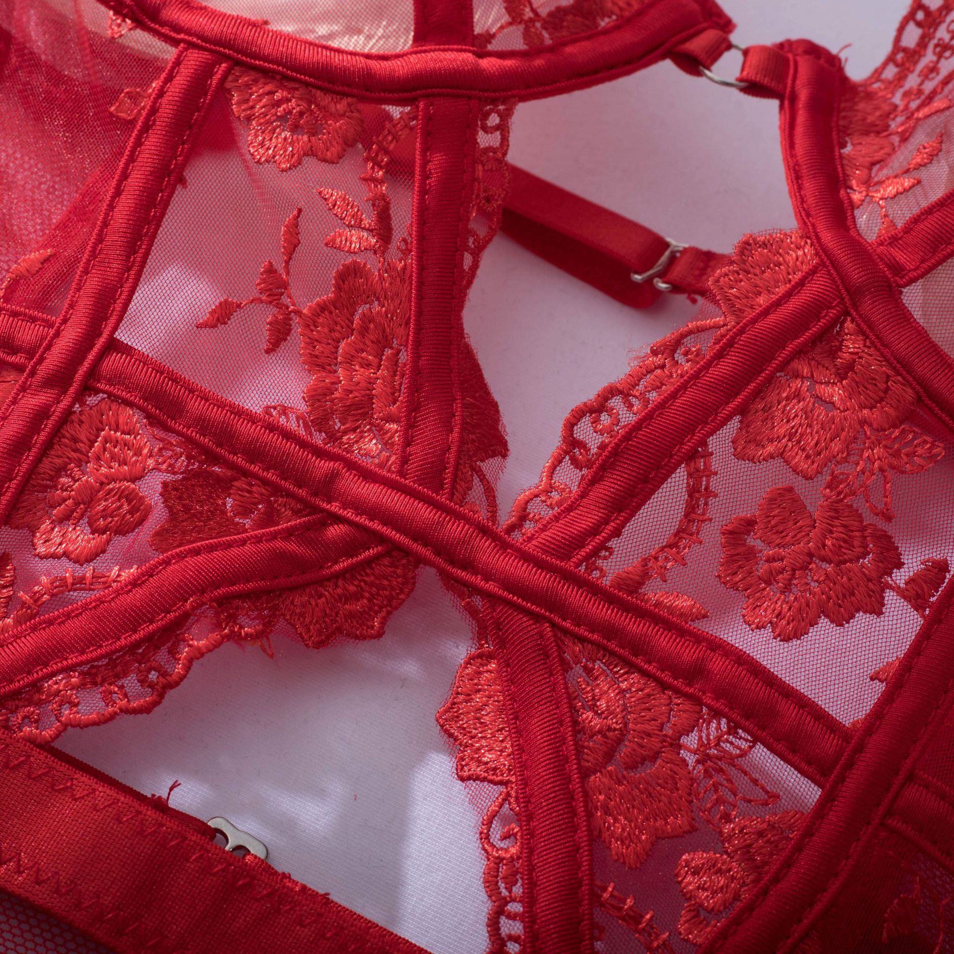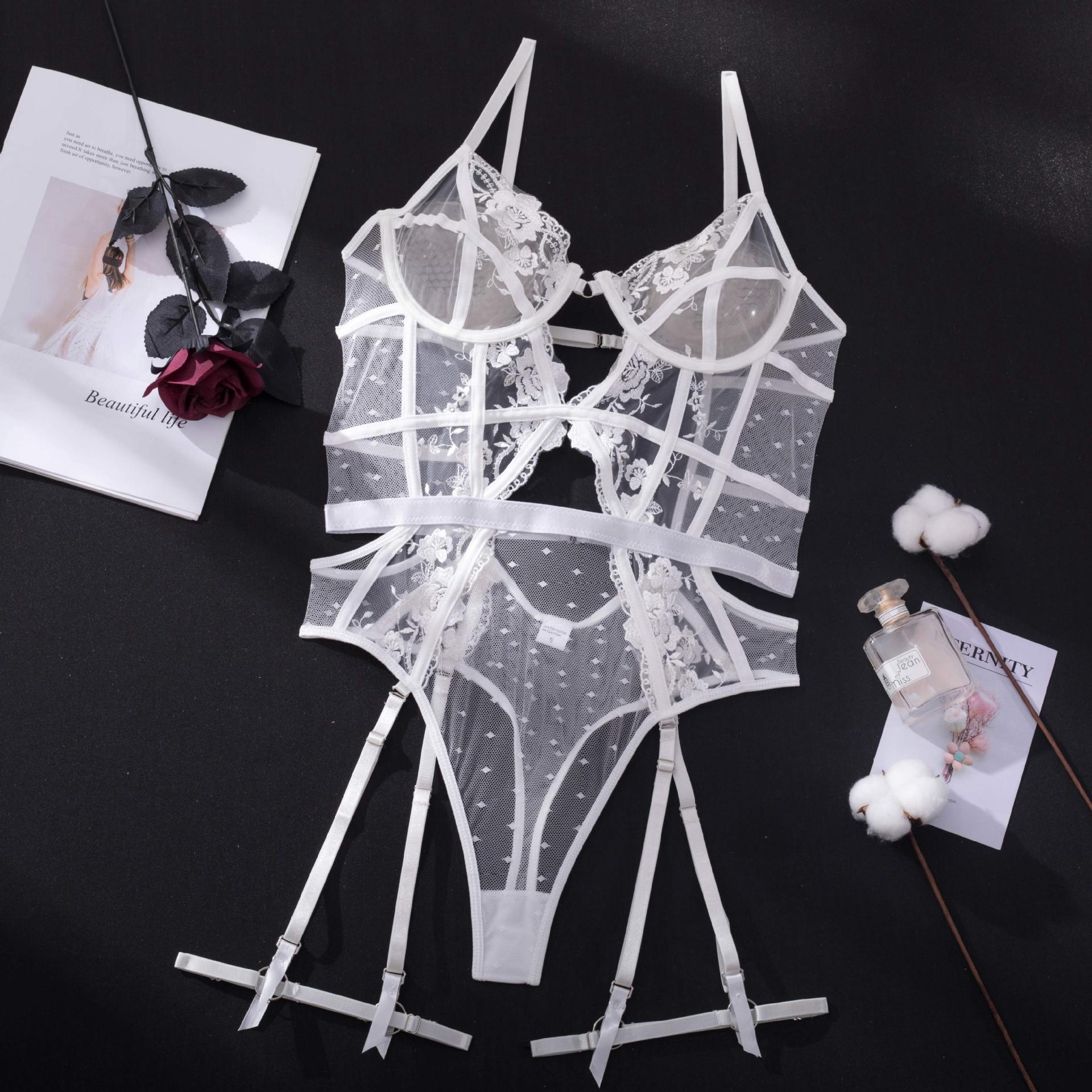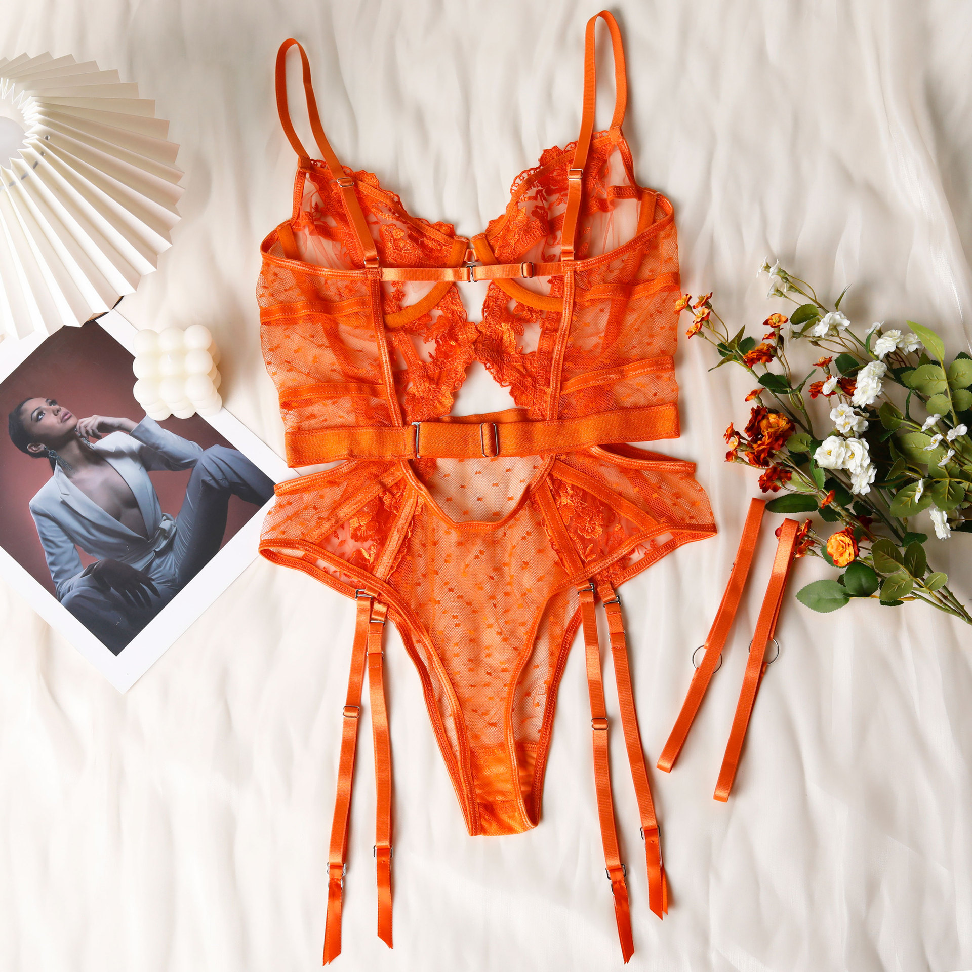 LSFA110GFR1025 春夏季新款內衣性感刺繡吊襪家里塑身連體衣女裝
