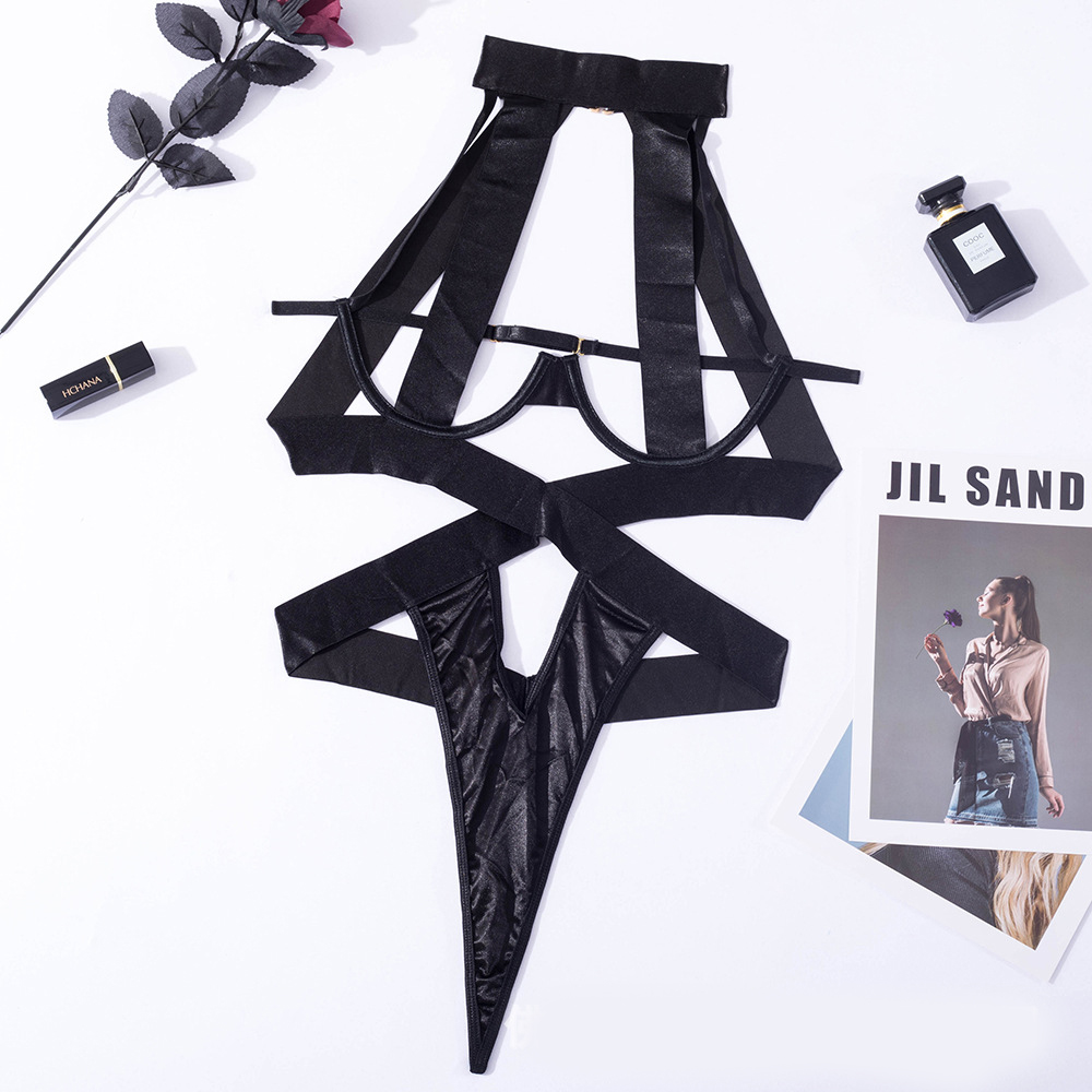 LSFA110GTR1026 綁帶掛脖鏤空露背色誘惑性感情趣內衣聚攏托胸女士塑身連體衣