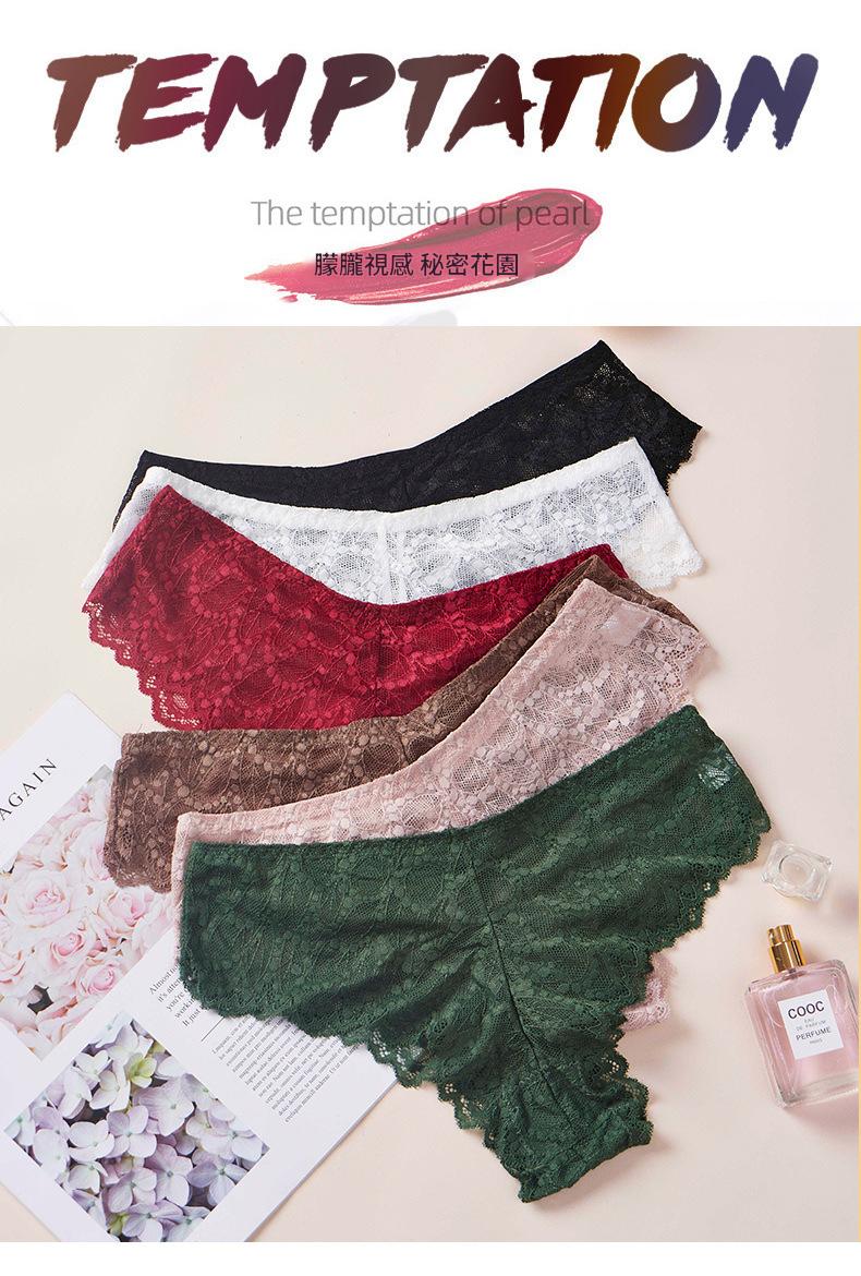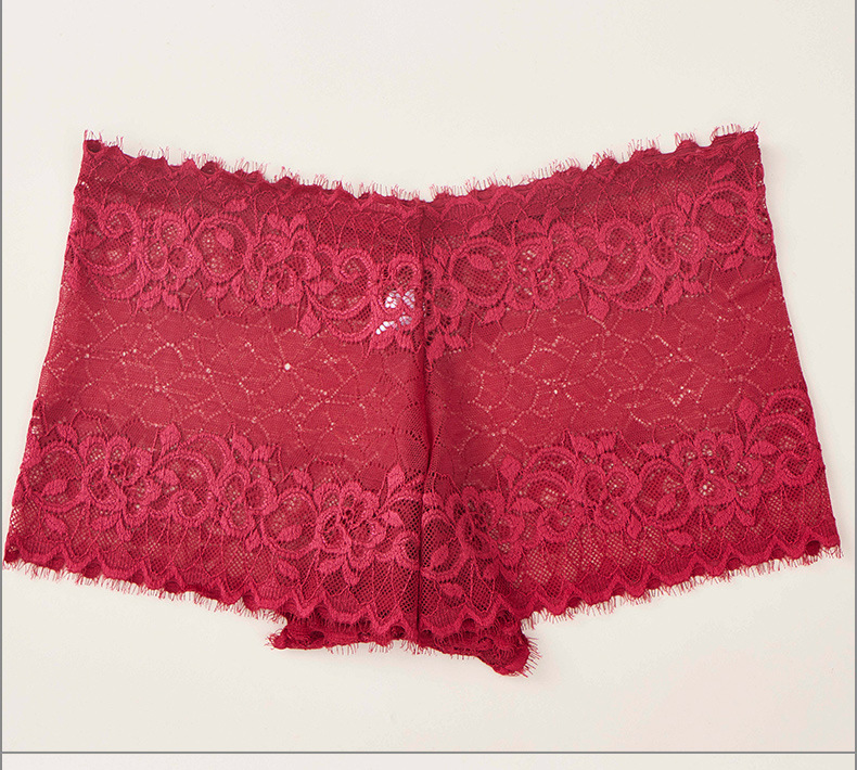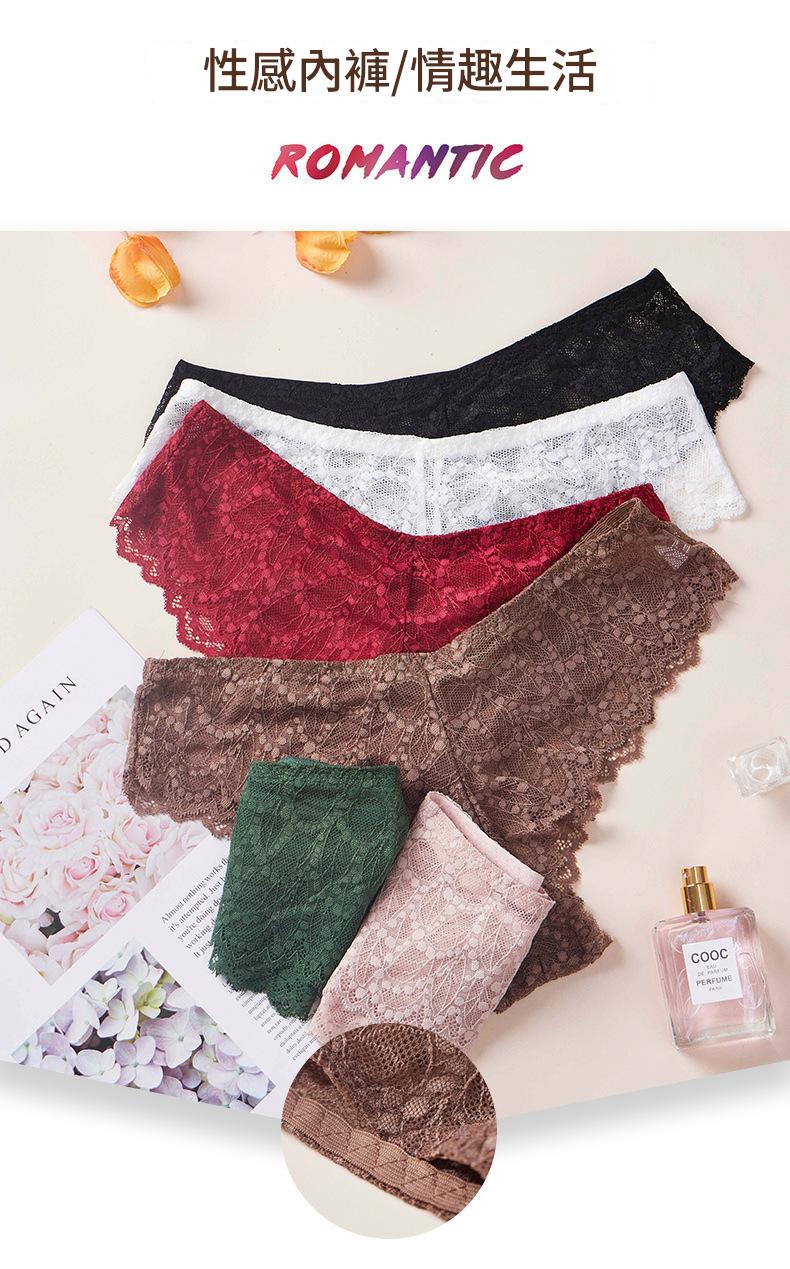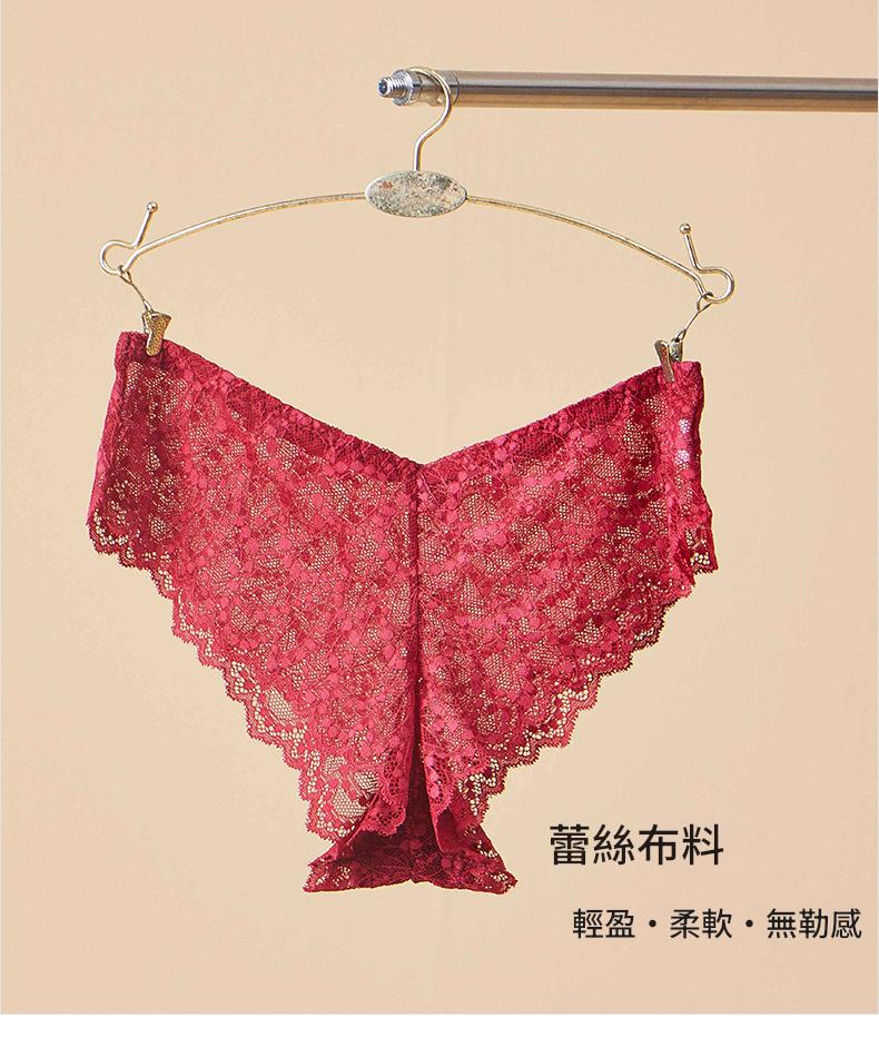 LCBN251225100205 歐美輕薄網紗透視誘惑火辣蕾絲鏤空內褲女士低腰棉檔平角褲款