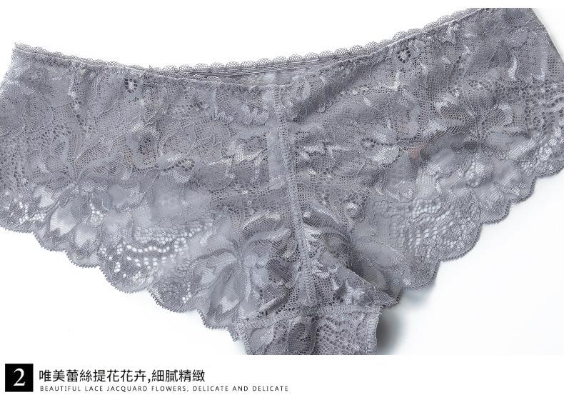 WLMZ113100024 性感情趣內褲法式薄款透視蕾絲內褲純棉底襠提臀低腰三角內褲
