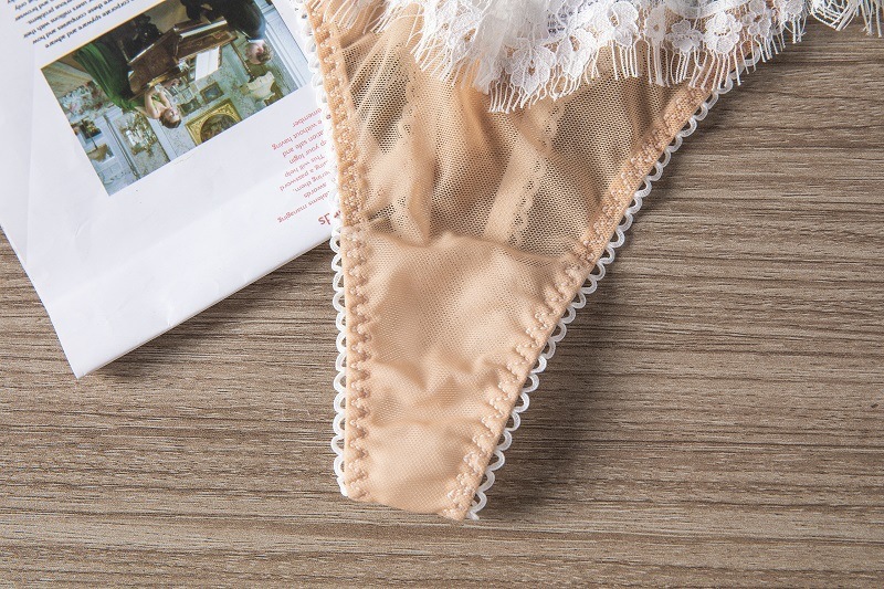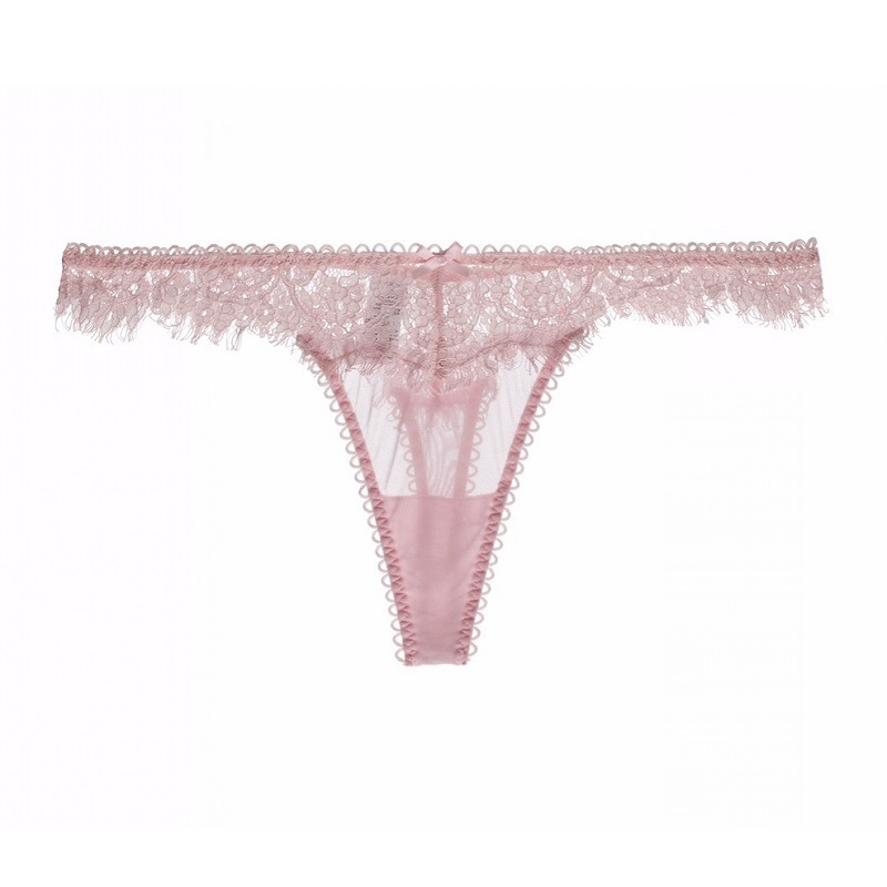 WLMZ113100144 法式鏤空睫毛蕾絲牛奶絲性感蕾絲丁字褲女無痕內褲