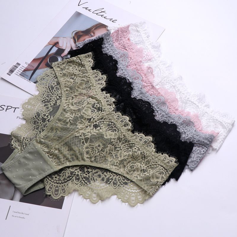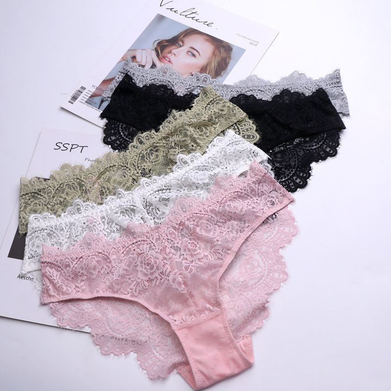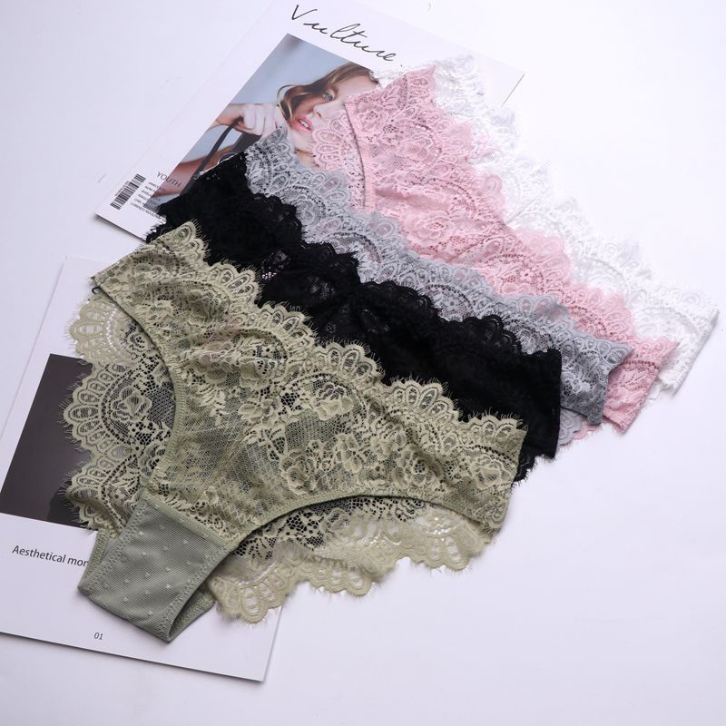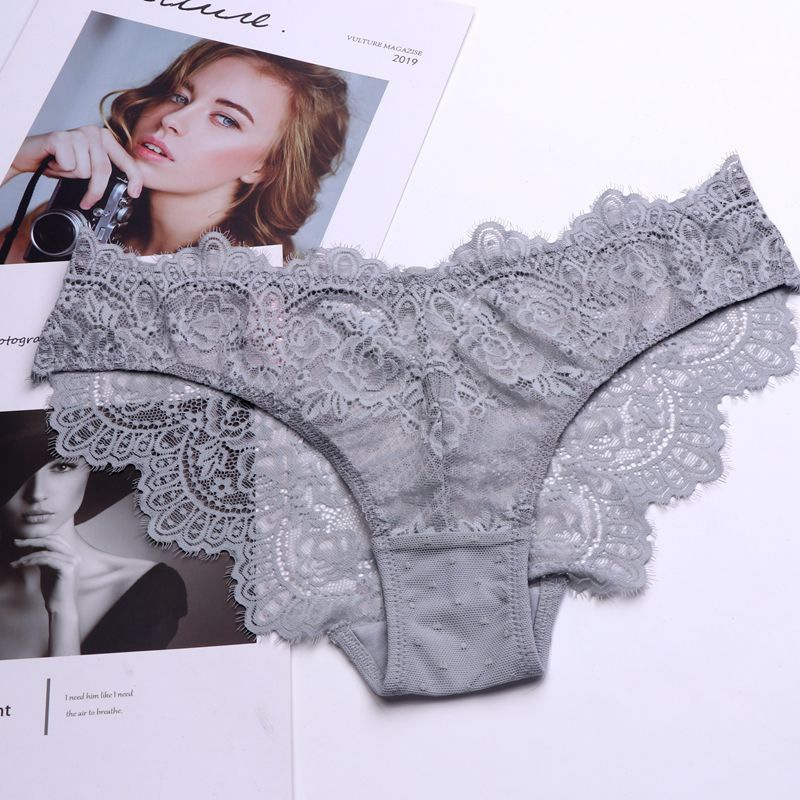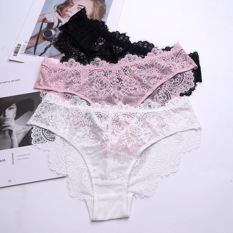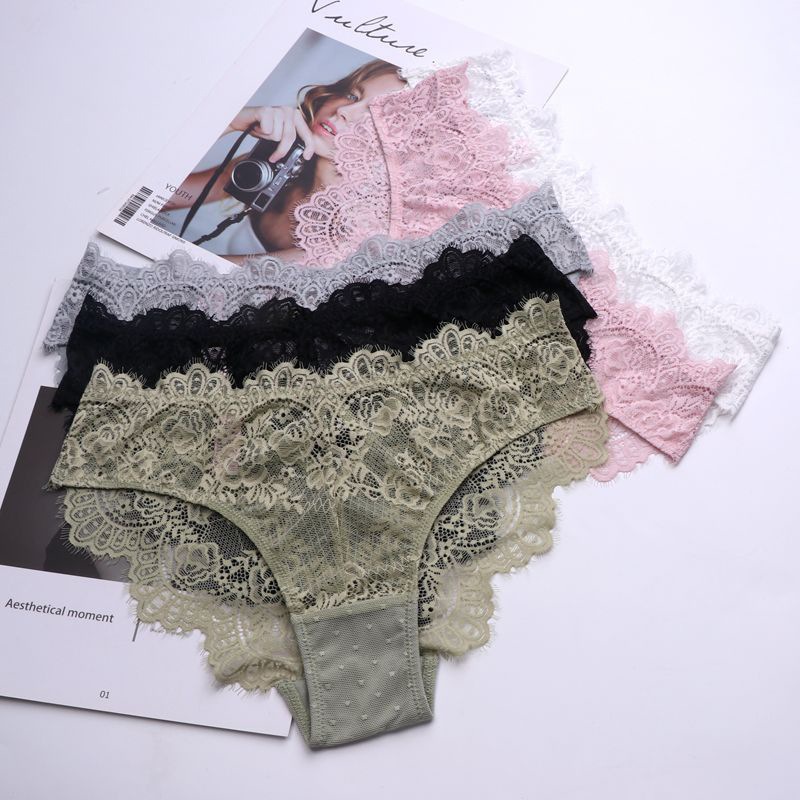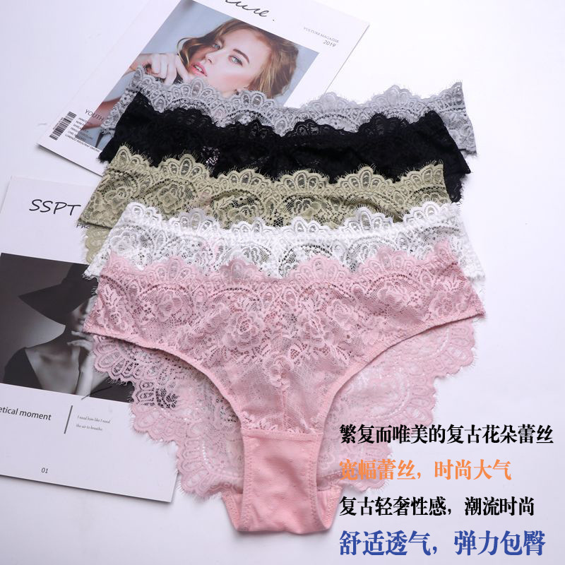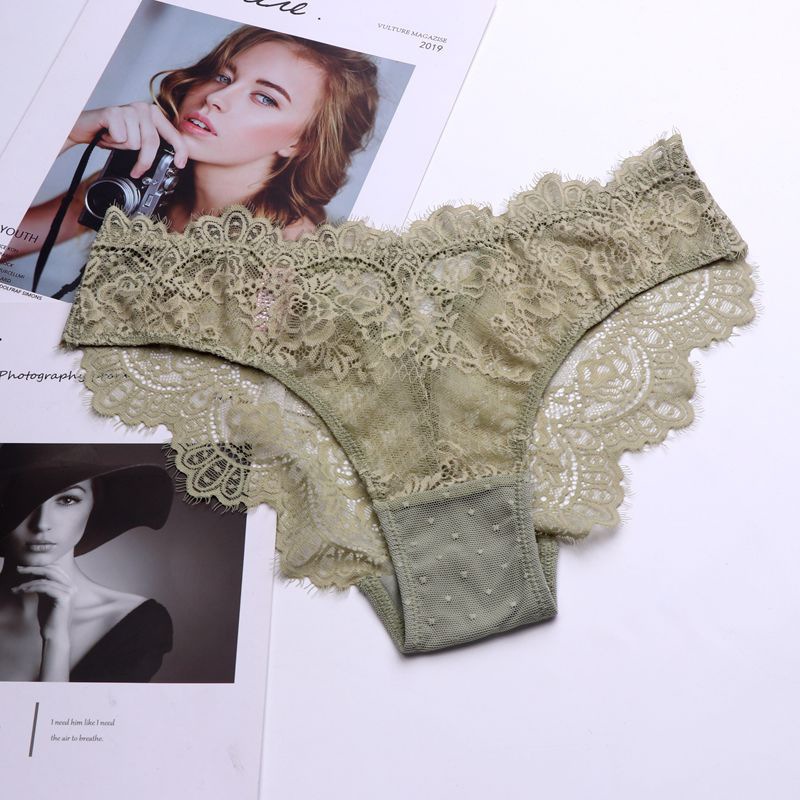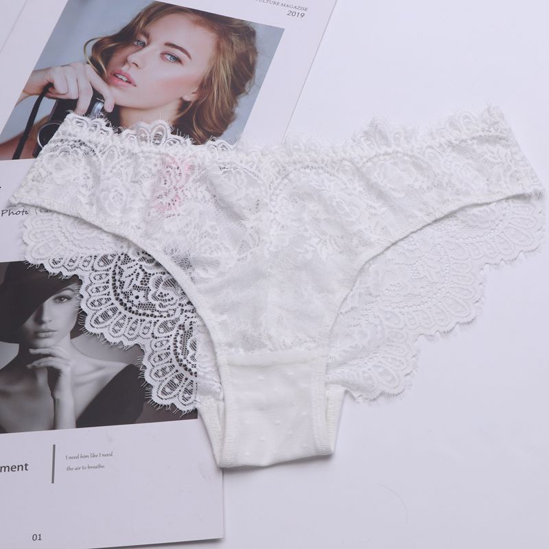 WLMZ113100218 性感誘惑低腰女士內褲鏤空透視純欲蕾絲內褲透氣大碼三角褲