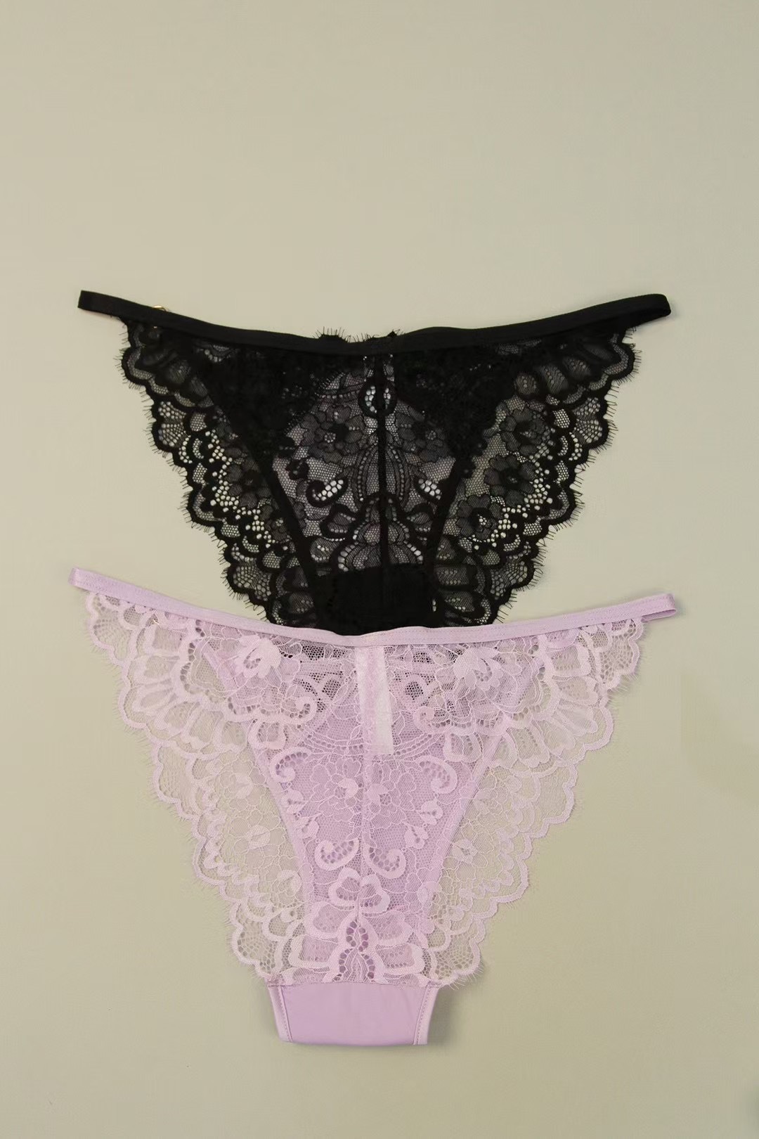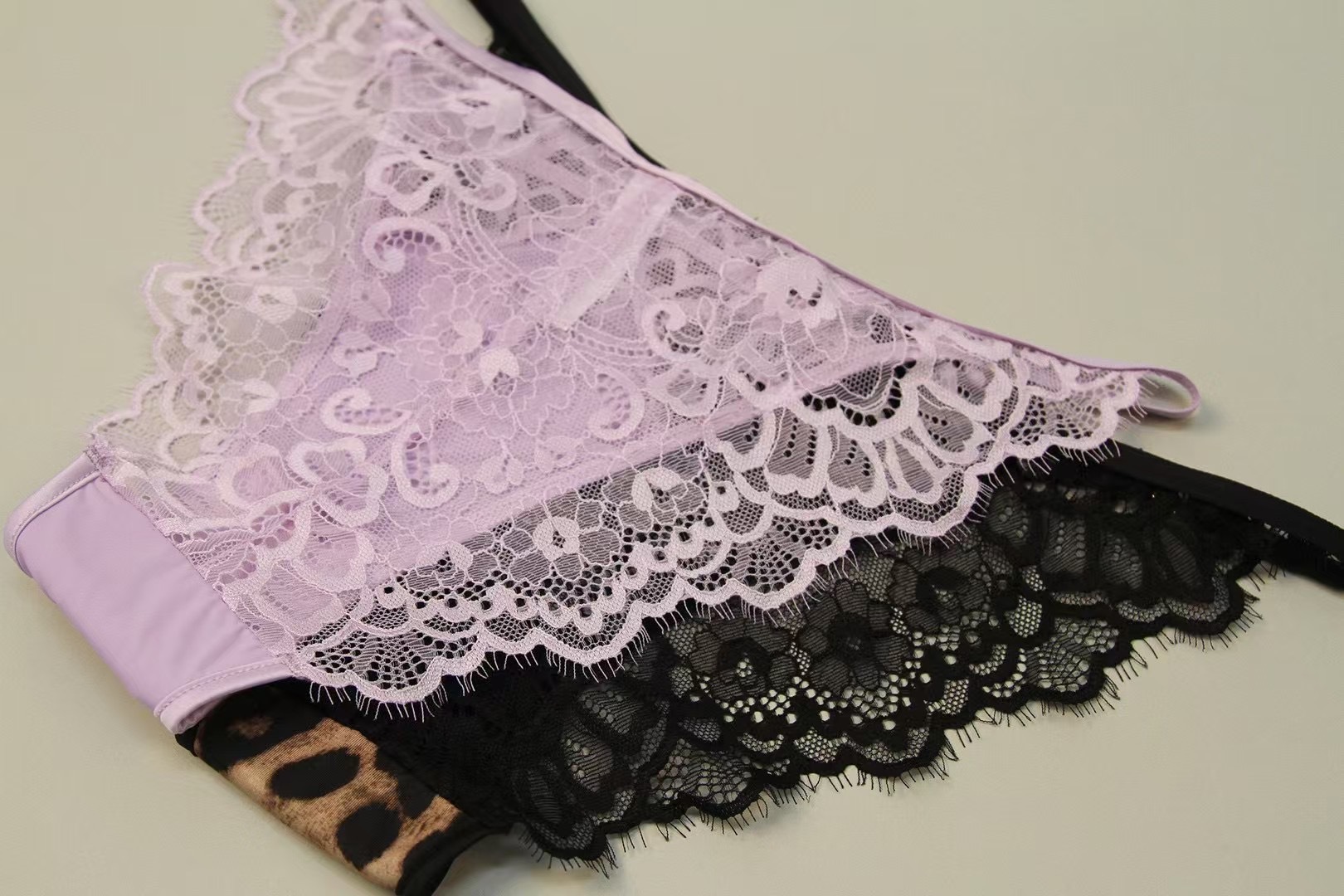WLMZ113100299 法式性感內褲超薄刺繡蕾絲大碼內褲純棉襠部提臀低腰三角內褲