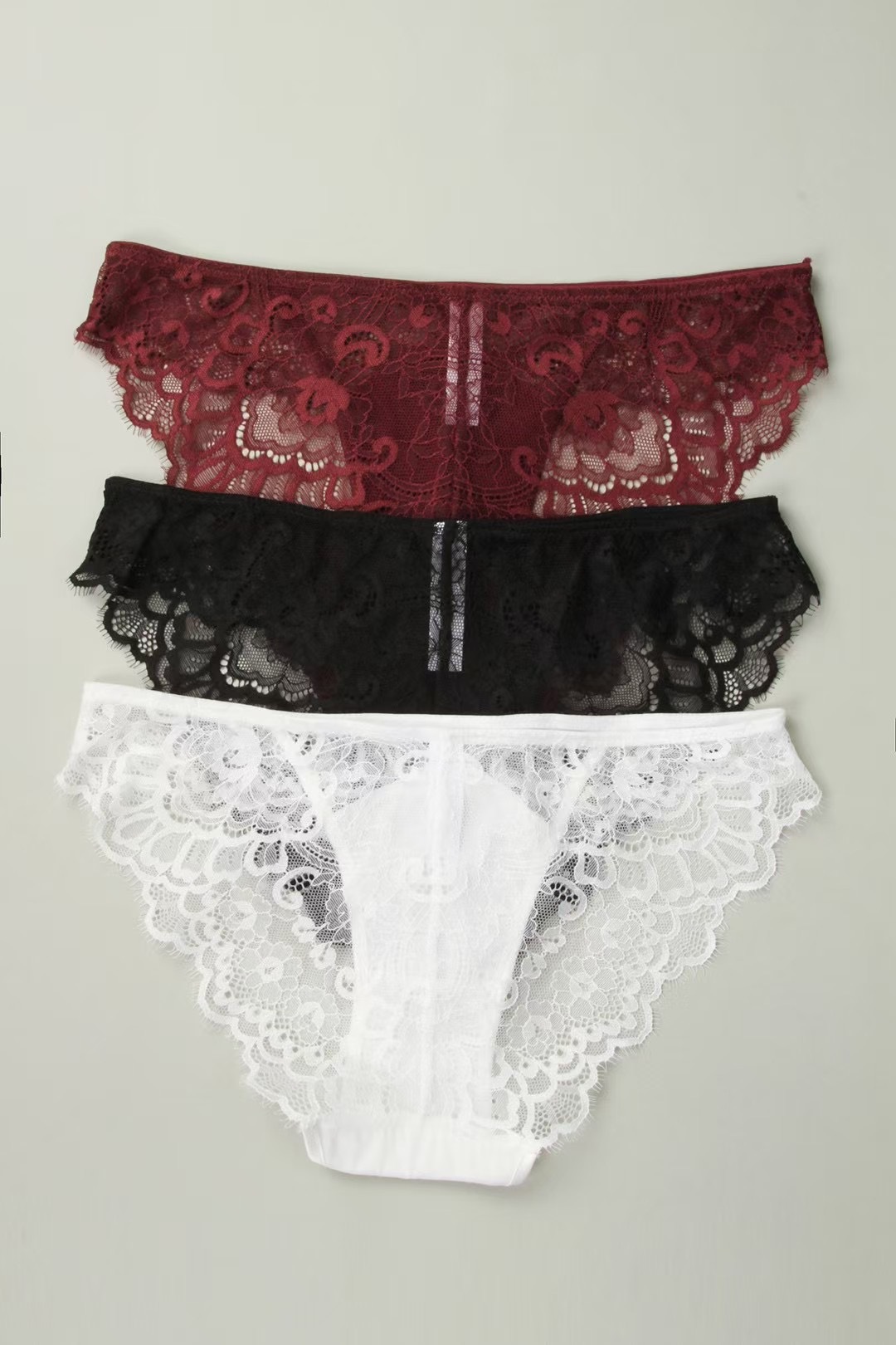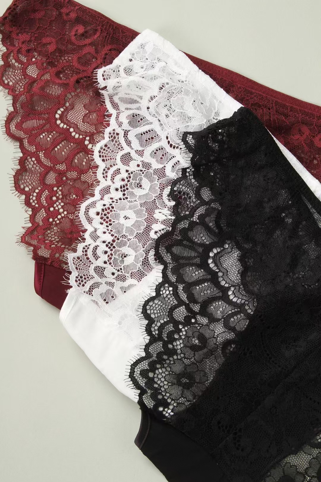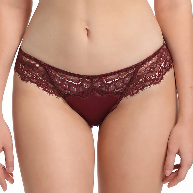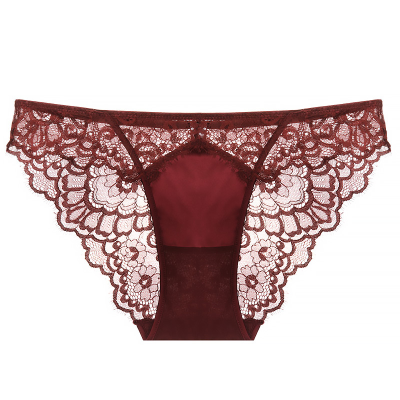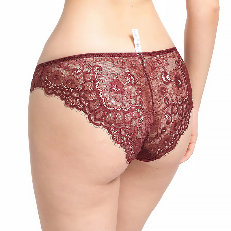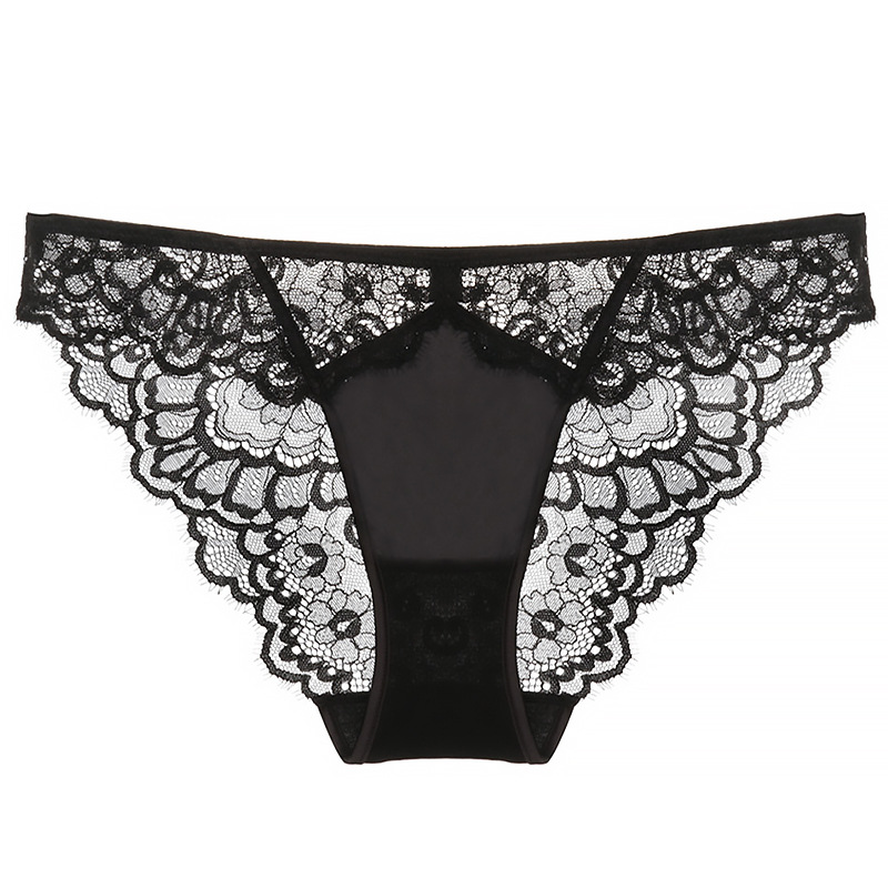 WLMZ113100331 法式性感內褲超薄透視刺繡蕾絲內褲純棉底襠大碼低腰三角內褲