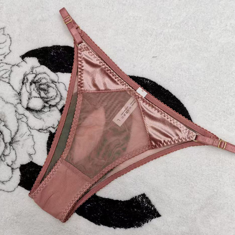 WLMZ113100361 性感情趣內褲薄款絲絨接拼網紗內褲T褲純棉襠部低腰三角褲