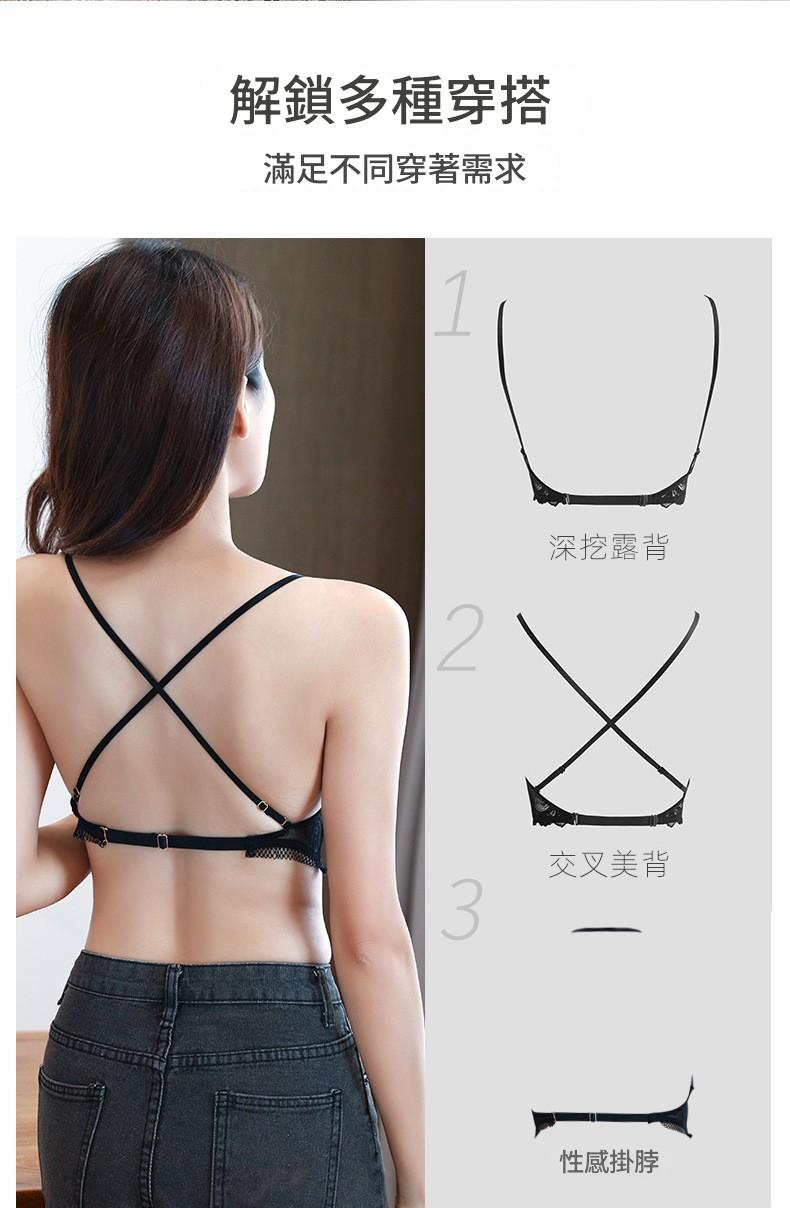 WLMZ113100160 法式性感蕾絲內衣夏季薄款U型大露背美背內衣三角杯無鋼圈文胸罩
