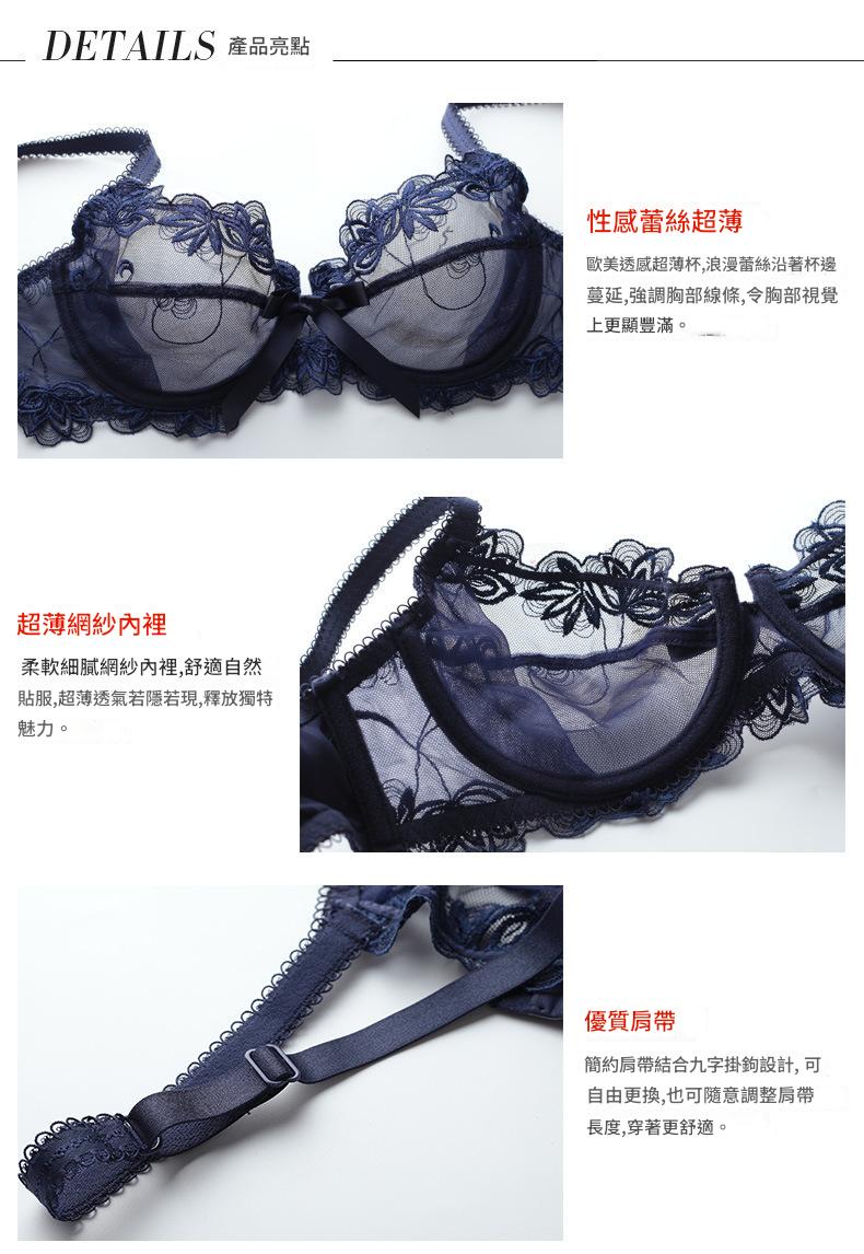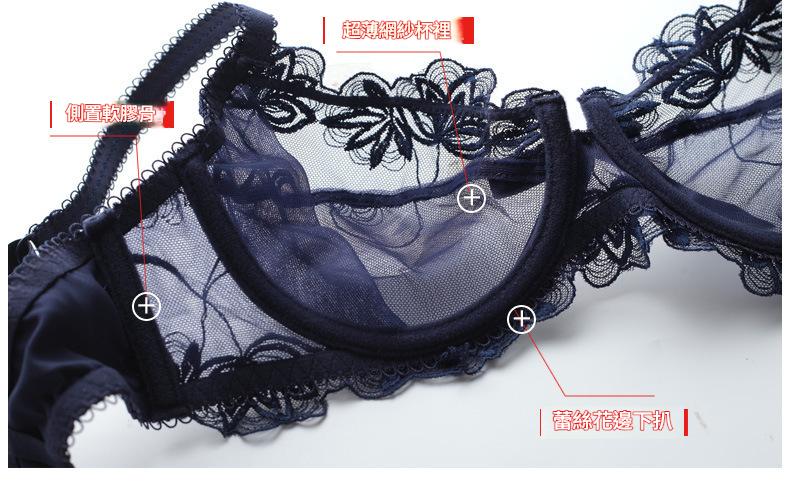 WLMZ113100179 性感內衣女法式超薄透明蕾絲情趣內衣大胸顯小大碼文胸罩