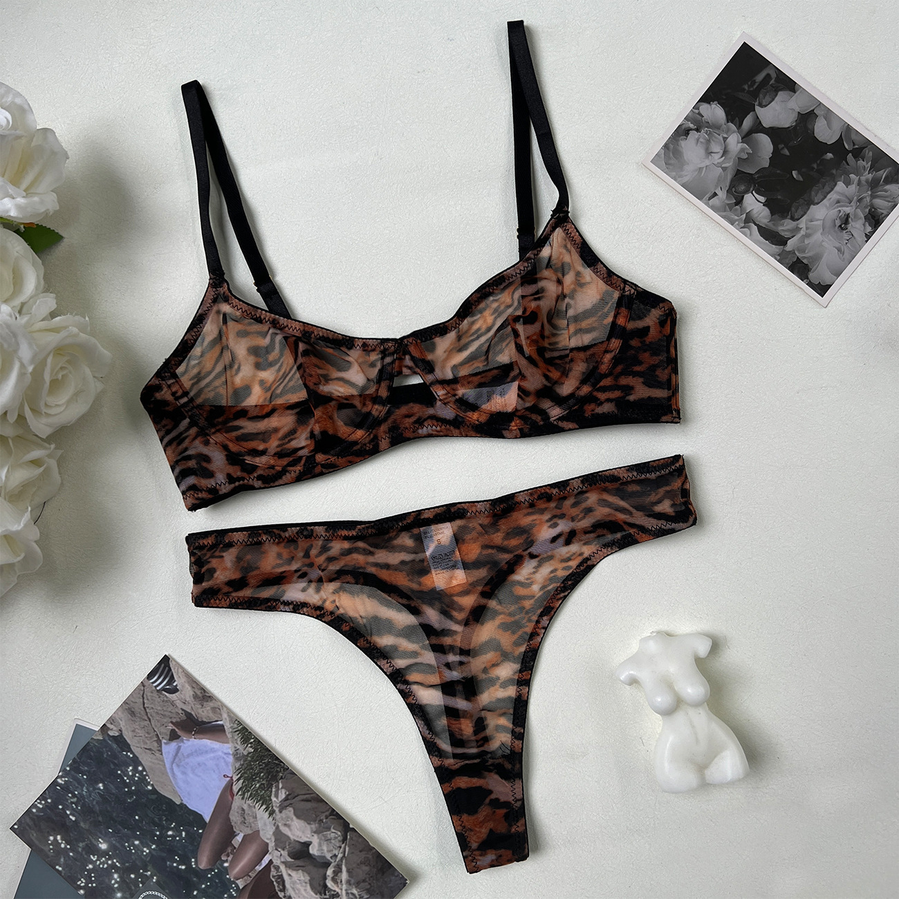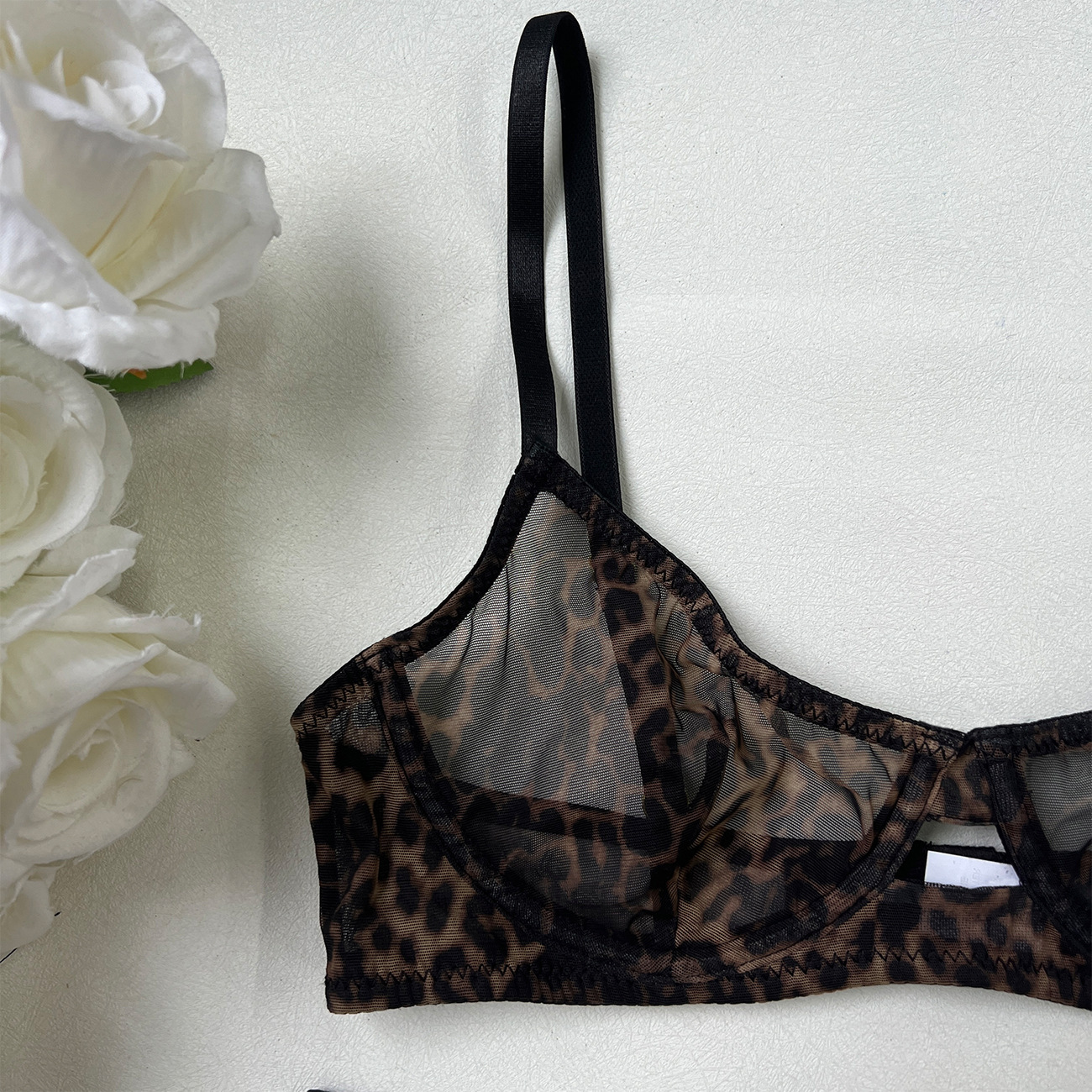 WLMZ113100197 性感情趣內衣法式超薄透視豹紋網紗內衣大胸顯小大碼文胸套裝