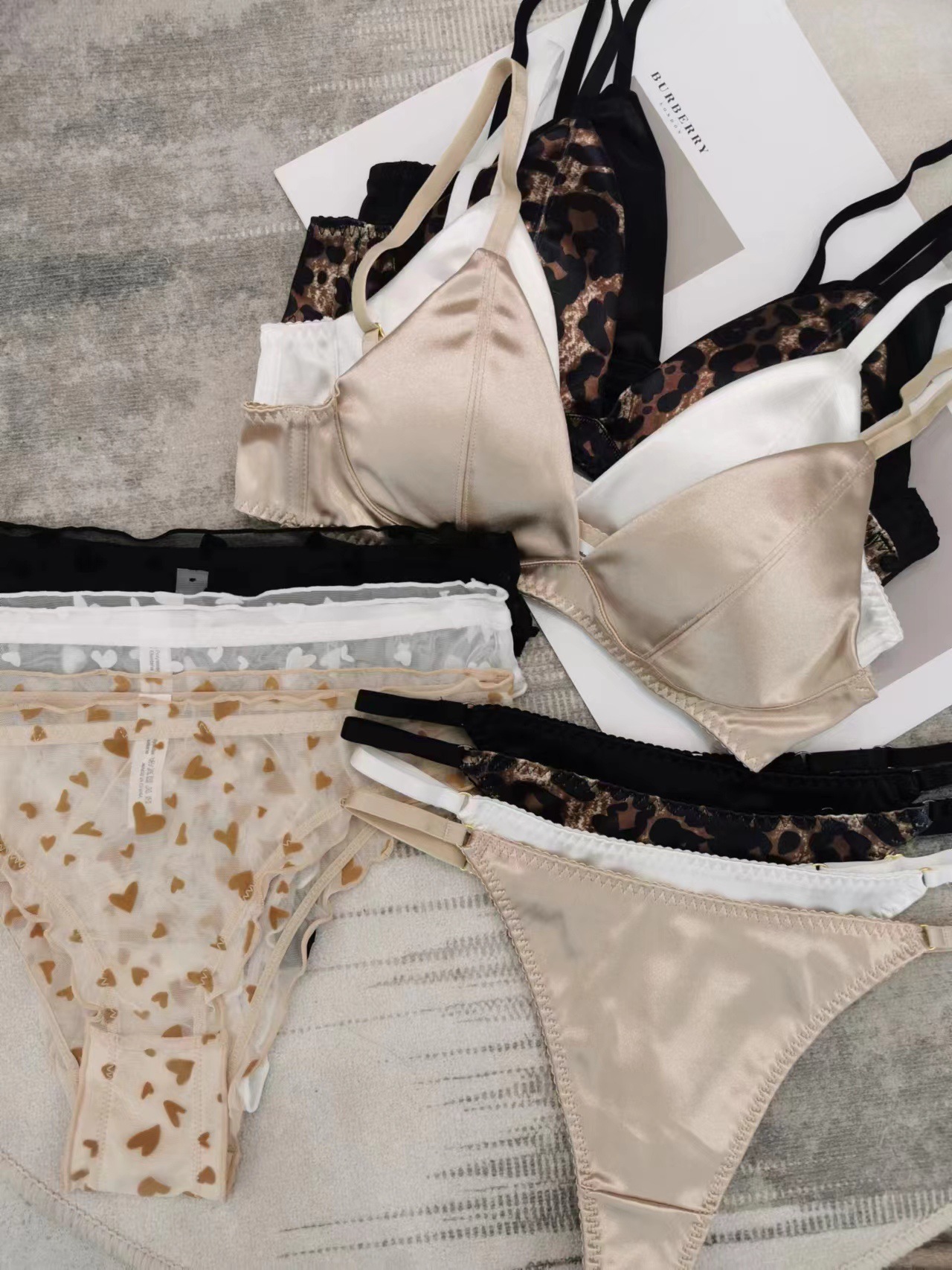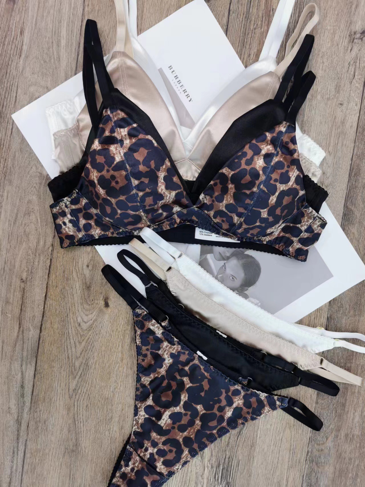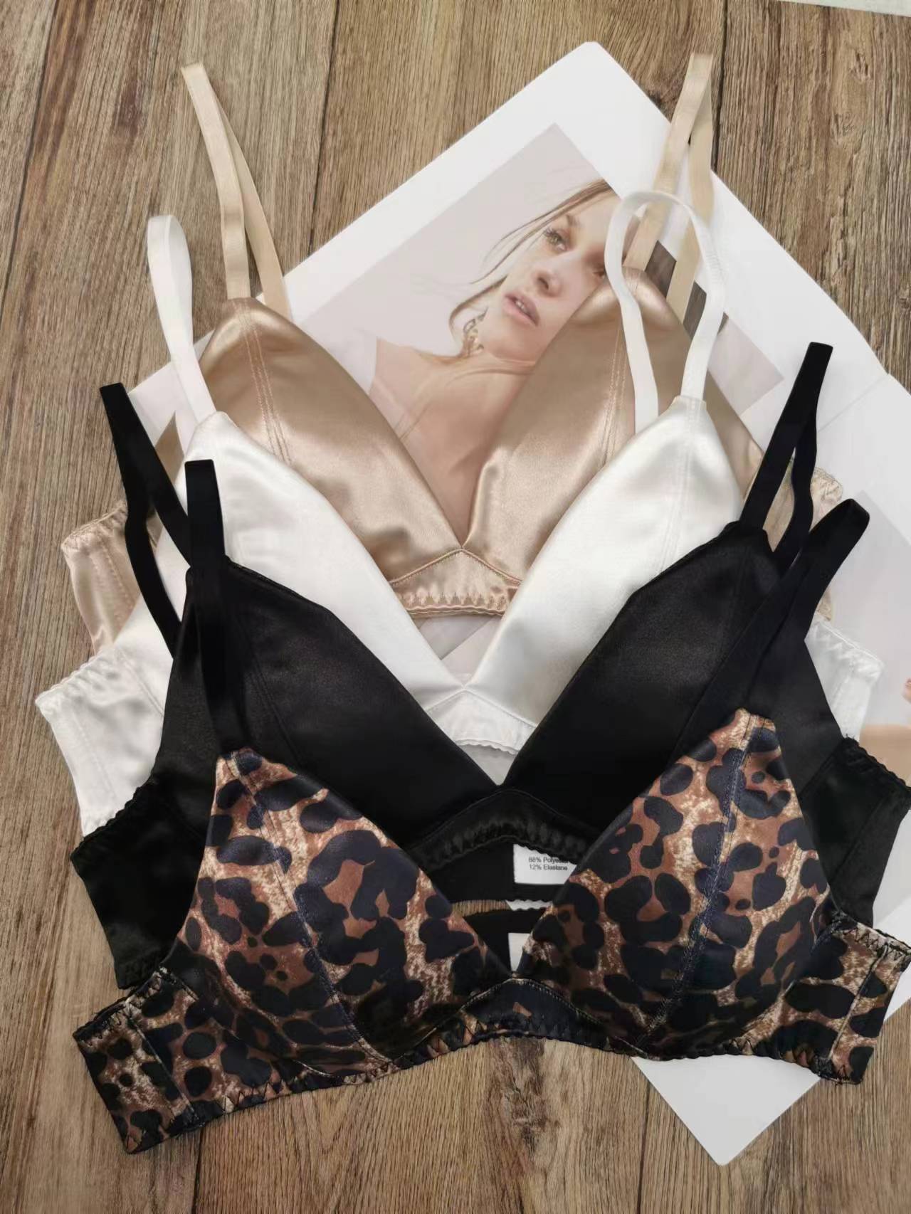 WLMZ113100203 法式性感內衣薄款無痕緞面三角杯無鋼圈文胸套裝大胸顯小大碼內衣