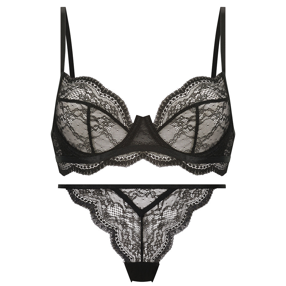 WLMZ113100204 性感法式內衣超薄透視蕾絲文胸大胸顯小防下垂情趣內衣丁字褲