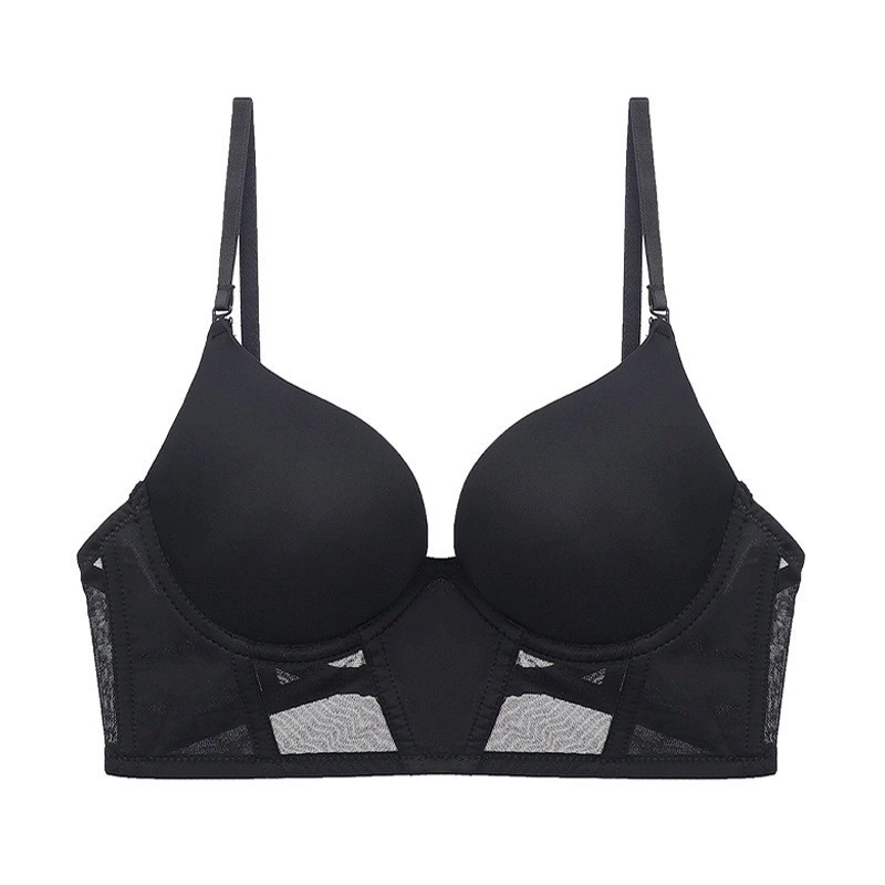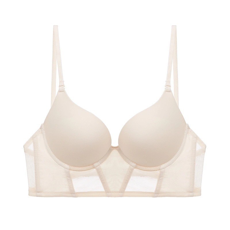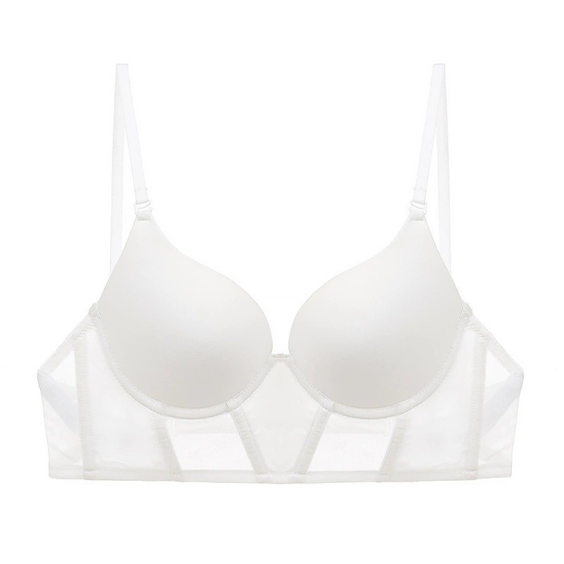 WLMZ113100220 法式U型光面無痕少女內衣性感隱形美背掛脖文胸小胸顯大聚攏文胸