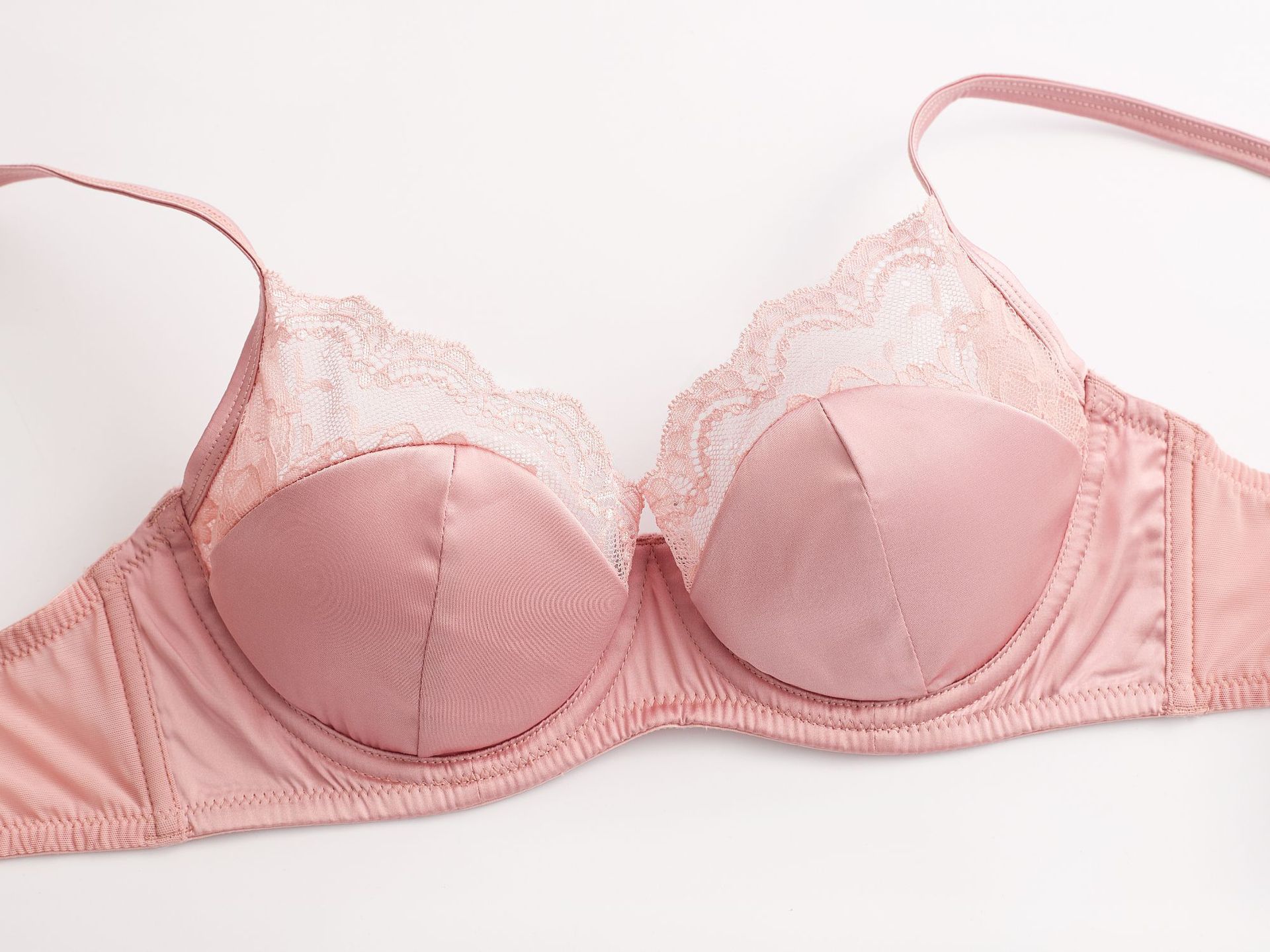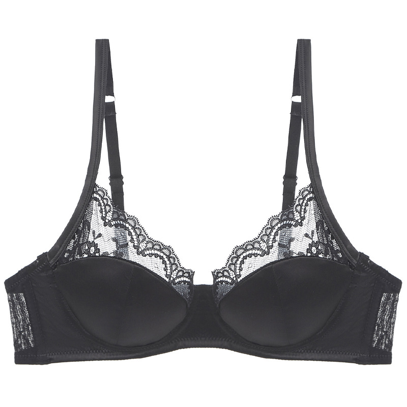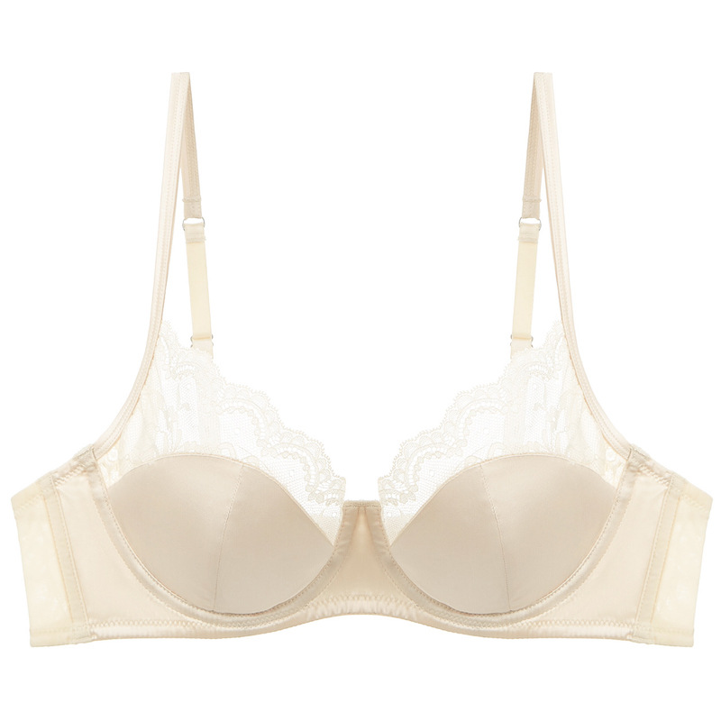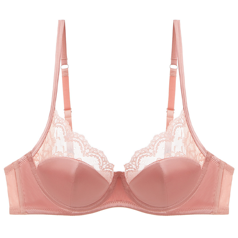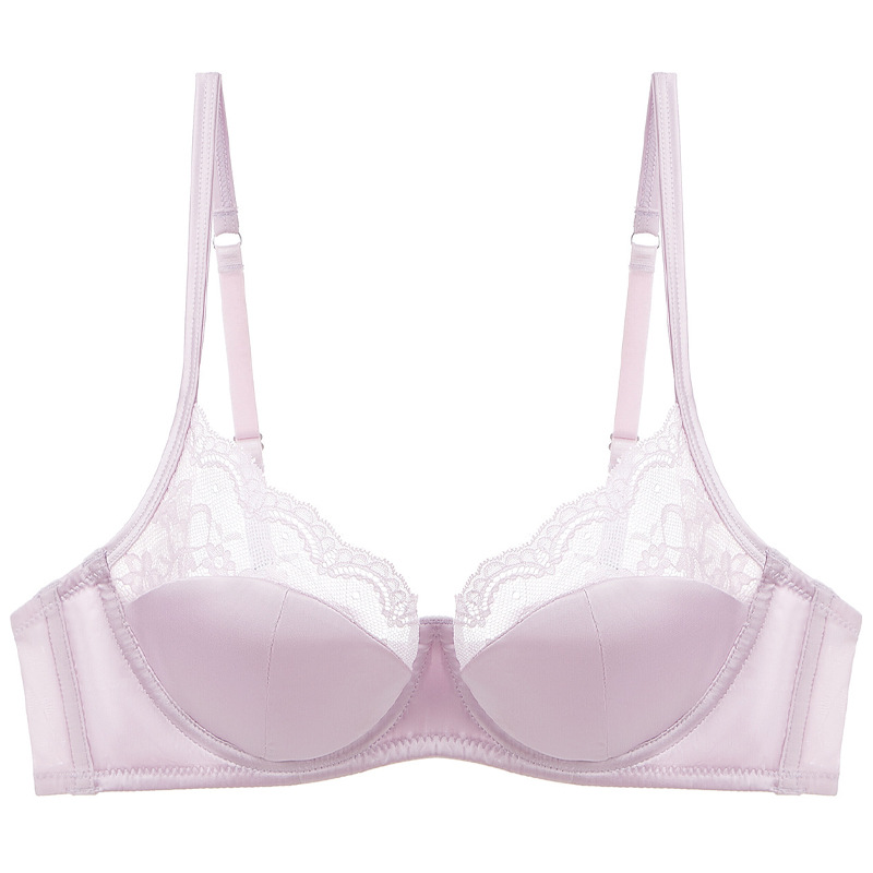 WLMZ113100346 性感內衣女法式薄款色丁拼接蕾絲文胸大胸顯小防下垂聚攏內衣
