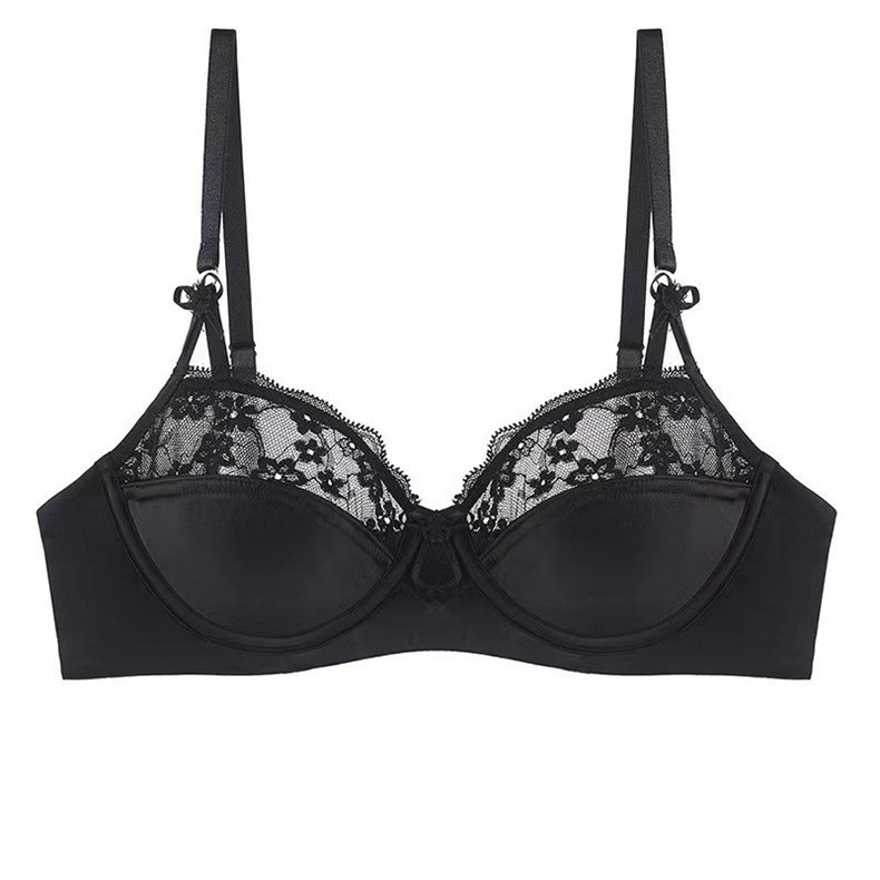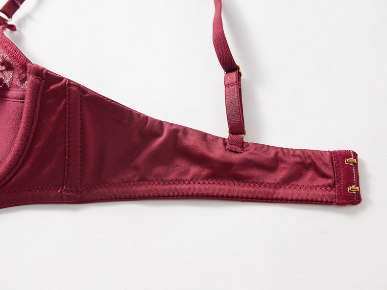 WLMZ113100393 法式性感薄款大胸顯小防下垂聚攏文胸本命年酒紅色蕾絲女士內衣